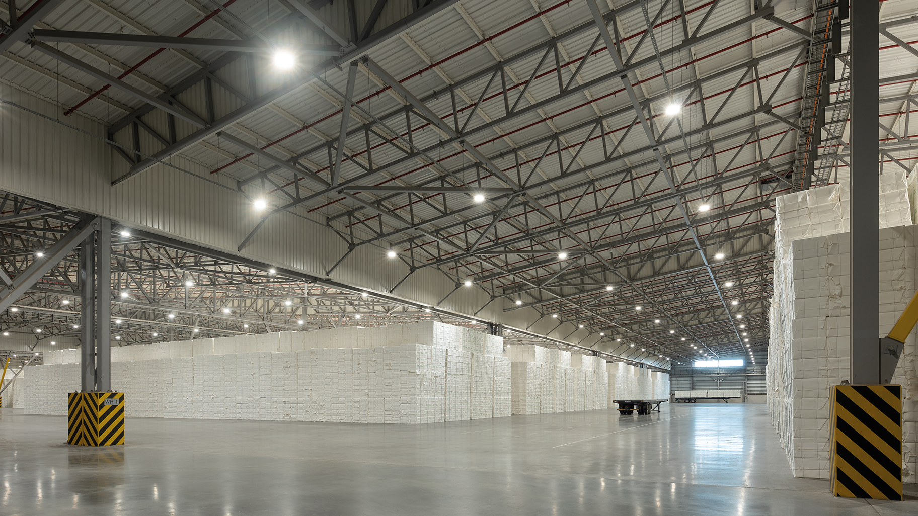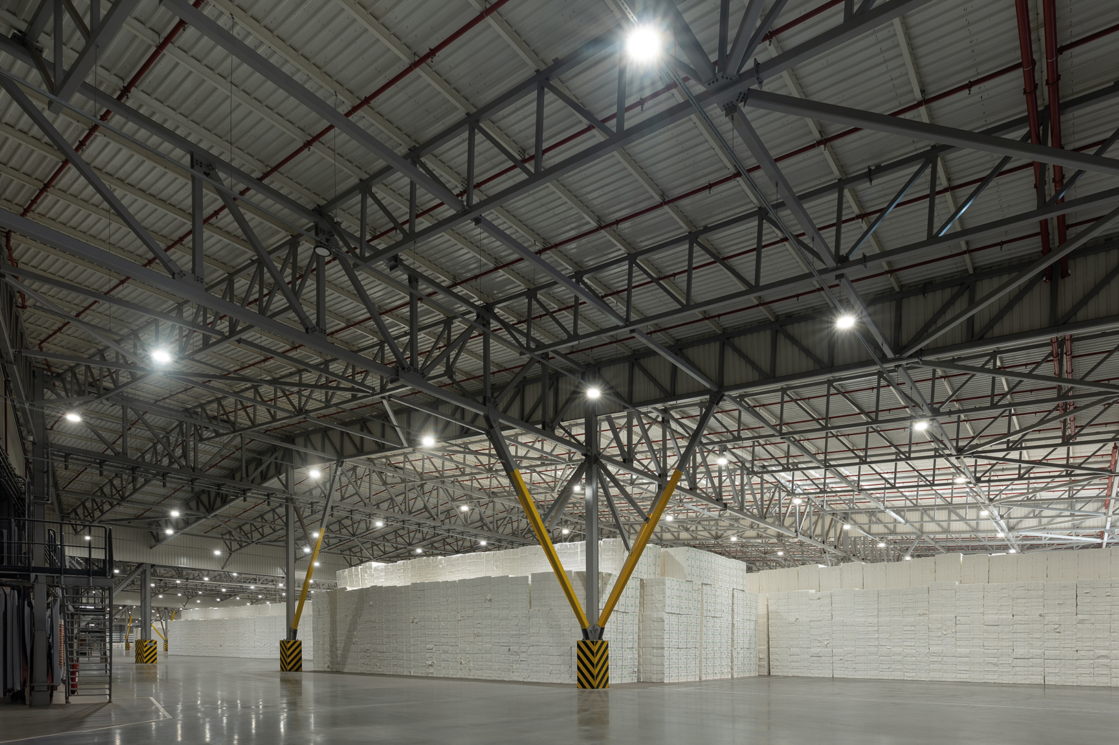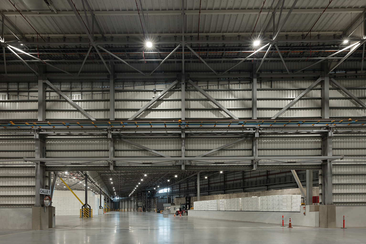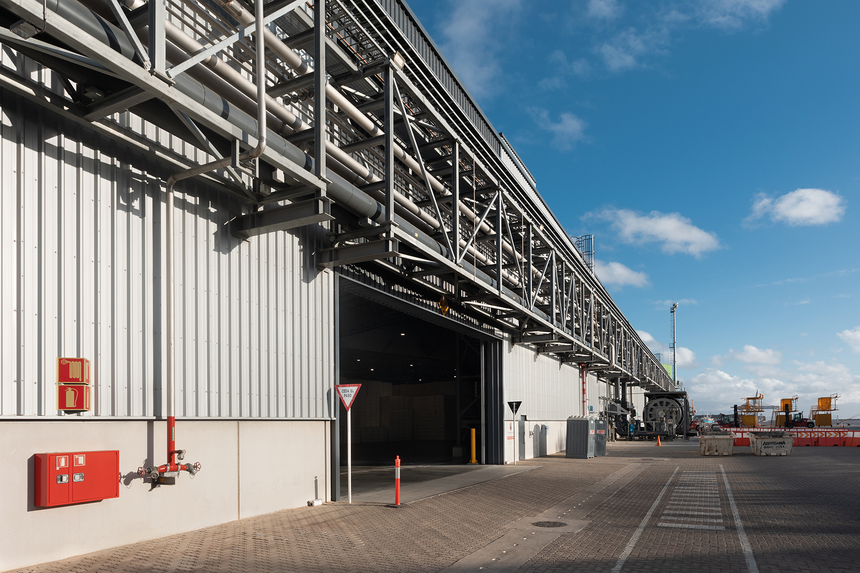 Entre sus componentes se destacan el depósito principal de celulosa, con una superficie cubierta de 55.000 m², una estructura metálica limpia y clara, y una espacialidad potente. También el edificio de oficinas y servicios, que reúne áreas administrativas, cuarto de control, vestuarios y zonas de descanso para el personal.