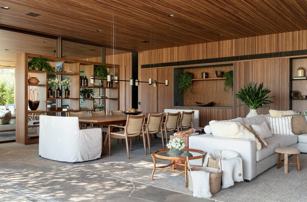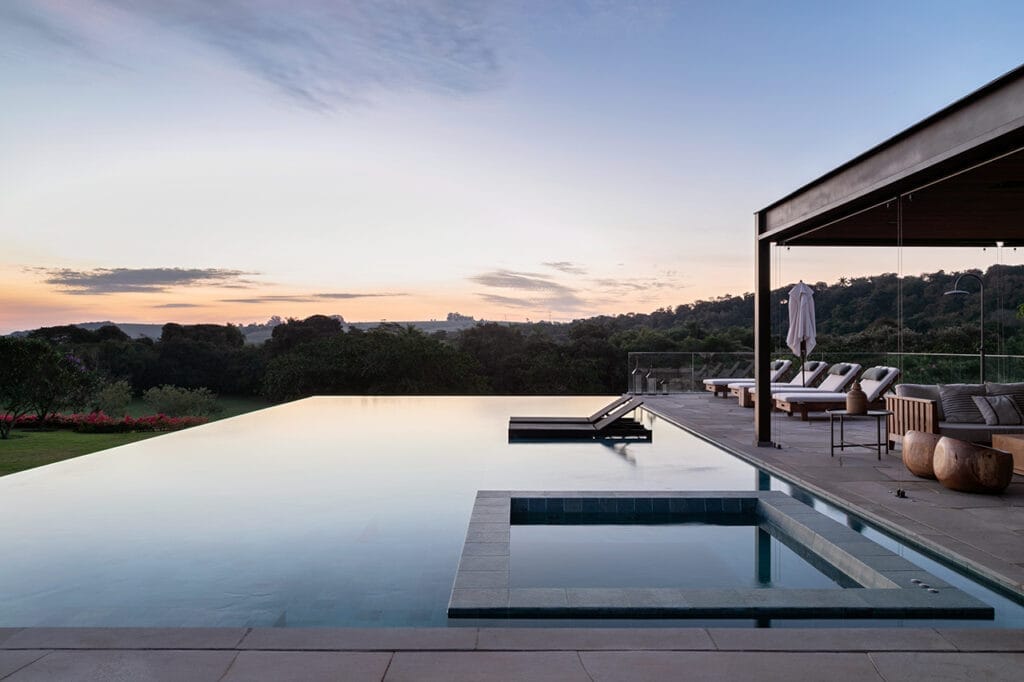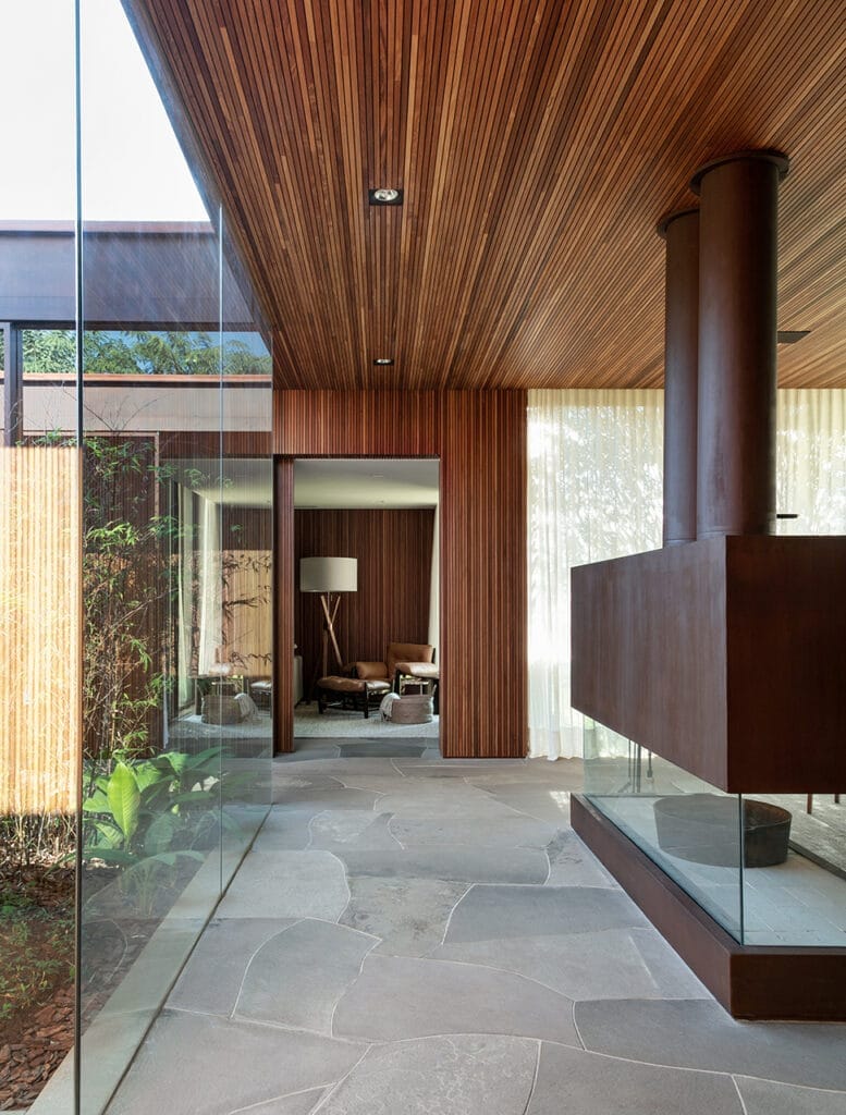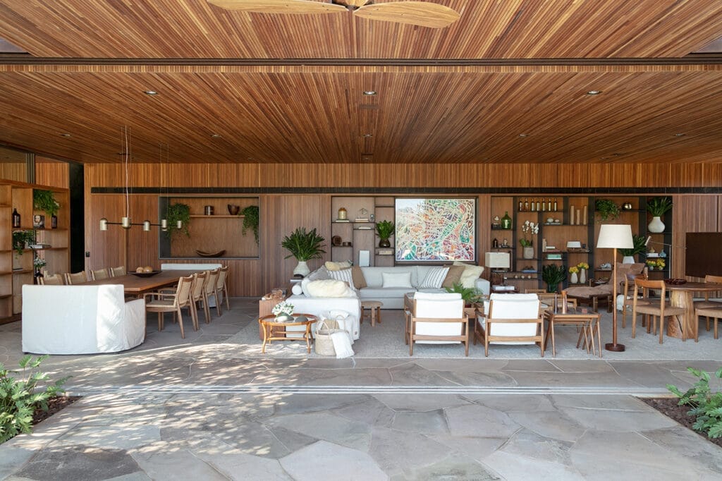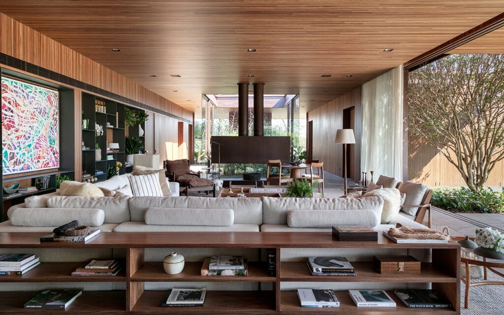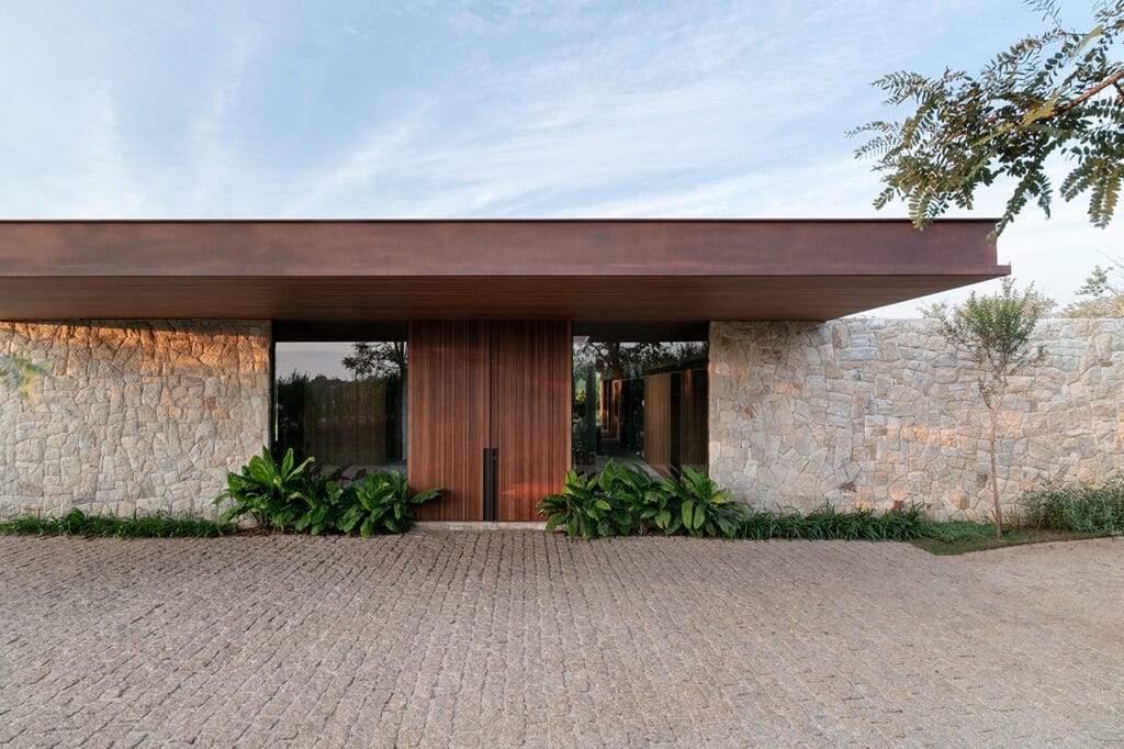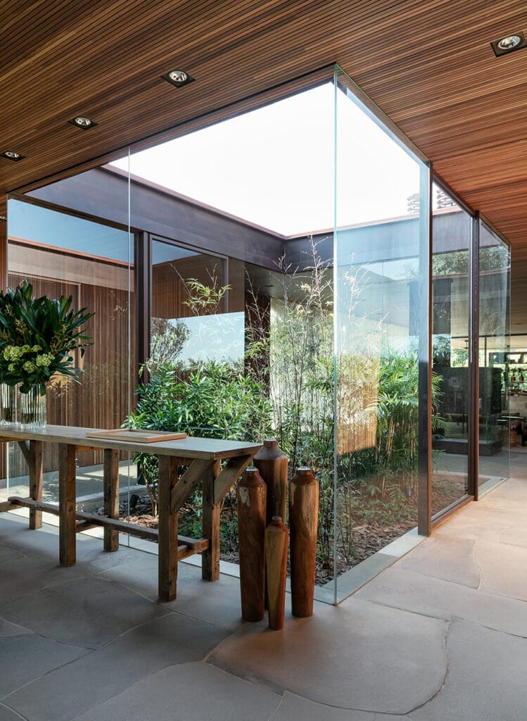 Esta casa está ubicada en Fazenda Boa Vista, un barrio de San Pablo conocido por su paisaje animado por obras que exhiben la arquitectura de autor y un diseño sofisticado en la urbanización. Muchas de las casas en este barrio son consideradas como algunas de las propiedades más exclusivas y codiciadas de Brasil. Implantada en un terreno de generosas proporciones, la casa debe su nombre al árbol de Jubuticaba que se encuentra en el centro del terreno. Aprovechando la ubicación del árbol, el proyecto de la casa se generó a partir de su exacta ubicación, generando así un patio central interno que sirve como eje de comunicación dentro de la casa. Este jardín hace que todos aquellos que recorran los ambientes de la casa se guíen por el árbol de Jubuticaba. La casa se desarrolla en una sola planta en forma de “L”, donde los ambientes de uso social son cómodos y espaciosos, diseñados para uso a todas las horas.