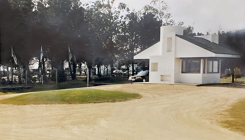…la compra de la tierra fue un momento muy importante, el lugar debía ser especial. Montevideo estaba vedado, debía ser en Canelones, en un lugar cercano, y a su vez, para que fuera apto para construir un campo de golf, las tierras debían tener determinadas características, elevación, movimiento. Apareció un americano que decía que la naturaleza le había dado 100 millones de dólares en movimientos de tierra al lugar y así fue, tenía algo especial. La Tahona es el nombre del campo original, que tiene más de 100 años. Las tahonas son molinos para hacer harina, que funcionan por la fuerza de caballos. Ahí empezó la historia, se armó el proyecto, se juntó un grupo inversor, Samuel Flores Flores aportó un grupo de argentinos, Luis García Belmonte y su familia, que participaron en la inversión, el grupo original de uruguayos que es el mismo que continúa hoy en día sumó un grupo de españoles y ese fue el origen. Para ese entonces no había nada, era un camino de balastro con dos badenes, no tenía suficiente energía eléctrica, no había agua potable. El primer estudio de mercado dijo que no era viable, que los gastos de la cancha de golf iban a ser muy altos. Luego de consultar distintas opciones, el mérito fue del estudio Armas que le encontró la vuelta para que el proyecto fuera factible…