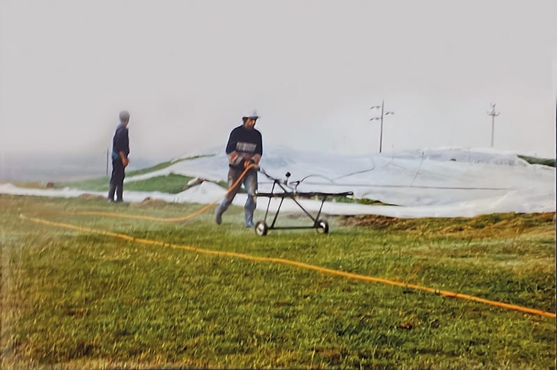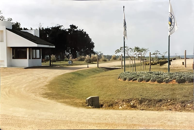 …la compra de la tierra fue un momento muy importante, el lugar debía ser especial. Montevideo estaba vedado, debía ser en Canelones, en un lugar cercano, y a su vez, para que fuera apto para construir un campo de golf, las tierras debían tener determinadas características, elevación, movimiento. Apareció un americano que decía que la naturaleza le había dado 100 millones de dólares en movimientos de tierra al lugar y así fue, tenía algo especial. La Tahona es el nombre del campo original, que tiene más de 100 años. Las tahonas son molinos para hacer harina, que funcionan por la fuerza de caballos. Ahí empezó la historia, se armó el proyecto, se juntó un grupo inversor, Samuel Flores Flores aportó un grupo de argentinos, Luis García Belmonte y su familia, que participaron en la inversión, el grupo original de uruguayos que es el mismo que continúa hoy en día sumó un grupo de españoles y ese fue el origen. Para ese entonces no había nada, era un camino de balastro con dos badenes, no tenía suficiente energía eléctrica, no había agua potable. El primer estudio de mercado dijo que no era viable, que los gastos de la cancha de golf iban a ser muy altos. Luego de consultar distintas opciones, el mérito fue del estudio Armas que le encontró la vuelta para que el proyecto fuera factible…