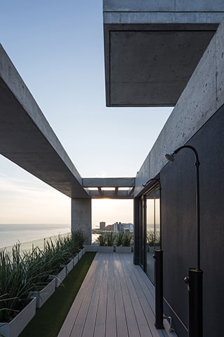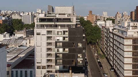 El edificio se desarrolla en vertical a lo largo de 11 niveles, donde se distribuyen 67 unidades de 1, 2 y 3 dormitorios en régimen de propiedad horizontal, con sus respectivas cocheras reglamentarias. La planta tipo del desarrollo vertical incluye un patio interior y orienta la mayoría de sus tipologías hacia el perímetro exterior, buscando el máximo contacto con el espacio público y priorizando en las unidades las vistas a la ciudad.