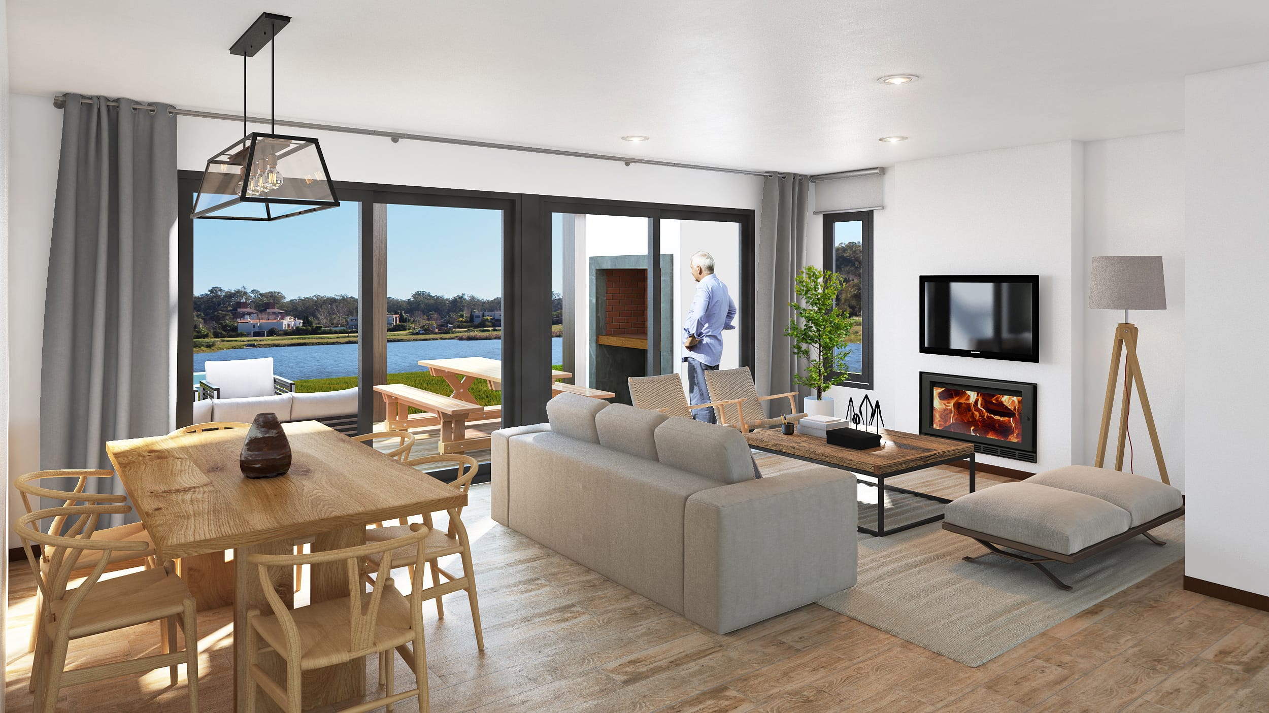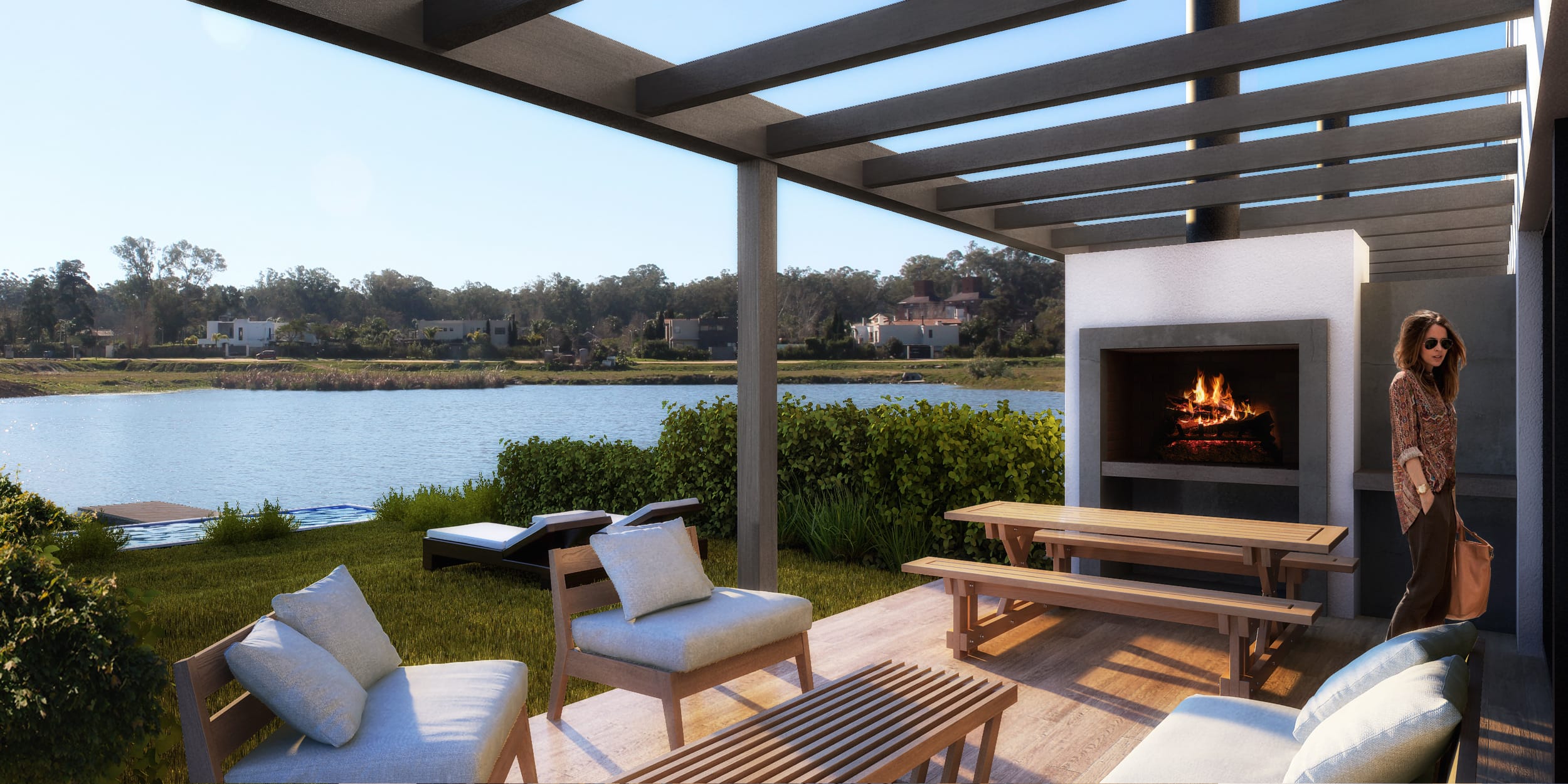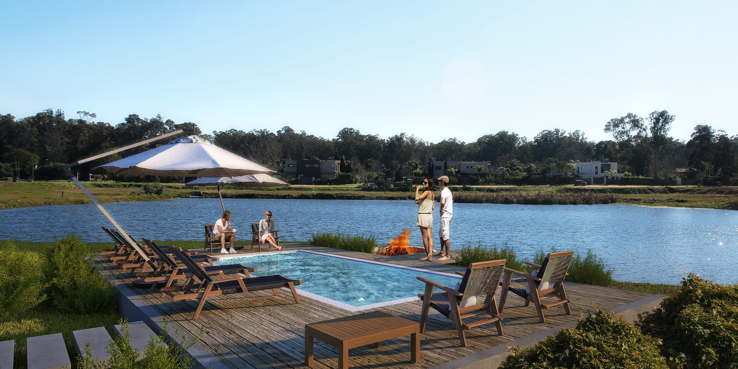 “A diferencia de lo que proyectamos para Las Casas, en este emprendimiento, que por la disposición del terreno y su ubicación es abierto, priorizamos la llegada hacia la laguna y la comunicación directa con la calle en la urbanización”, nos afirma Tomás Vecino, director de obra del estudio.