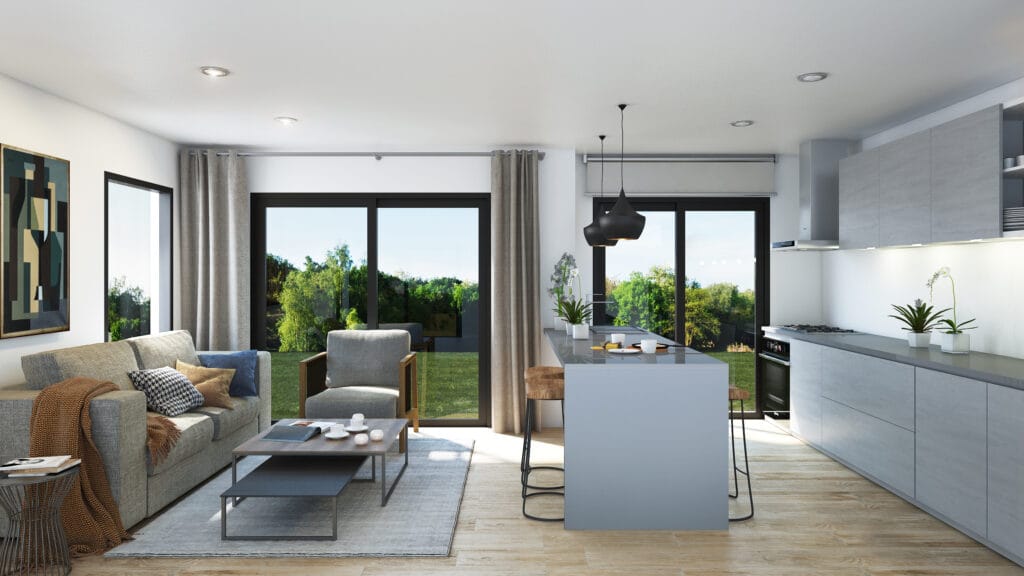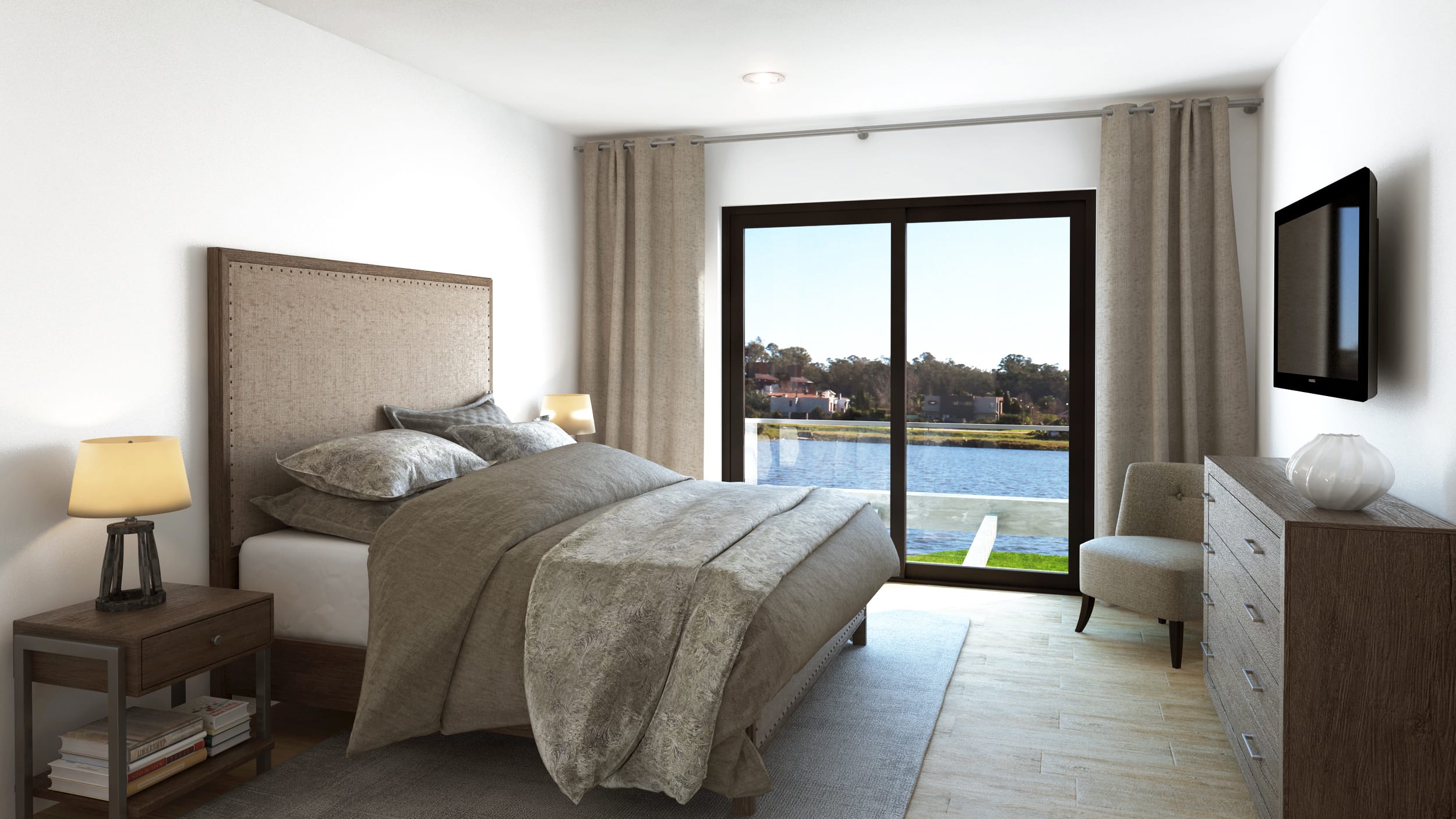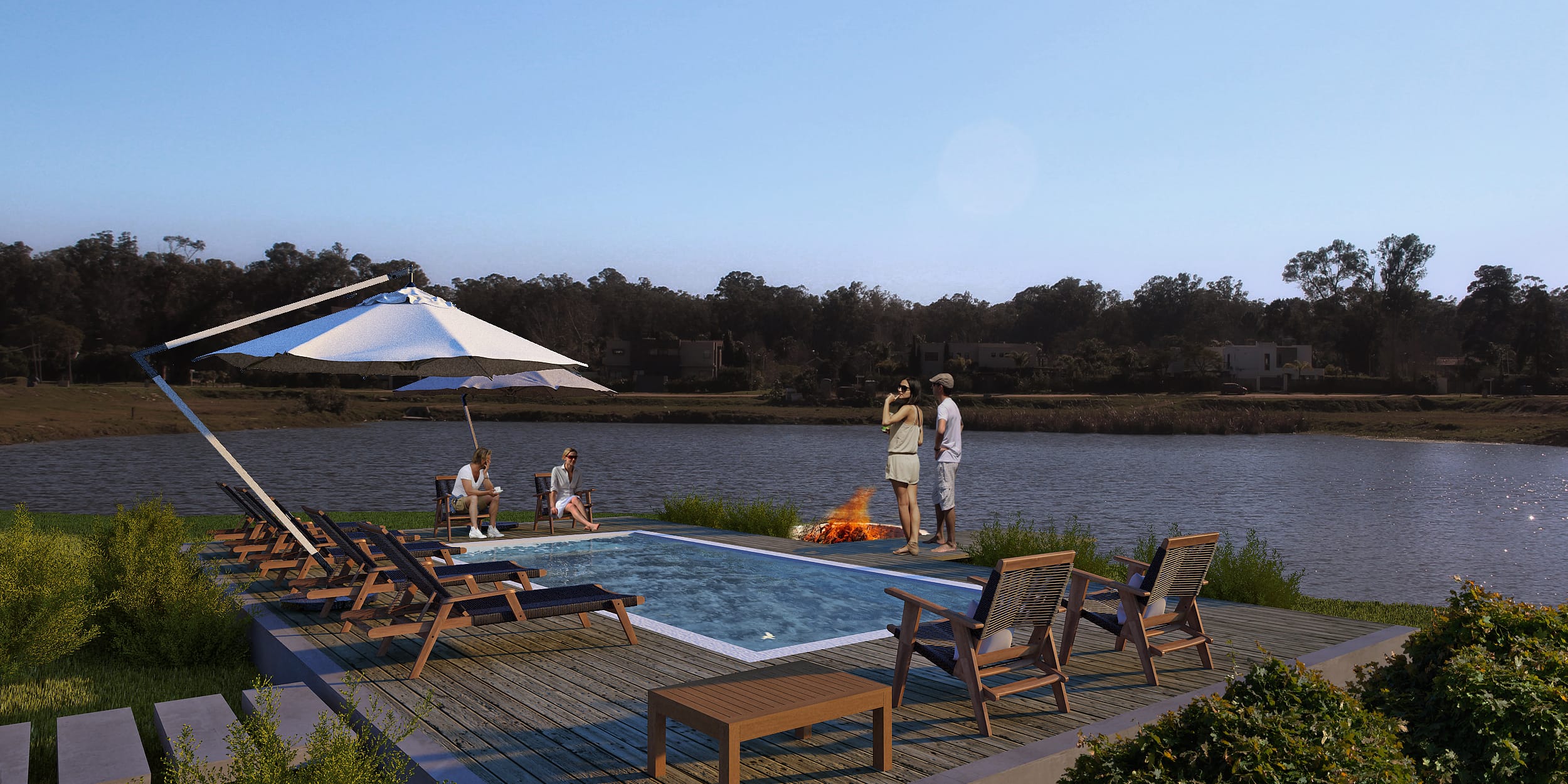 “A diferencia de lo que proyectamos para Las Casas, en este emprendimiento, que por la disposición del terreno y su ubicación es abierto, priorizamos la llegada hacia la laguna y la comunicación directa con la calle en la urbanización”, nos afirma Tomás Vecino, director de obra del estudio.