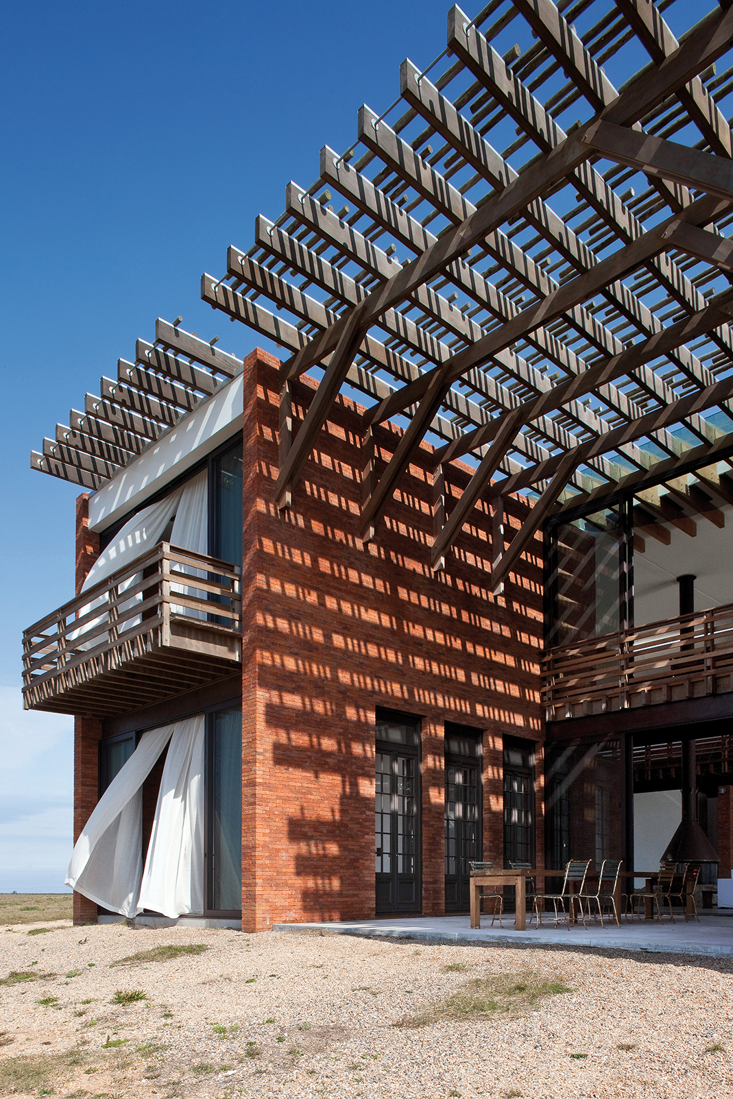 En la casa Luna Llena la economía de elementos arquitectónicos contrasta con la exuberancia de la espacialidad recreada. En su interior es imposible no sentir cómo el verano se filtra a través de las pérgolas. La luz natural dibuja un espectacular grafismo de sombras sobre los muros de ladrillo. Más allá de estos, el paisaje completa la deleitante experiencia. Sin duda, se trata de un ejercicio destacado de arquitectura contemporánea, arquitectura que logra, con su presencia, resaltar este maravilloso enclave natural.