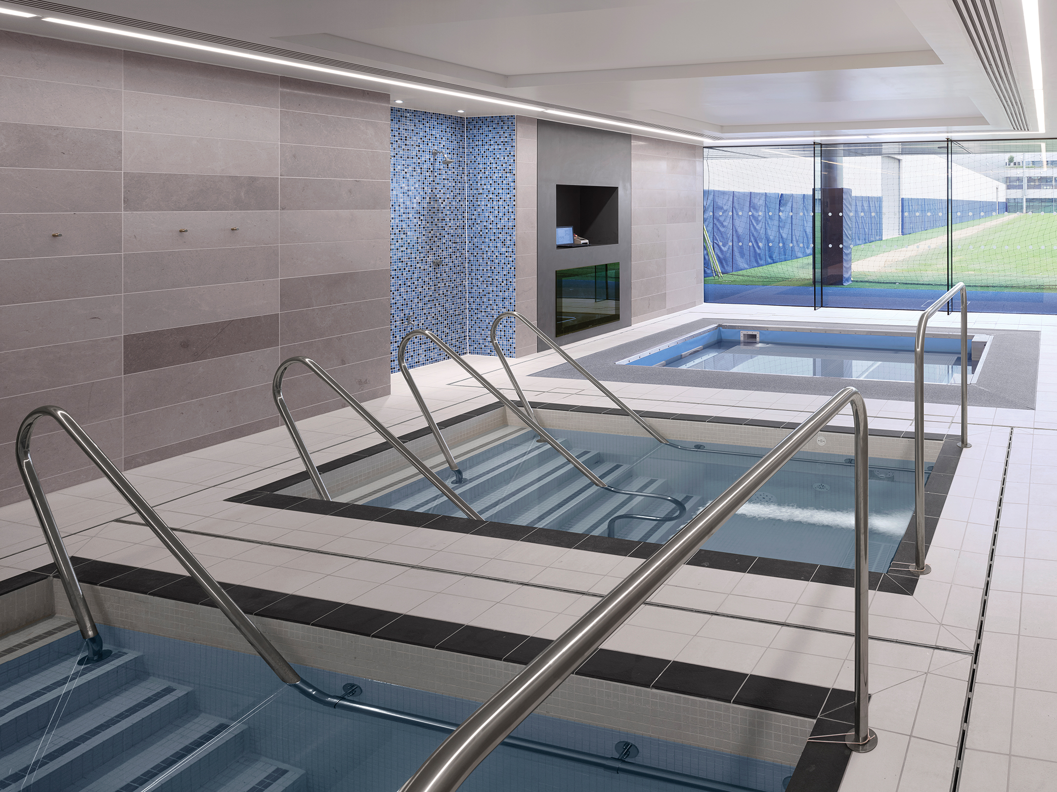 En el centro del conjunto se erige el Central Training Facility, un edificio autónomo que concentra las instalaciones del primer equipo, de la academia y los servicios compartidos. Dos volúmenes semicirculares, contenidos por un muro circular continuo, unifican el programa en una forma única, clara, casi ritual. Allí conviven una cancha cubierta de dimensiones reglamentarias para la academia y una cancha exterior completa para el primer equipo, junto con alojamiento hotelero y residencial para jugadores y entrenadores, además de instalaciones de rehabilitación de primer nivel.