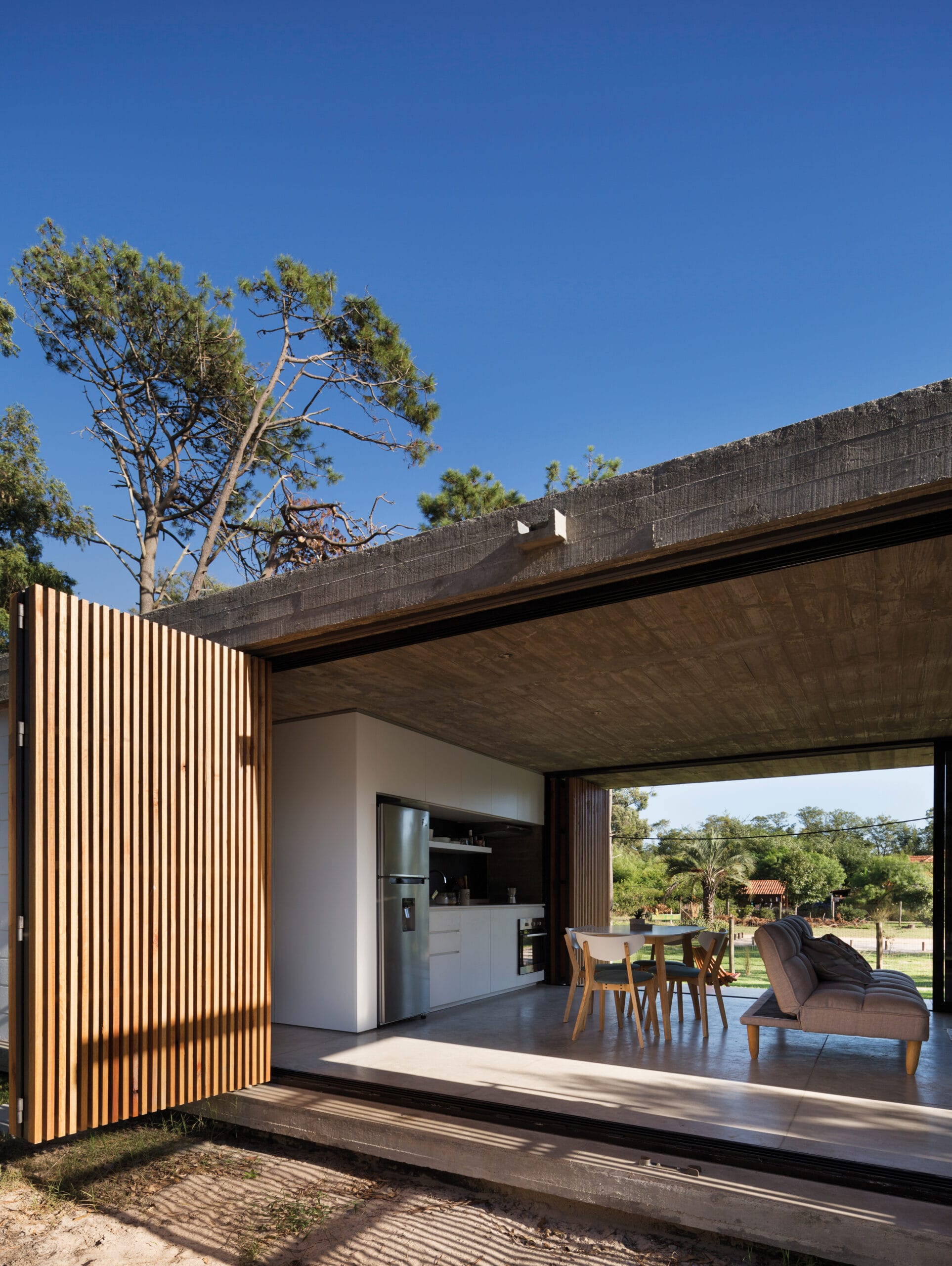 Urbano, suburbano.- La conurbación de Montevideo en su límite este ha ido tomando el borde costero de Canelones, transformando antiguos balnearios exclusivos para el veraneo en lugares de habitar permanente. El paisaje de esta zona fue transformándose paulatinamente, hacia un paisaje híbrido, entre la ciudad y la costa, lo urbano y lo suburbano. Pensar una casa en este contexto, supone trabajar la dualidad entre el habitar intermitente y el habitar continuo. La misma se intensifica, si pensamos que el suelo, que sirve de soporte a la casa, se encuentra en uno de los sectores menos densificados del balneario, es decir, una zona con una creciente urbanización, pero en un terreno mas agreste.