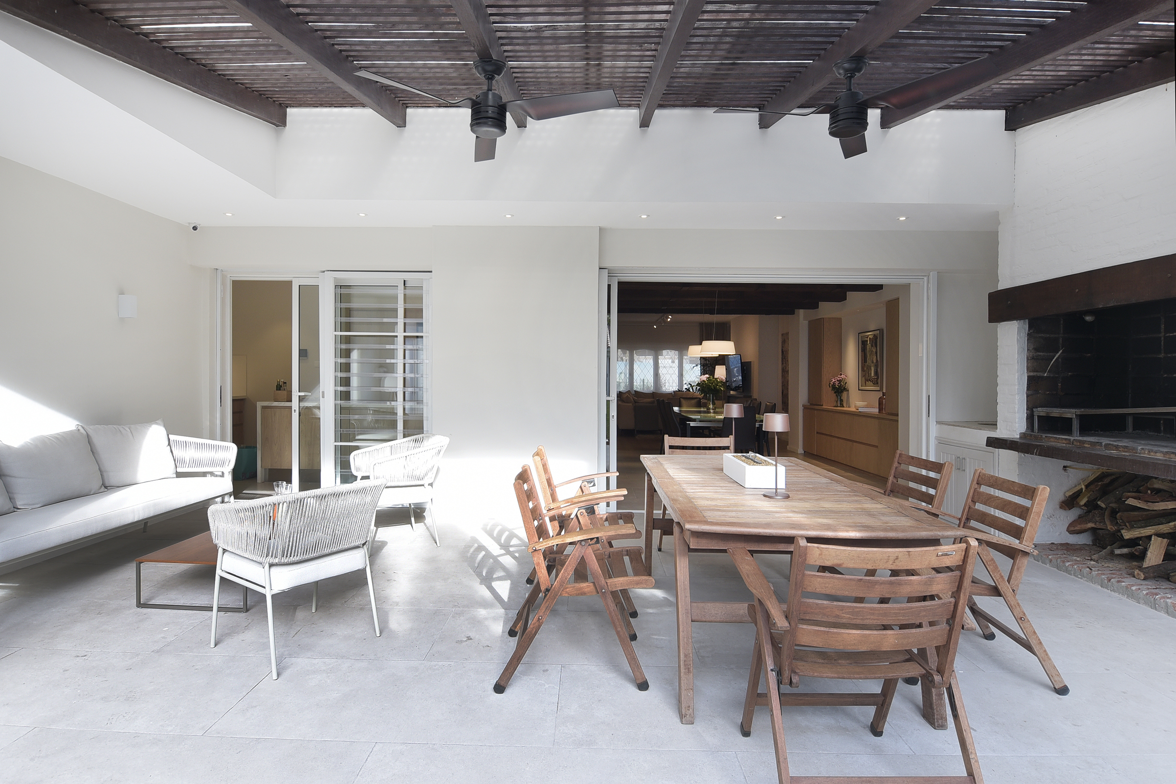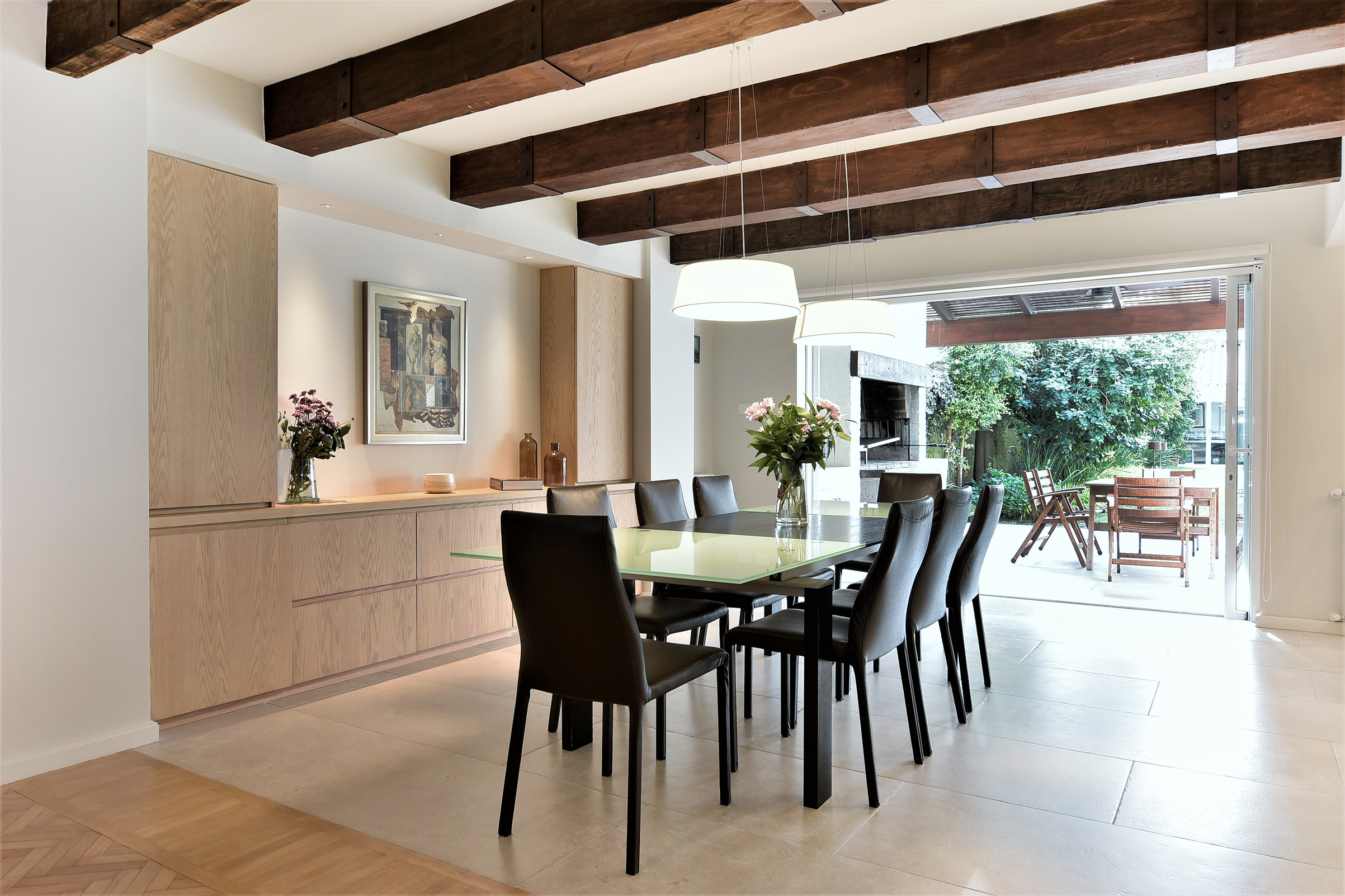 Fueron concebidos para un habitante que el tiempo se encargó de reemplazar; para una familia que ya no existe, para una época que ya es polvo. Y entonces ocurre el deslizamiento, la fisura, la lenta caída: largas temporadas de abandono, de toldos caídos y maderas carcomidas, o por el contrario, sacudidas de entusiasmo y renovación, cuando nuevos moradores irrumpen con el ímpetu de quien quiere rehacer el mundo con sus propias manos. Pero el gesto de habitar no es neutro. La apropiación de un espacio supone siempre una negociación con su historia, y no siempre con respeto. Hay quien arrasa como un conquistador y quien, más sutilmente, disimula la herida bajo una capa de pintura. En esa zona ambigua, entre el respeto por lo que fue y la urgencia de lo que se necesita, operan Berthet, Méndez y Taranto. Allí donde otros ven un edificio viejo, ellas entrevén un relato en suspenso, un cuerpo dispuesto a ser despertado. Su trabajo no consiste tanto en diseñar como en dialogar con lo existente, en escuchar lo que los muros susurran, en traducir esas voces antiguas al lenguaje cambiante del confort —ese concepto resbaladizo, tan caprichoso como el gusto, que envejece, muta, se sofistica—. La metamorfosis, en manos de este estudio, es casi un acto de ternura. Tomemos varios ejemplos, escenas donde la arquitectura se transforma sin traicionarse: