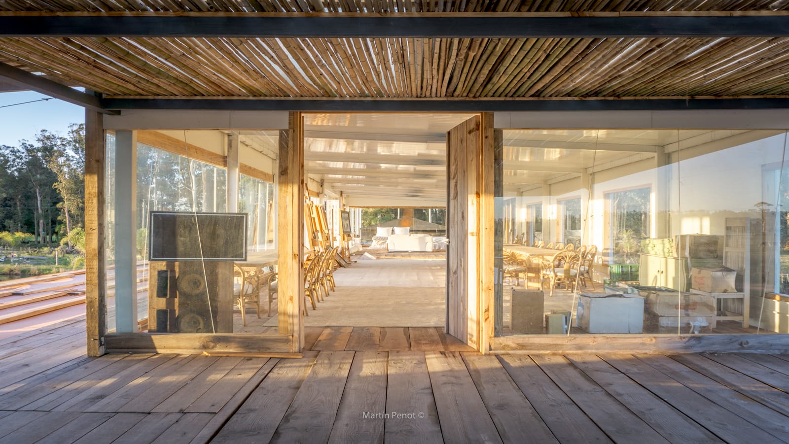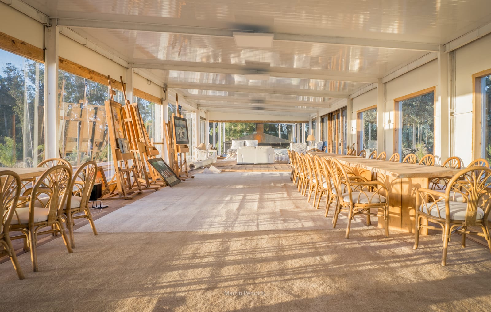 Tras conocer, de manera accidental, al popular Alfredito Etchegaray, en una de las sucursales del querido Copiplan, café de por medio, Finocchietti terminó por llevar a cabo la obra en la Barra rural que hasta ese instante en Copiplan, era sólo un terreno con buenas intenciones. El diálogo con su particular habitante fue constante, el ante proyecto demandó horas de búsqueda e ideas que iban, venían y volvían a ir.  La constante en la obra fue el cambio permanente, que proponía el habitante y atendía atentamente Matías; al extremo que en determinado momento, el arquitecto decidió desprenderse del recurso de los planos… la obra y su habitante demandaban excesiva atención y su vinculación con la obra fue total. El resultado es esta fantástica obra de hierro, madera y vidrio, de 450 metros cuadrados interiores y casi 400 metros exteriores.  Se proyectó un lago con cerca de mil metros cuadrados, de espejo de agua, con forma de guitarra; siendo esta la primera  aventura del profesional, el gesto resultó notable.