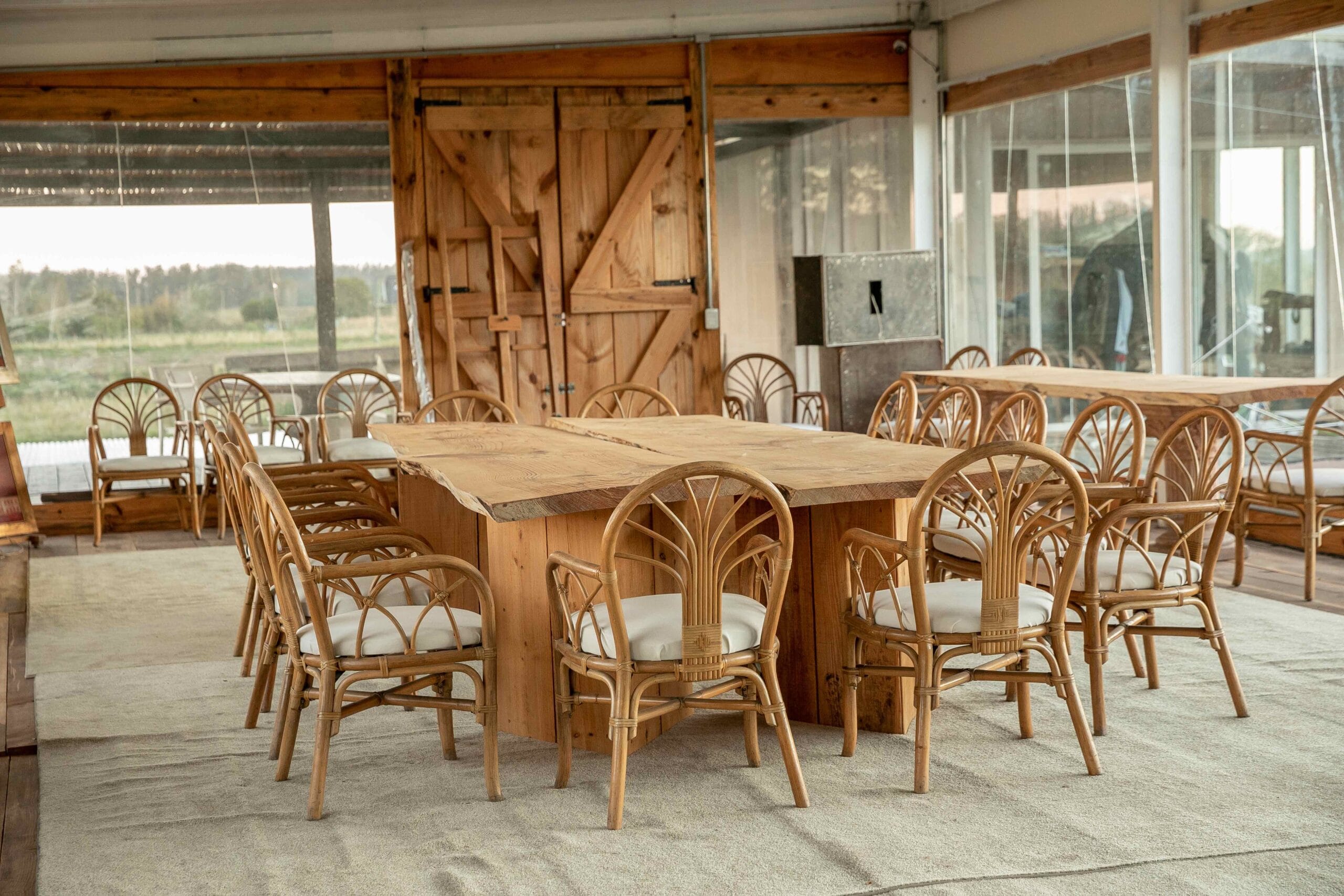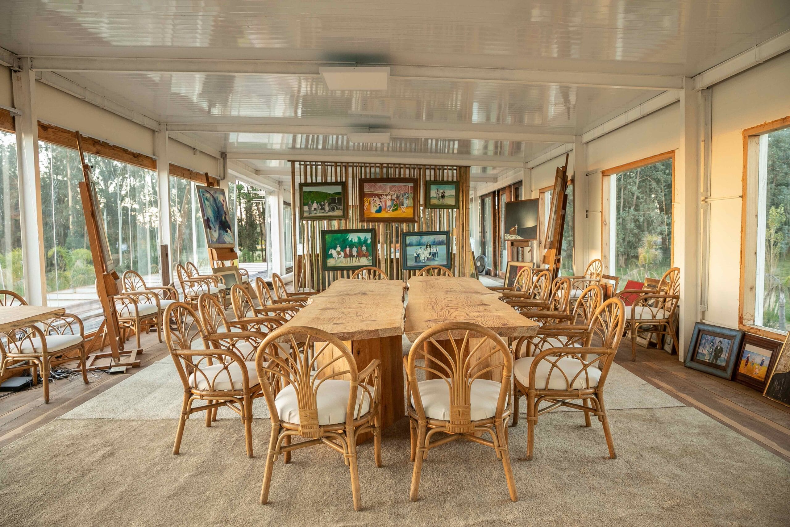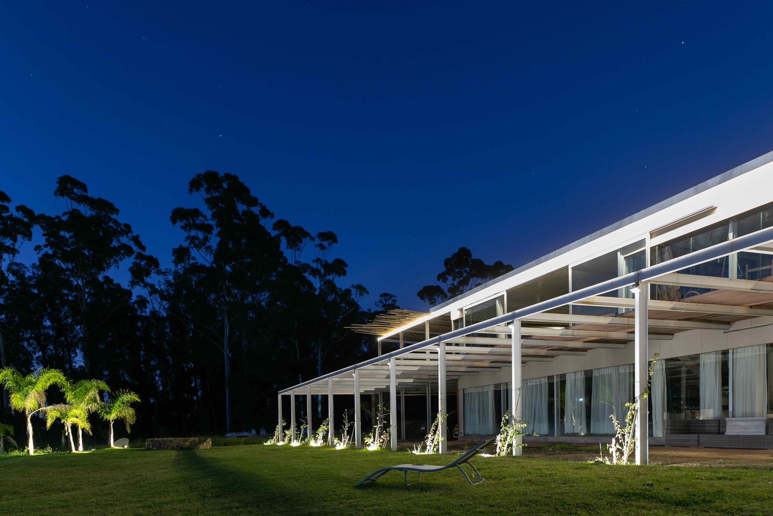 Tras conocer, de manera accidental, al popular Alfredito Etchegaray, en una de las sucursales del querido Copiplan, café de por medio, Finocchietti terminó por llevar a cabo la obra en la Barra rural que hasta ese instante en Copiplan, era sólo un terreno con buenas intenciones. El diálogo con su particular habitante fue constante, el ante proyecto demandó horas de búsqueda e ideas que iban, venían y volvían a ir. La constante en la obra fue el cambio permanente, que proponía el habitante y atendía atentamente Matías; al extremo que en determinado momento, el arquitecto decidió desprenderse del recurso de los planos… la obra y su habitante demandaban excesiva atención y su vinculación con la obra fue total. El resultado es esta fantástica obra de hierro, madera y vidrio, de 450 metros cuadrados interiores y casi 400 metros exteriores. Se proyectó un lago con cerca de mil metros cuadrados, de espejo de agua, con forma de guitarra; siendo esta la primera aventura del profesional, el gesto resultó notable.