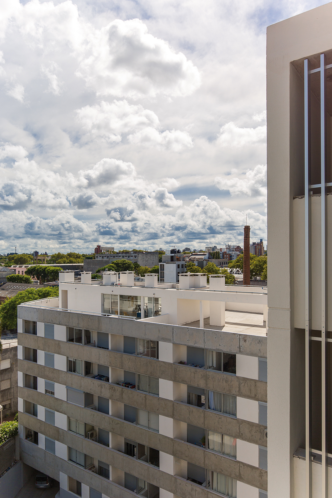 En cuanto a las vistas, y dependiendo de su ubicación, las unidades pueden mirar hacia el entorno urbano o hacia el amplio jardín parquizado interno, un verdadero privilegio, tomando en cuenta la ubicación del conjunto en el corazón de la ciudad. El conjunto fue desarrollado en dos etapas sucesivas y entre sus principales características destacan las terminaciones interiores de calidad, pavimentos texturados en símil de madera, aberturas de aluminio anodizado y revestimientos cerámicos en baños y cocinas.