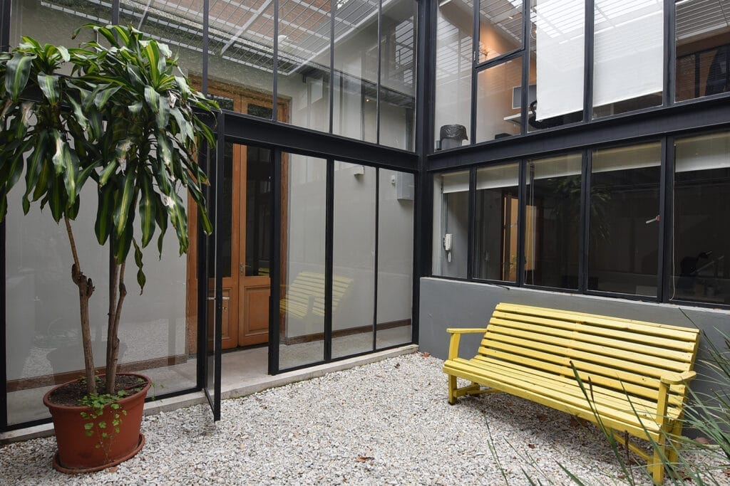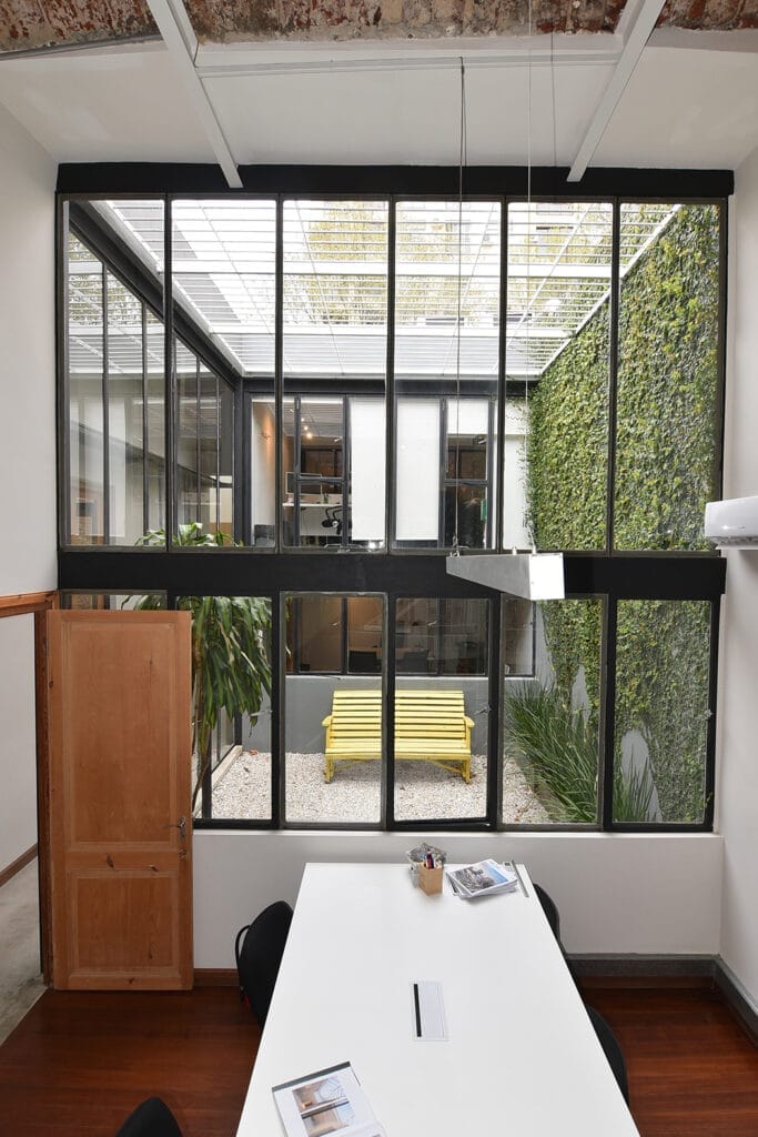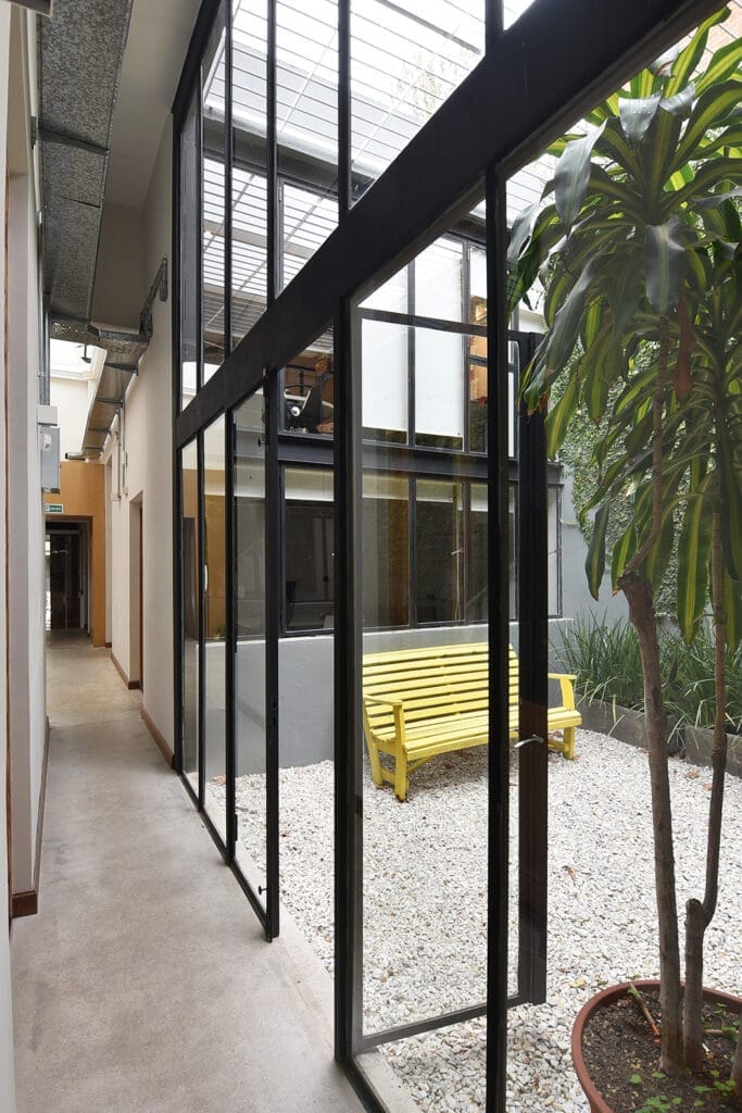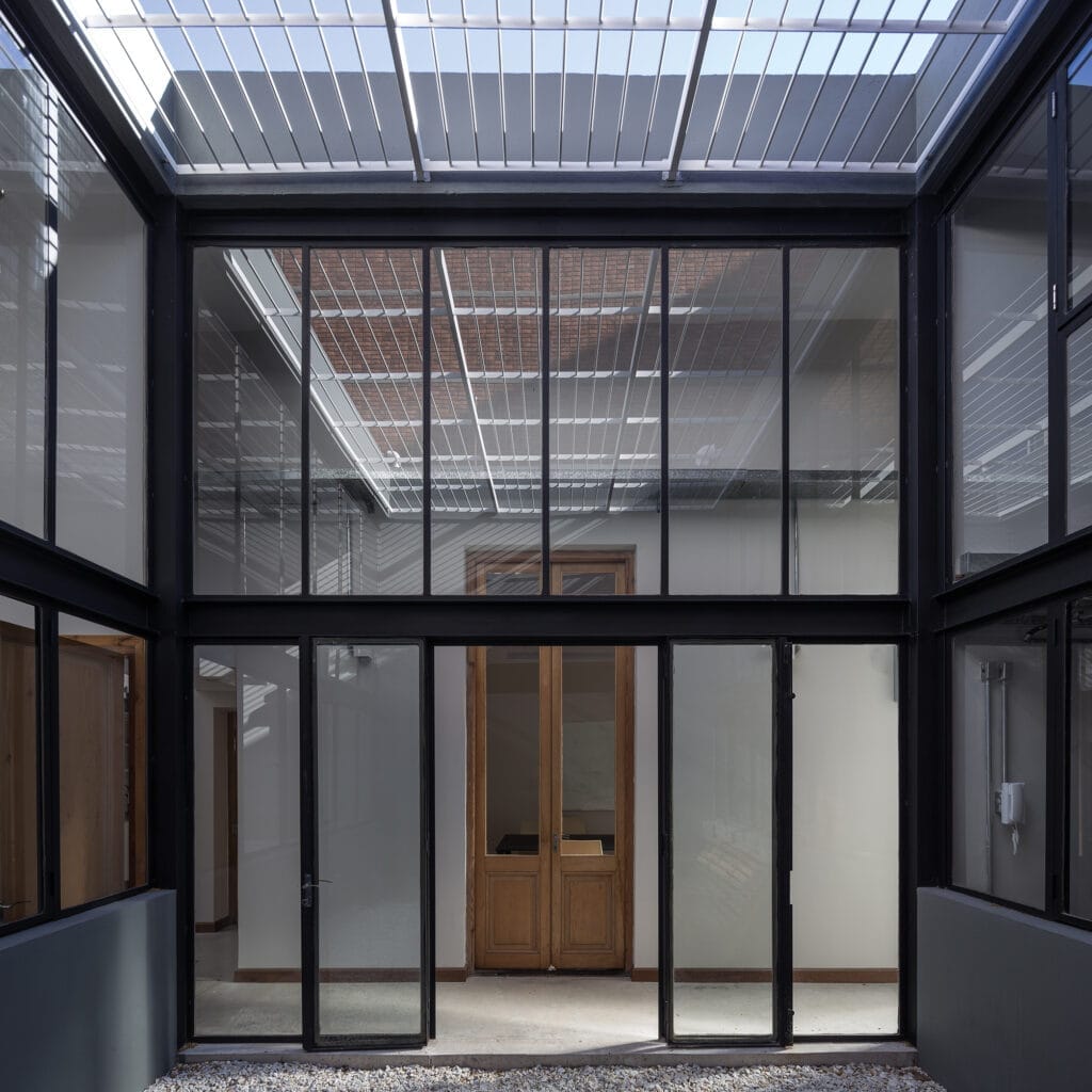 Las intervenciones realizadas en el proyecto surgen de la necesidad de adaptar el espacio a las demandas modernas. La apertura de un patio interior, por ejemplo, no solo añade un elemento de belleza y conexión con la naturaleza, sino que también mejora significativamente las condiciones de iluminación y ventilación en el interior de las oficinas. Estas modificaciones se llevaron a cabo con un profundo respeto por la estructura original, permitiendo que la esencia de la casa-patio se mantenga intacta, al tiempo que se brinda una nueva vida a la edificación.