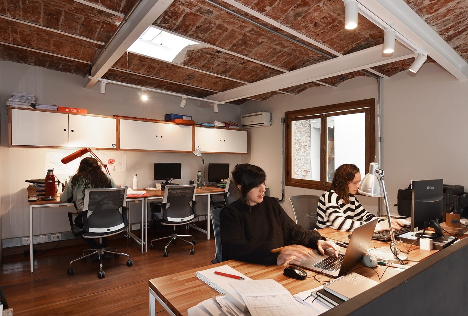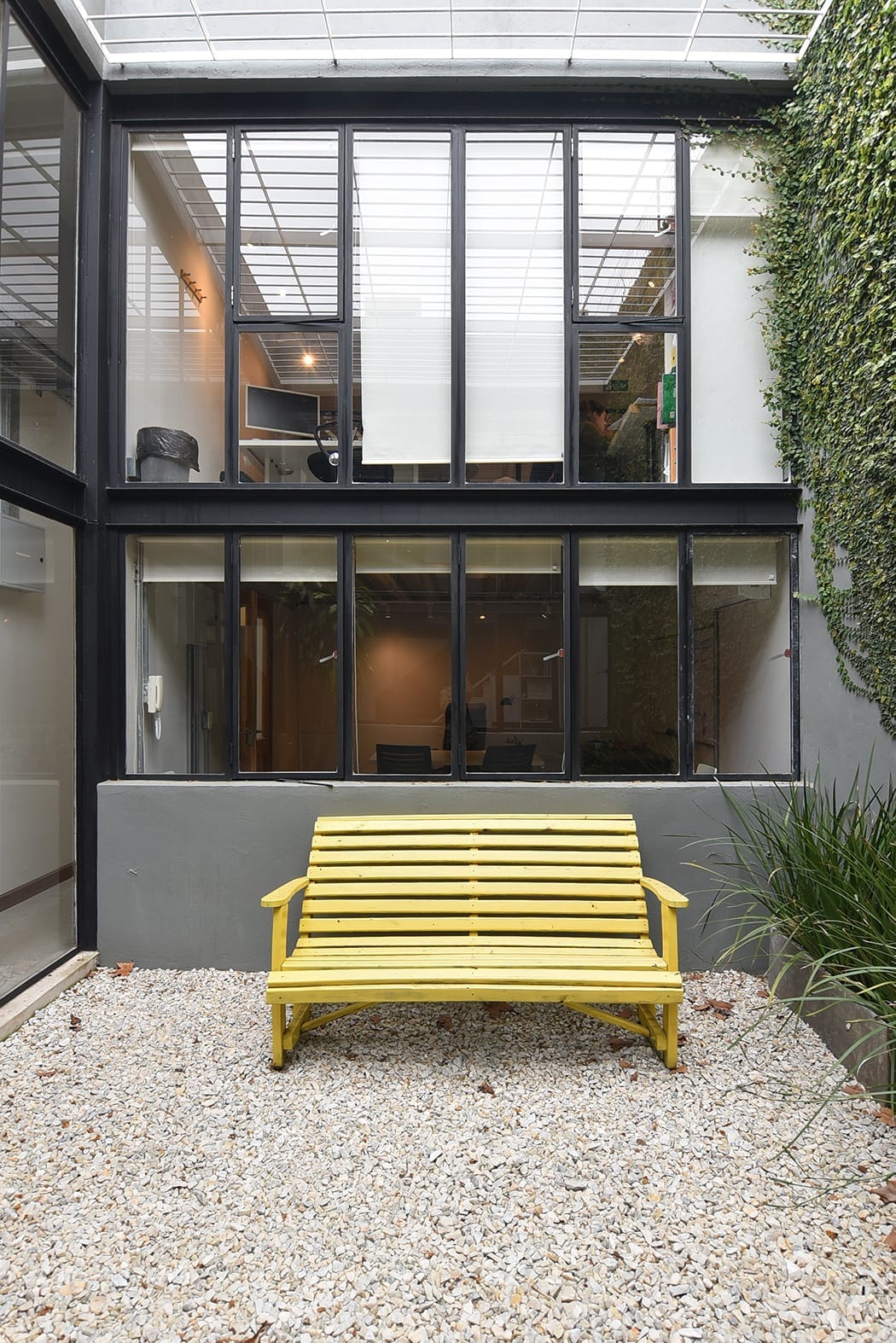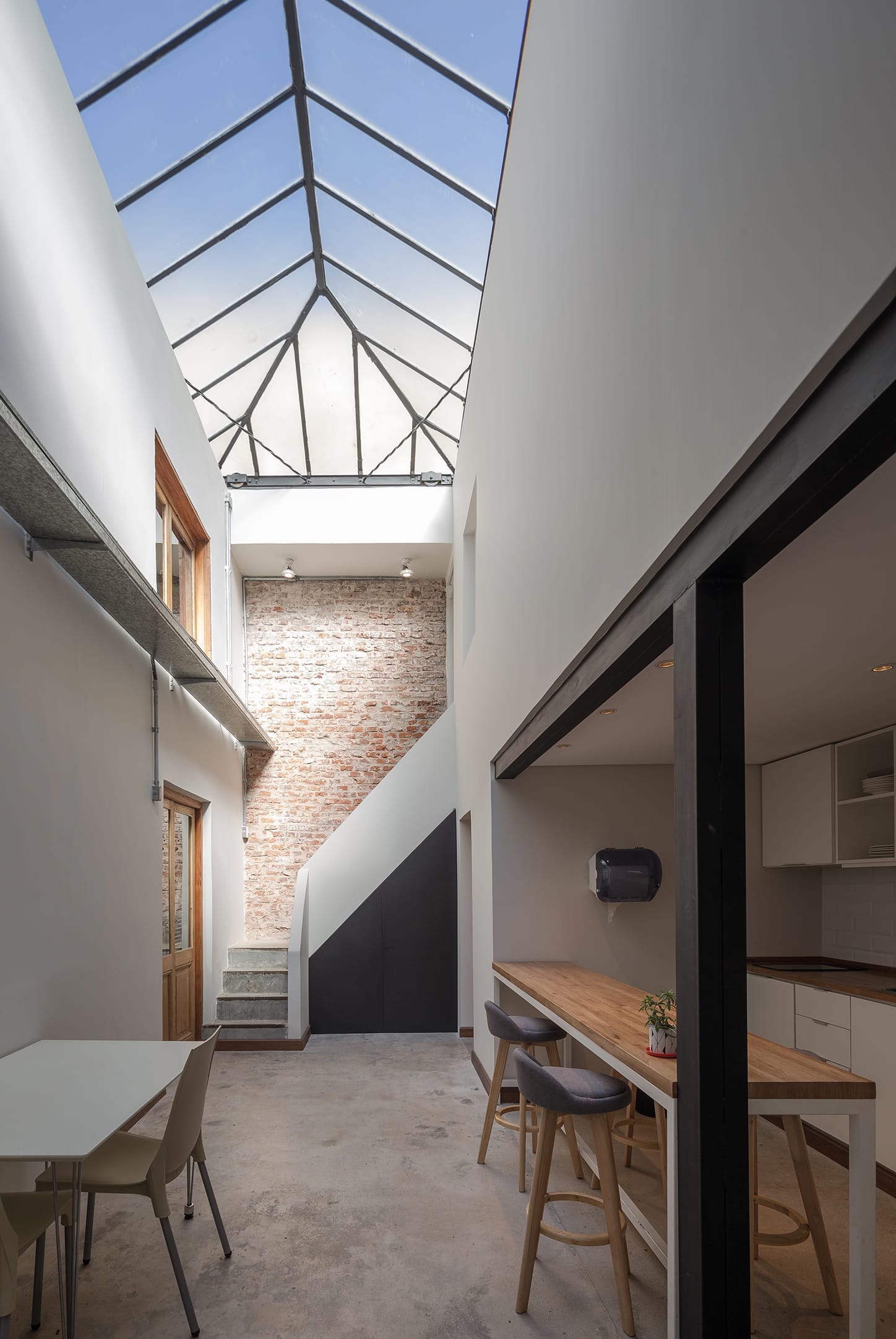 Las intervenciones realizadas en el proyecto surgen de la necesidad de adaptar el espacio a las demandas modernas. La apertura de un patio interior, por ejemplo, no solo añade un elemento de belleza y conexión con la naturaleza, sino que también mejora significativamente las condiciones de iluminación y ventilación en el interior de las oficinas. Estas modificaciones se llevaron a cabo con un profundo respeto por la estructura original, permitiendo que la esencia de la casa-patio se mantenga intacta, al tiempo que se brinda una nueva vida a la edificación.