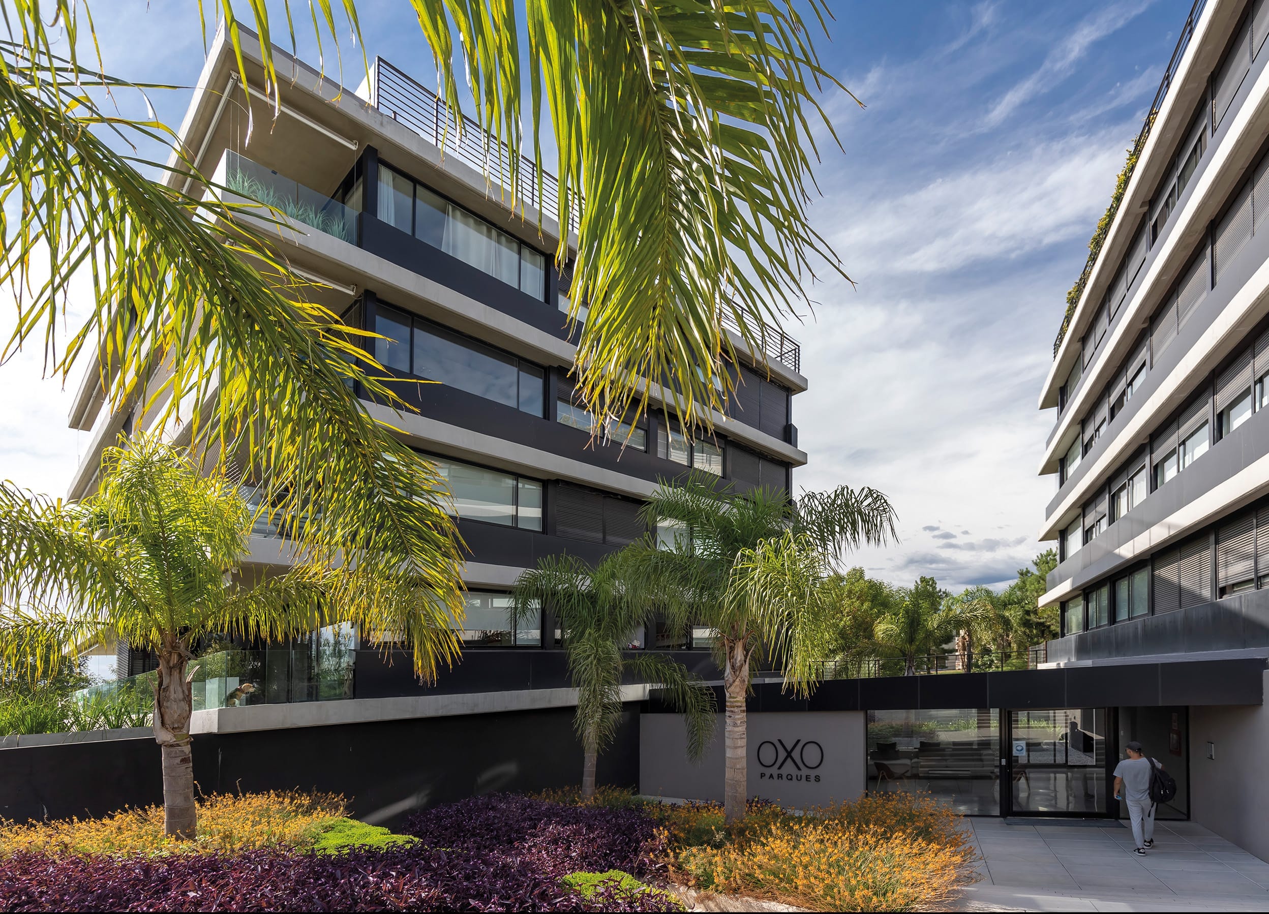 OXO Parques es una atractiva propuesta residencial ubicada en una zona de gran expansión de la ciudad de Montevideo. Se encuentra en el área de crecimiento del Nuevo Carrasco, una urbanización innovadora que combina terrenos para residencias, casonas de apartamentos y un office center, todo integrado en un entorno natural sostenible. El proyecto residencial presenta un esquema de implantación que resulta sugerente y contemporáneo. Se compone de pocos pero impactantes elementos: dos prismas rectangulares girados entre sí, que albergan las viviendas; una colina artificial que sirve como acceso y área común; y un socavamiento en la topografía elevada que proporciona el acceso.
