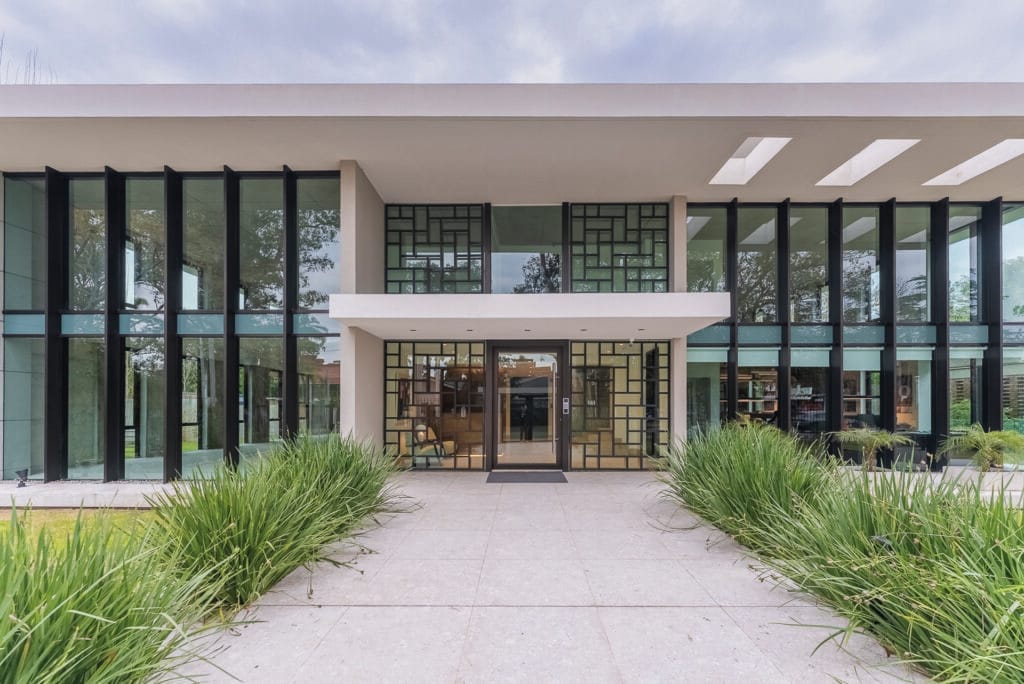Edificio corporativo ubicado en Carrasco sobre la Av. Rivera. La volumetría del edificio parte de respetar la morfología urbana de entorno