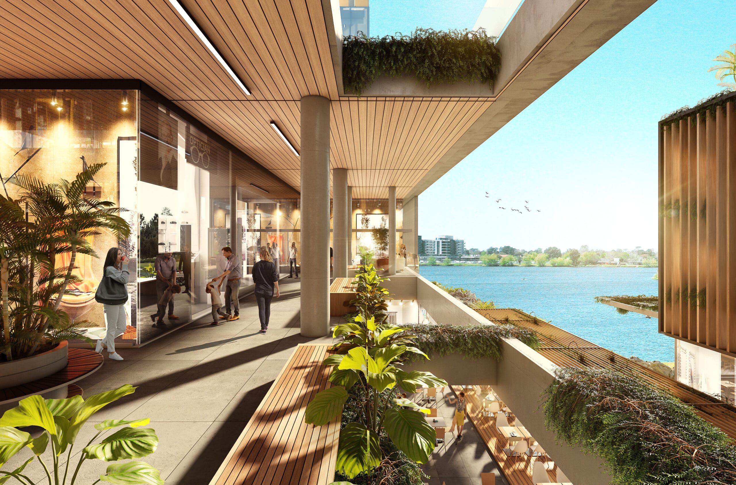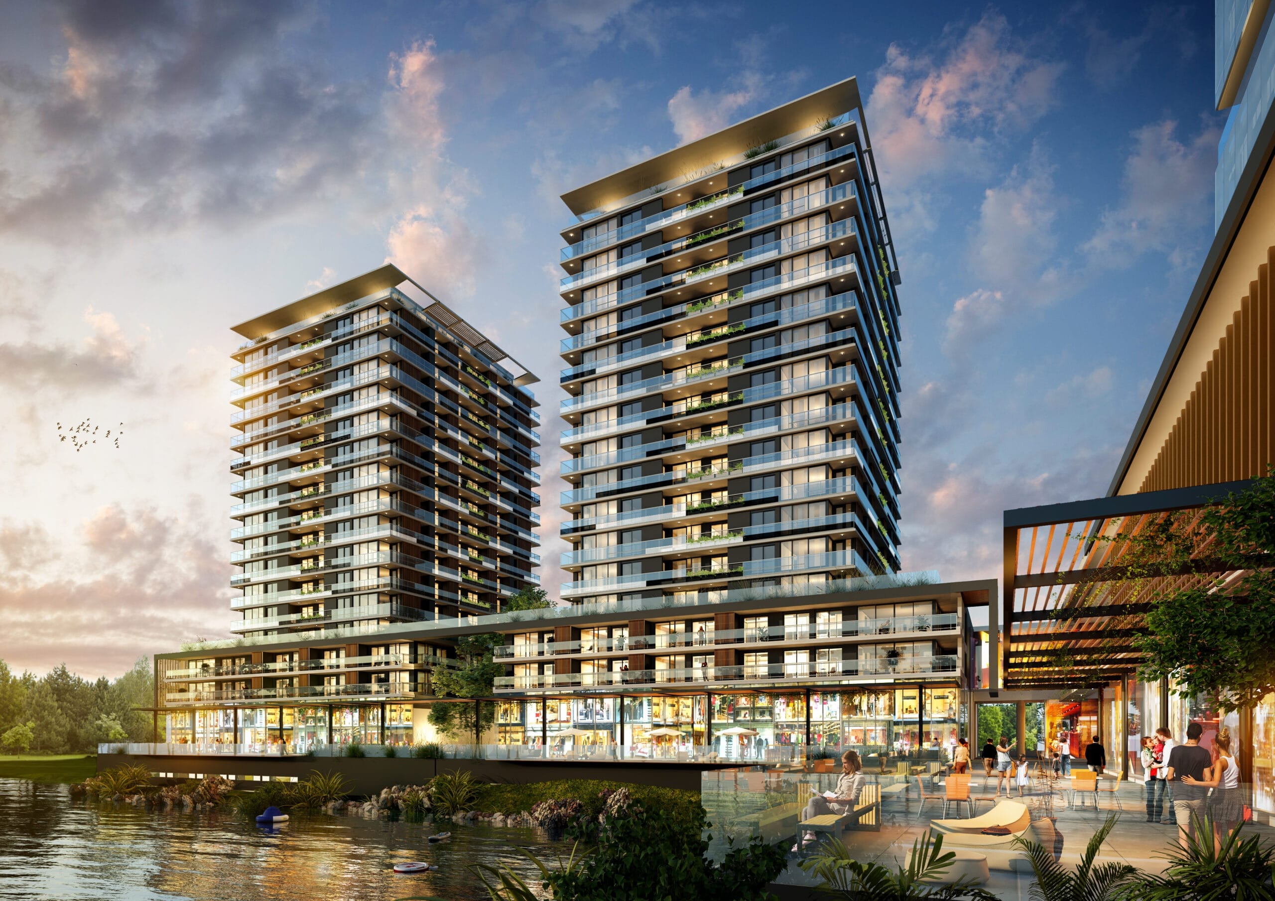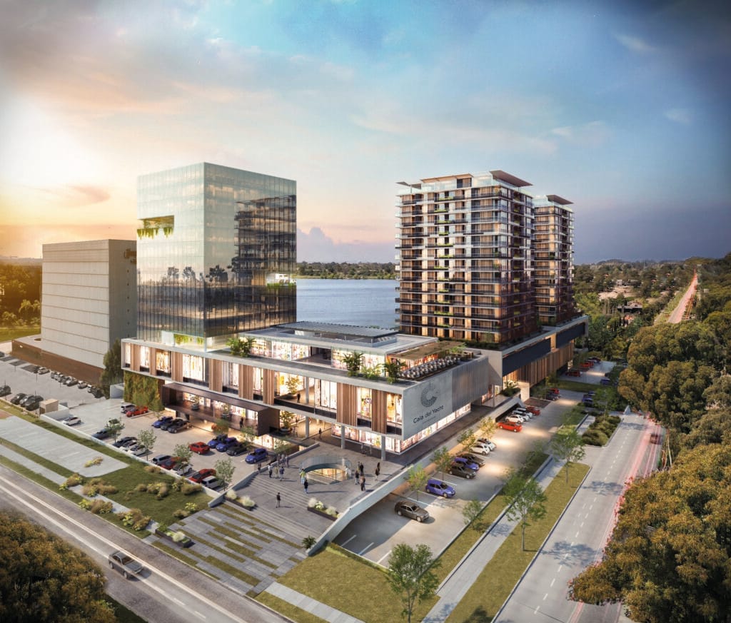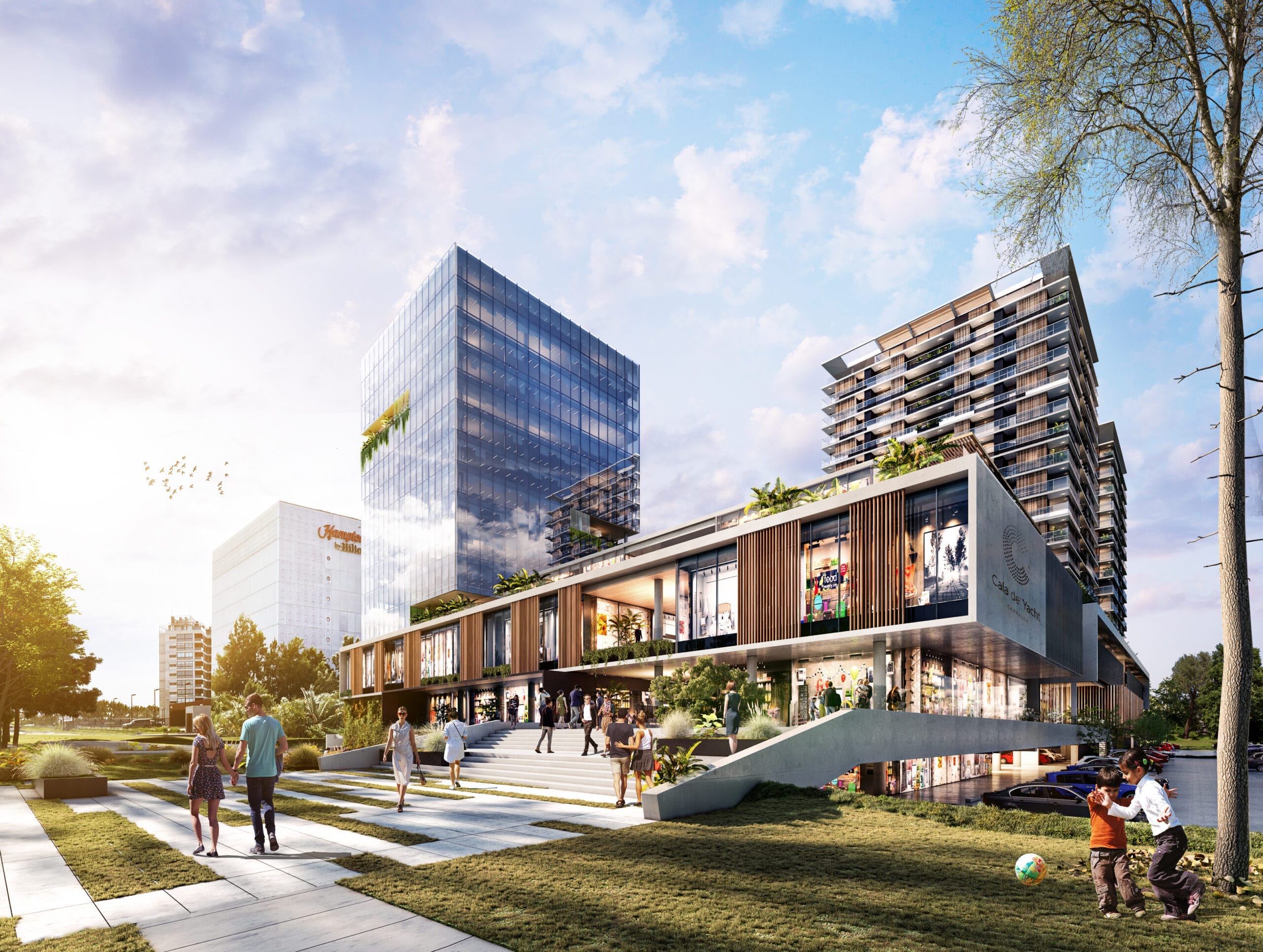 El proyecto propone la reinvención de Punta Cala, una destacada instalación existente, como punto central del desarrollo, junto con la construcción de nuevos lotes adyacentes. El proyecto se divide en tres etapas. La primera etapa comprende la construcción de dos torres, una destinada a uso residencial y la otra a uso corporativo, así como la creación de un centro comercial y gastronómico. El nuevo centro comercial de dos niveles se caracteriza por su transparencia, luminosidad y calidez. Su diseño se basa en una diagonal que guía hacia el paseo comercial junto al lago. Este espacio contará con servicios, tiendas, restaurantes, estacionamiento y áreas libres destinadas a actividades recreativas y deportivas, donde el paisaje será el protagonista.
