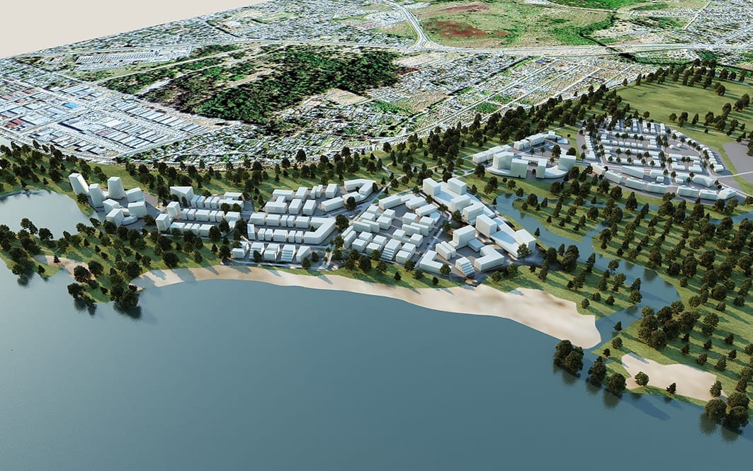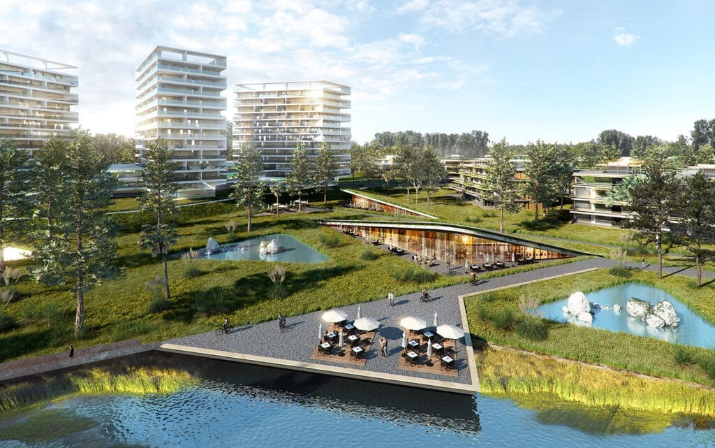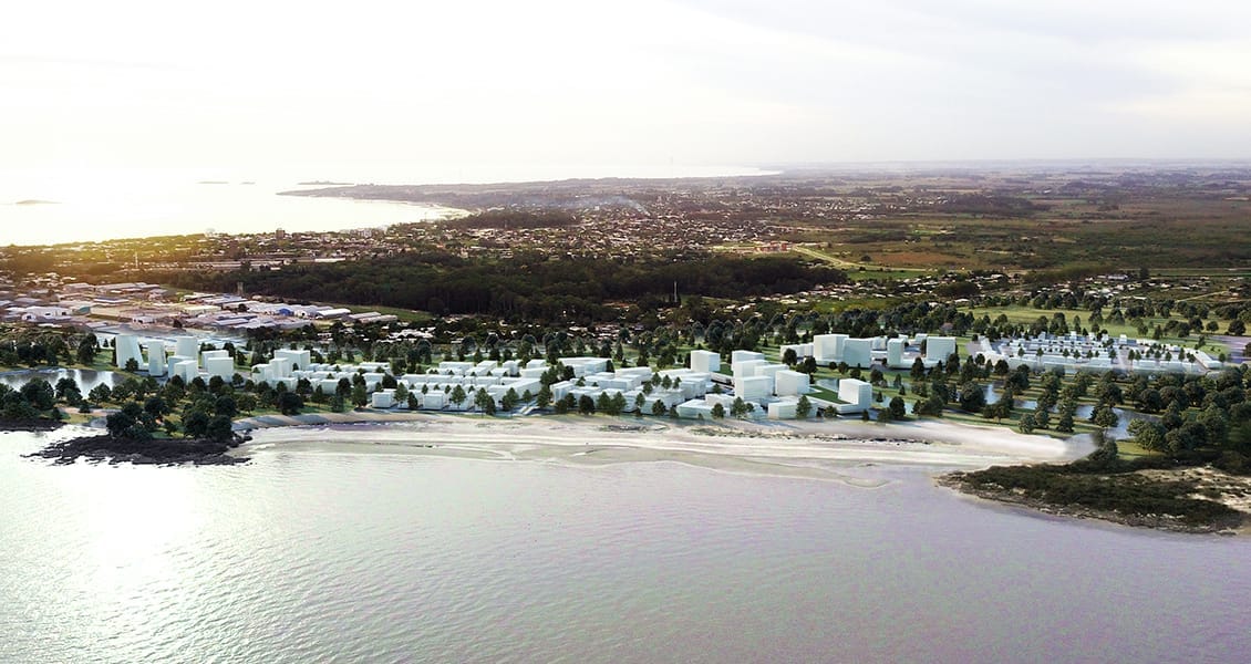 El diseño del master plan propone la creación de una comunidad abierta que establezca una nueva relación entre la naturaleza y la ciudad, basada en la sustentabilidad ambiental, las energías renovables y el respeto por el paisaje. El objetivo es desarrollar una ciudad que sea una plataforma versátil y flexible, generando experiencias de programación mixta que impulsen la expansión de la matriz productiva de Colonia. Se espera atraer a nuevos residentes tanto de Montevideo como de Buenos Aires y otras áreas de la región. Una vez completadas las diferentes etapas del proyecto, se crearán entre 7,000 y 8,000 nuevos hogares. La diversidad social, los destacados centros educativos y las empresas en crecimiento que generen empleo son algunos de los componentes clave de esta nueva ciudad, que se integrará al área urbana existente. Esto contribuirá a posicionar a Colonia como un centro de innovación y conocimiento regional, capaz de conciliar la naturaleza, el patrimonio y la modernidad. En cuanto al diseño urbanístico propuesto, se plantea una estructura celular policéntrica, con una naturaleza alveolar fuertemente integrada al paisaje natural en diversas escalas. Estas unidades urbanas, rodeadas y conectadas por la naturaleza, se adaptan a las características del terreno y se programan según la demanda, siguiendo una estrategia de crecimiento controlado que permita una adecuada gestión del territorio a largo plazo. Este entramado celular da lugar a una red de espacios naturales públicos altamente singulares, que reconoce eventos macro como el parque del Arroyo de la Caballada y la costa del río, y crea otros ámbitos intermedios temáticos que permiten atravesar el terreno en múltiples direcciones, superando la linealidad de la primera fila frente al río para extender el valor hacia el interior del territorio. Este nuevo sistema de parques intersticiales amplía la presencia de áreas verdes en los núcleos urbanos, valora paisajes mediterráneos diversos y preserva la riqueza del hábitat y los ecosistemas naturales.