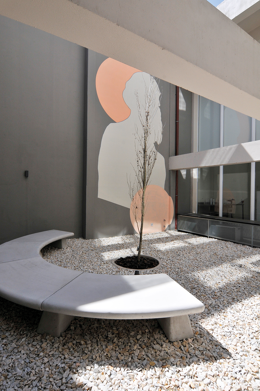 En este sentido, la intervención proyectada se caracteriza desde el punto de vista espacial y material en los siguientes aspectos: Se recuperan y jerarquizan los patios de aire y luz del proyecto original transformándolos en articuladores de los nuevos espacios funcionales y de los recorridos internos sugeridos por la propia actividad del laboratorio. Con esta lógica proyectual los patios se convierten en actores principales del paisaje interior del edificio y permanente presencia desde los distintos ámbitos de trabajo, sin dejar de cumplir su función original de proveedores de aire y luz.