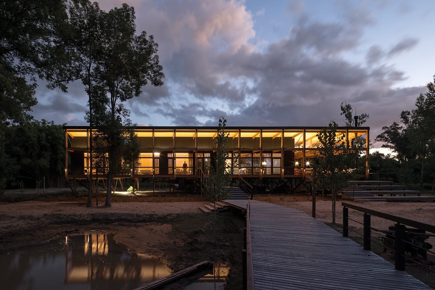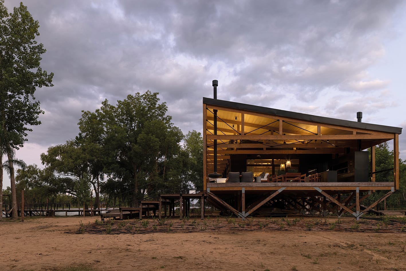 Una casa anfibia —refiere un ser que puede vivir indistintamente en la tierra o en el agua— se construye elevada del suelo para convivir con las periódicas crecidas del agua a orillas del Paraná Miní, un terroso río de suave andar. Próximamente la primera casa certificada Passivhaus de Argentina.