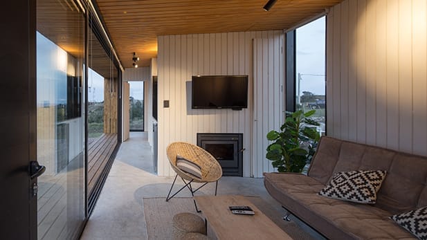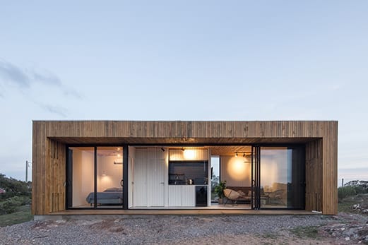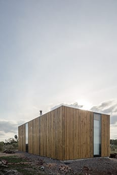 textura homogénea en el exterior de la construcción. En contraste, en el interior se utilizó una cálida textura de madera para crear un ambiente acogedor y confortable.