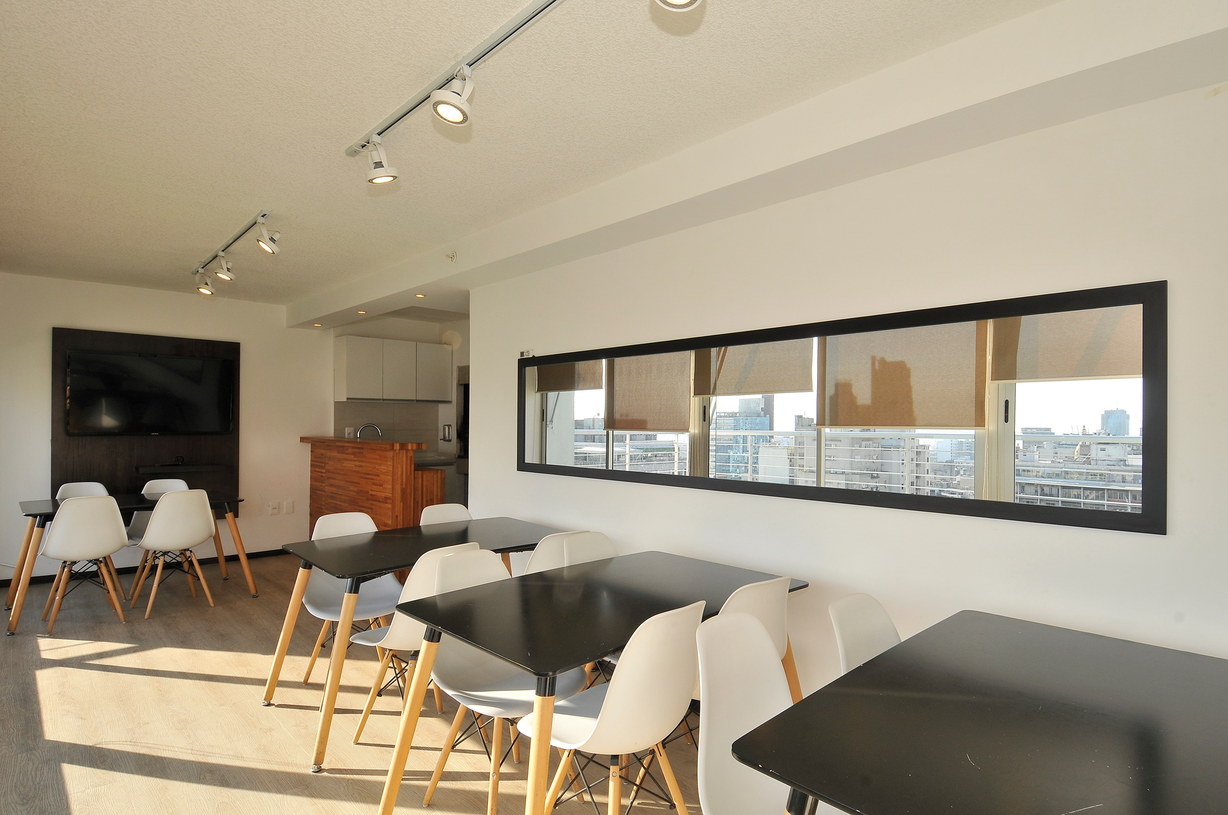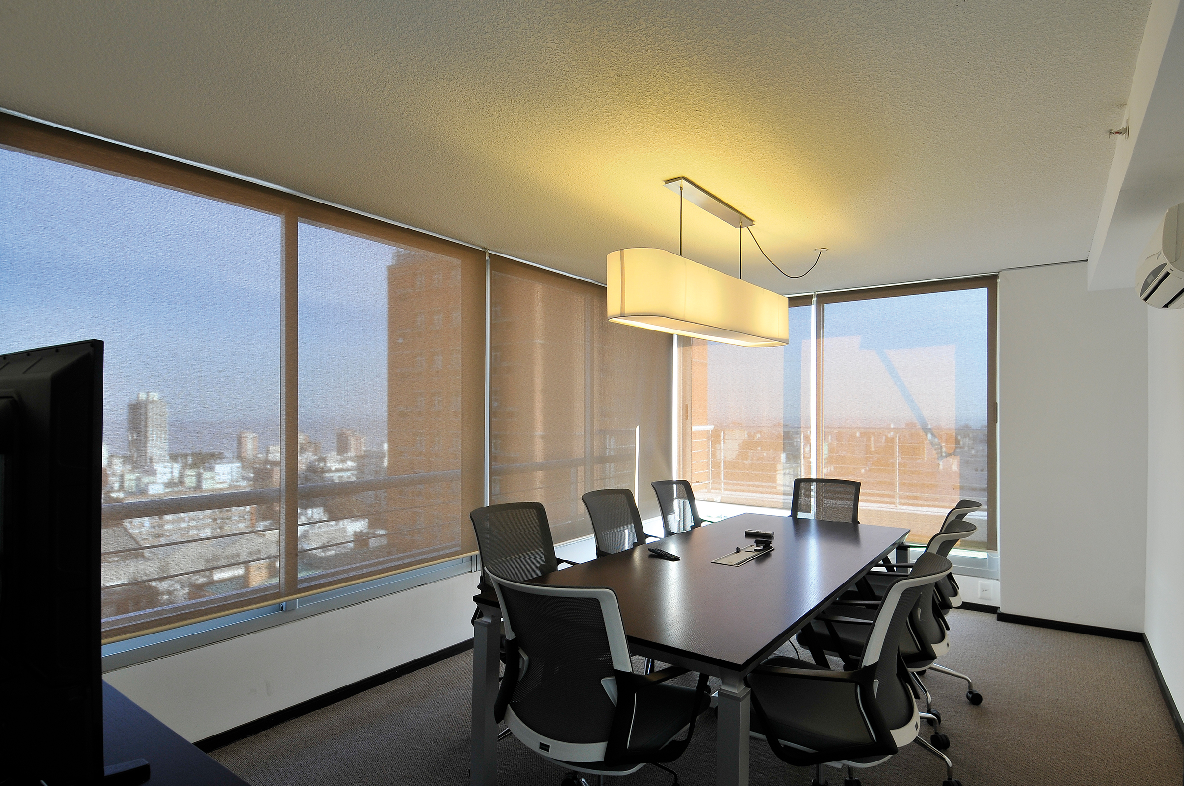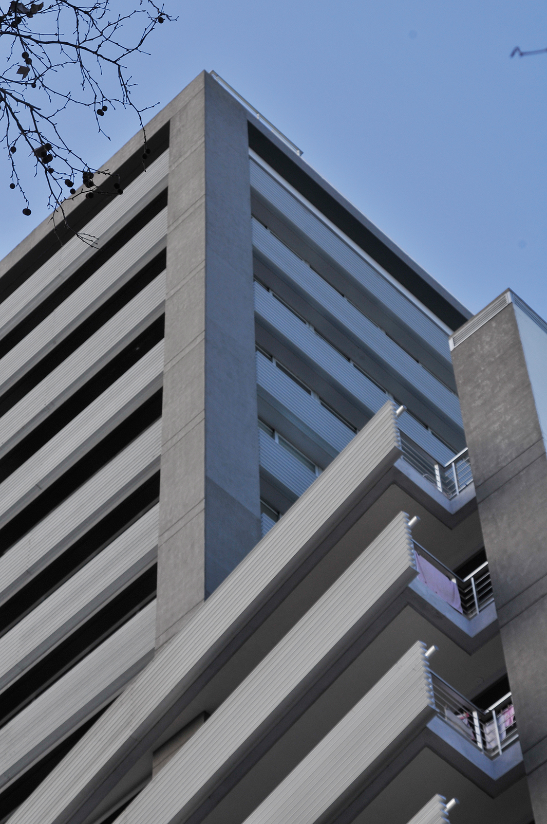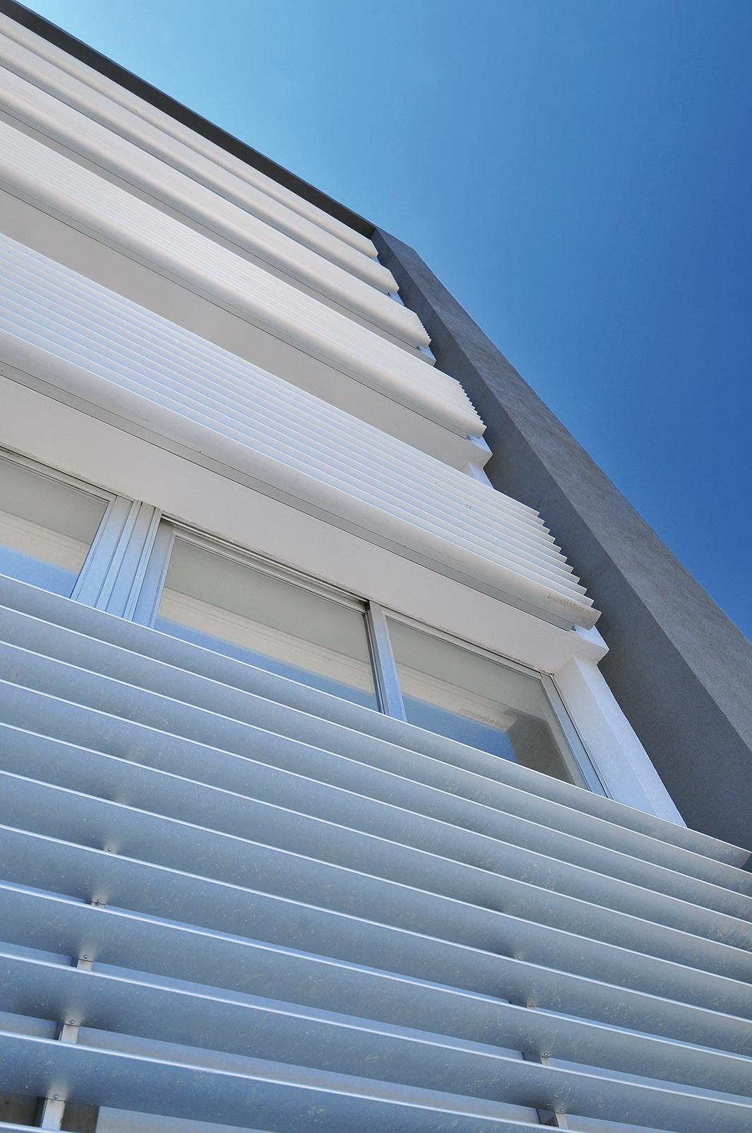 Sobre la fachada, antepechos continuos dibujan una seguidilla de bandas horizontales y tras este primer plano aparece la segunda fachada, acristalada, que posibilita amplias vistas desde todas las unidades de viviendas, a lo largo de todos los niveles de la torre. Además del plano acristalado, la edificación posee una terminación en revoques de hormigón visto, paneles de revestimiento y perfilería en aluminio, detalles que cierran la composición del volumen, complementan su ligereza visual y, en su condición material, apoyan la respuesta de una arquitectura consecuente con el propósito de adaptarse al ritmo de un estilo de vida contemporáneo.
