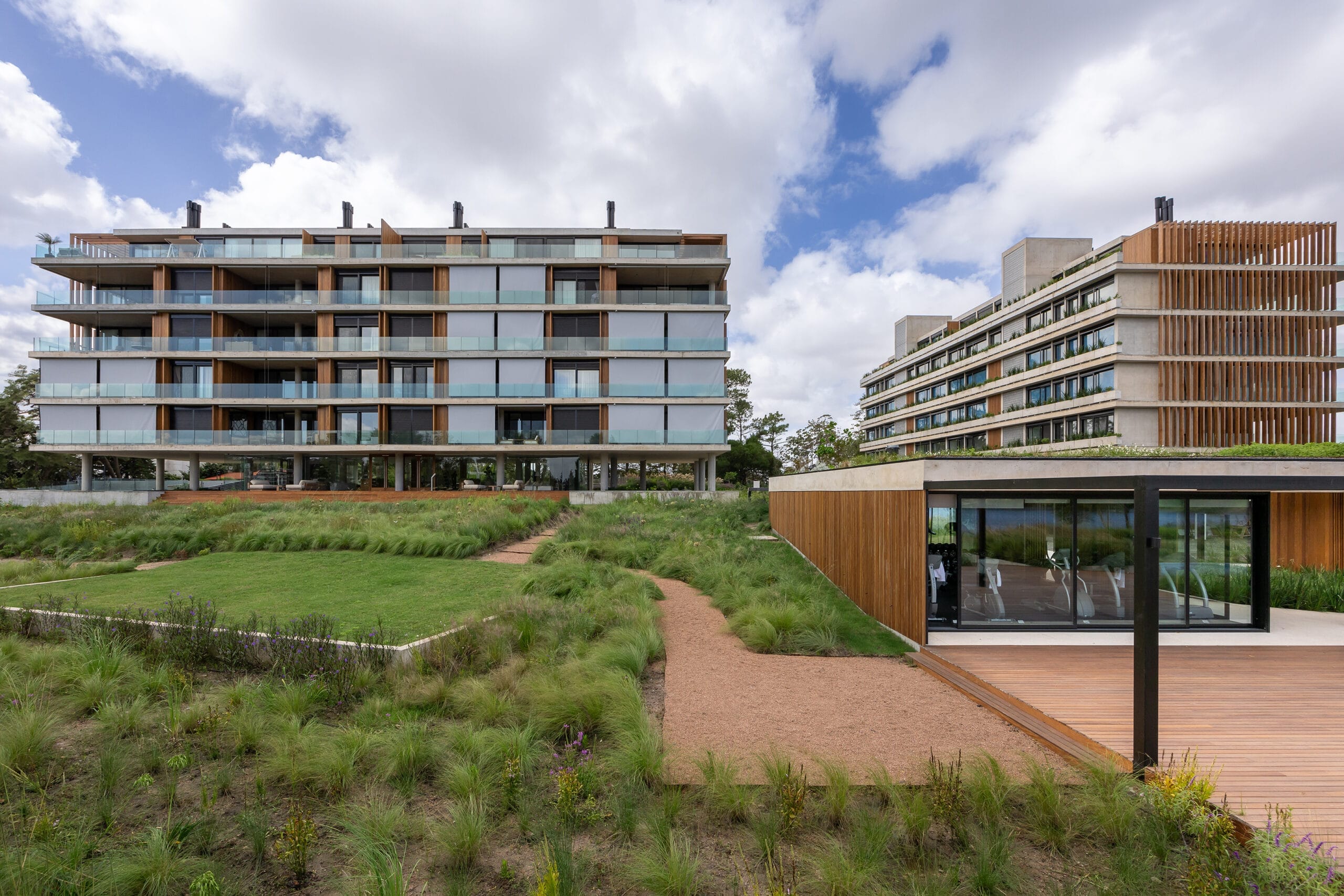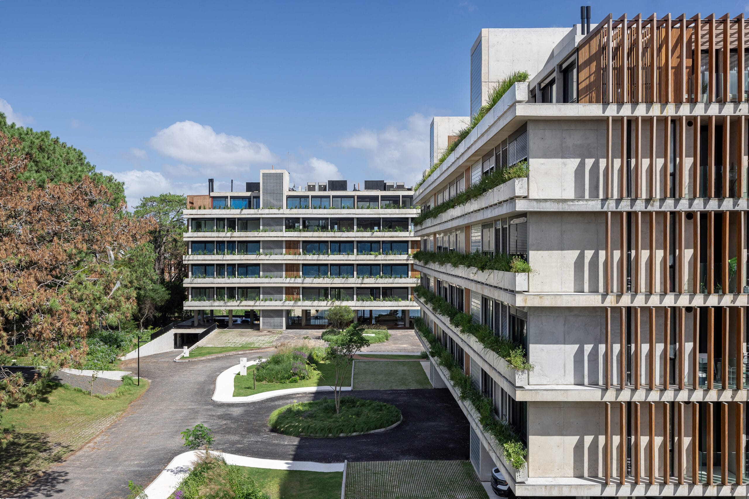 Los distintos edificios que integran el conjunto están cuidadosamente dispuestos atendiendo la mejor orientación en cuanto al asoleamiento y asegurando vistas francas y despejadas al Lago desde cada unidad.