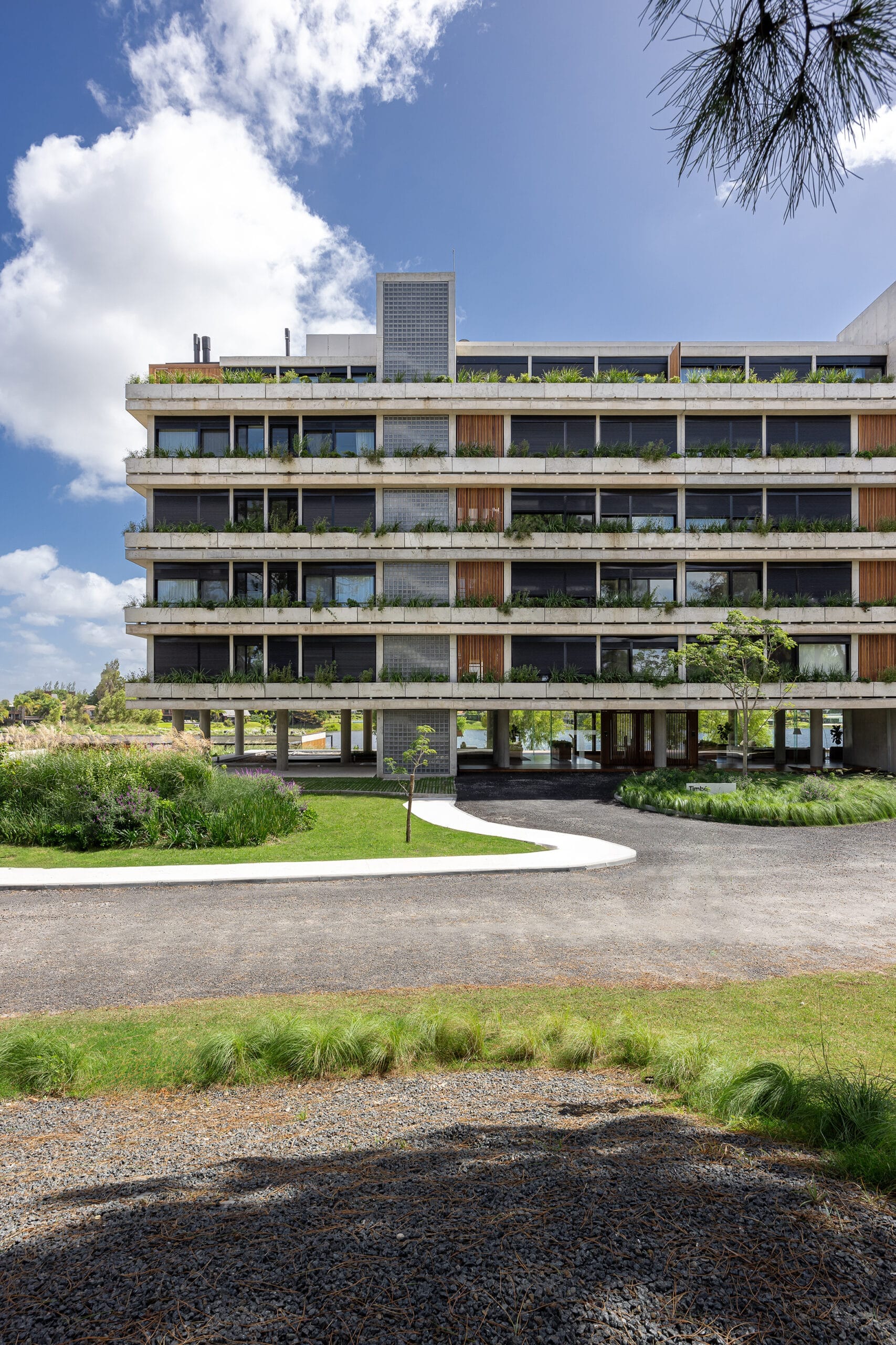 Riba está compuesta por cuatro edificios bajos de viviendas y un pabellón de amenities que se despliegan sobre un gran parque de más de 24.250 metros cuadrados, el cual transcurre a orillas del Lago con más de 385 metros de costa propia.