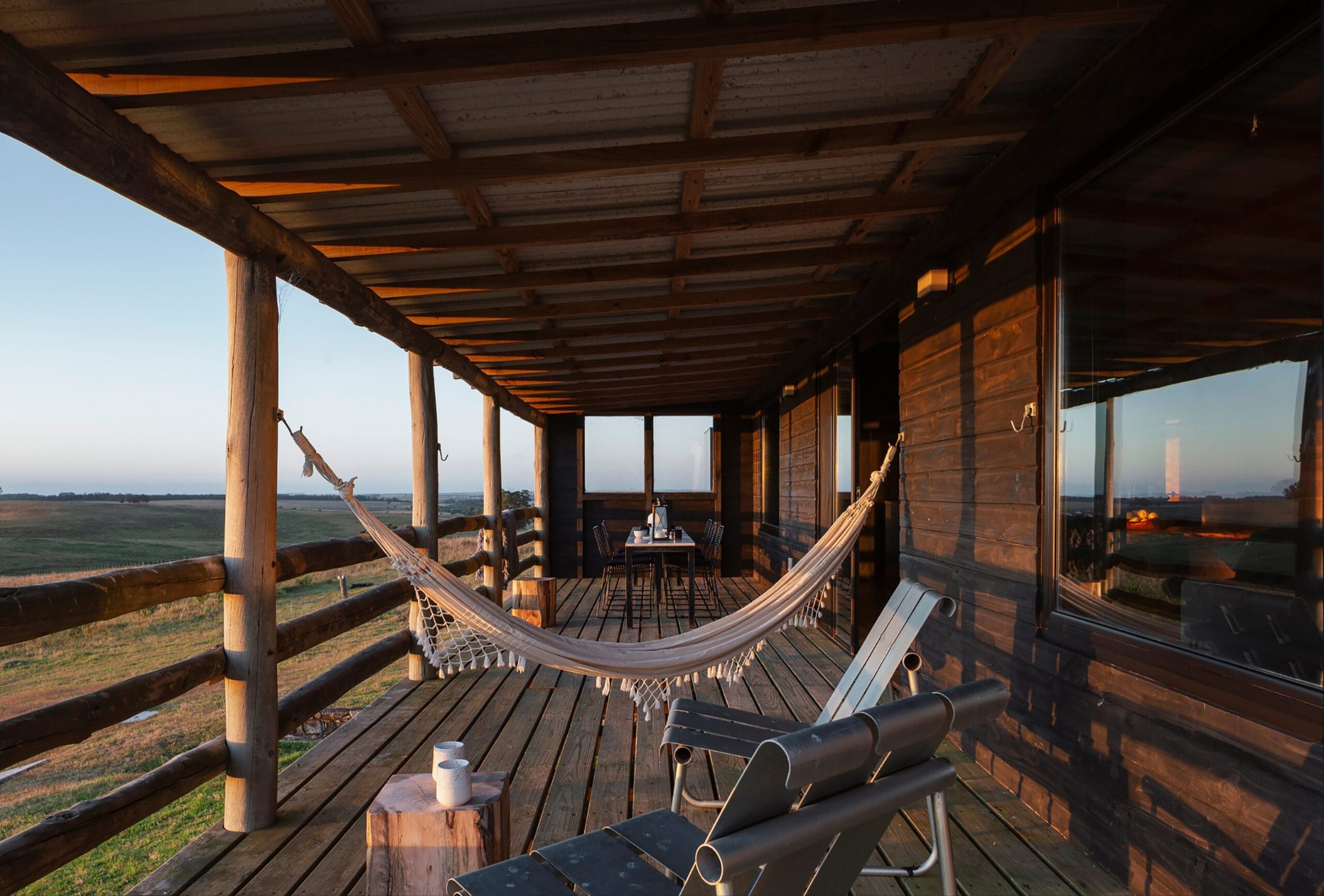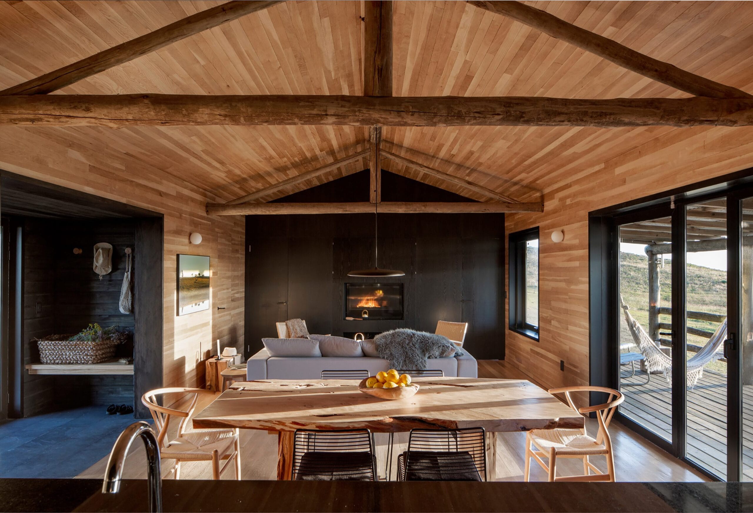 Cerca del emblemático pueblo de Garzón, imaginaron una residencia capaz de condensar el imaginario campestre local con reminiscencias de la vida rural de Montana, donde Hannah vivió su infancia, y en la que Jamie pudiera cocinar sus propias comidas alrededor del fuego, al igual que su admirado chef Francis Mallmann.