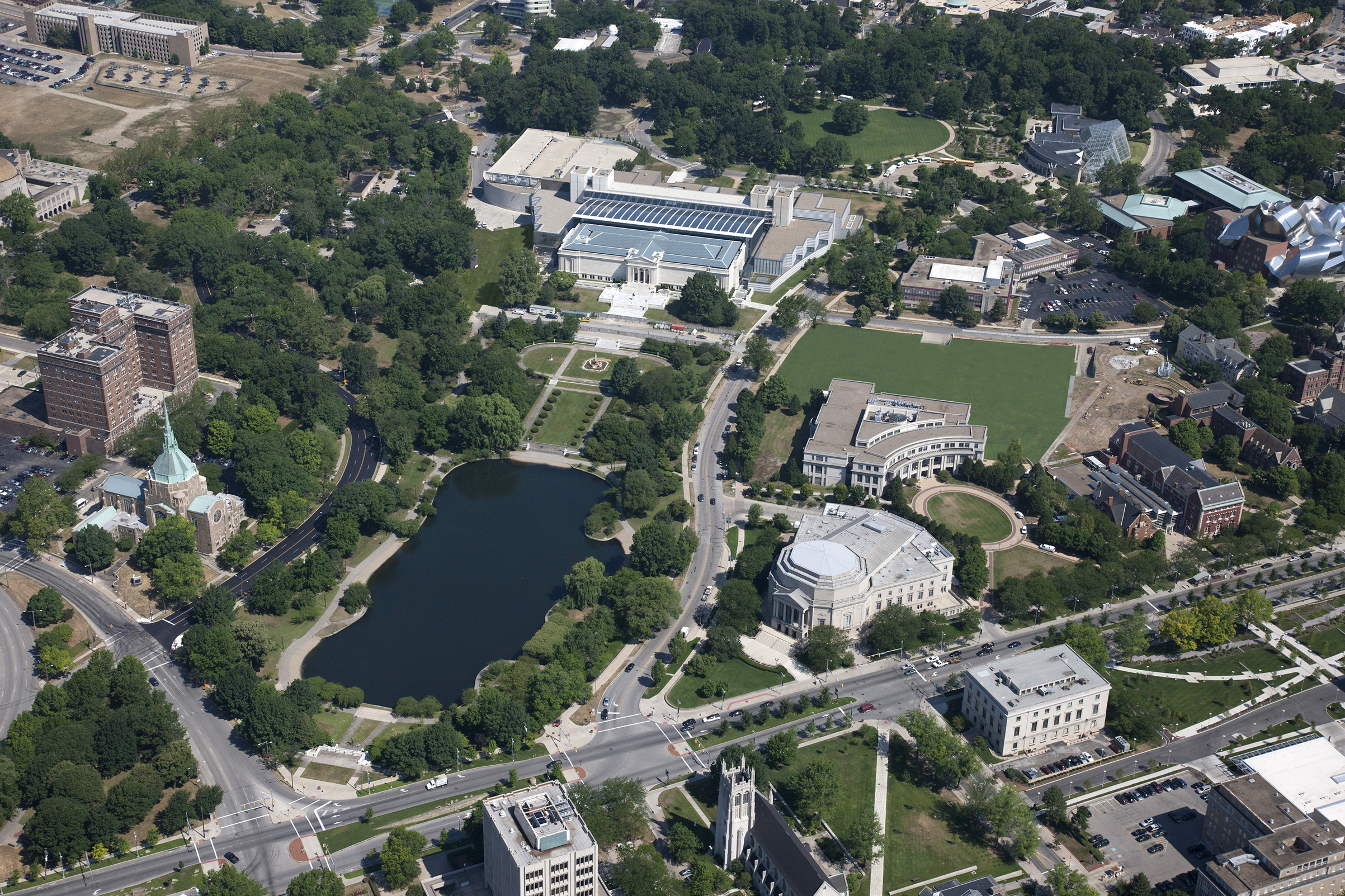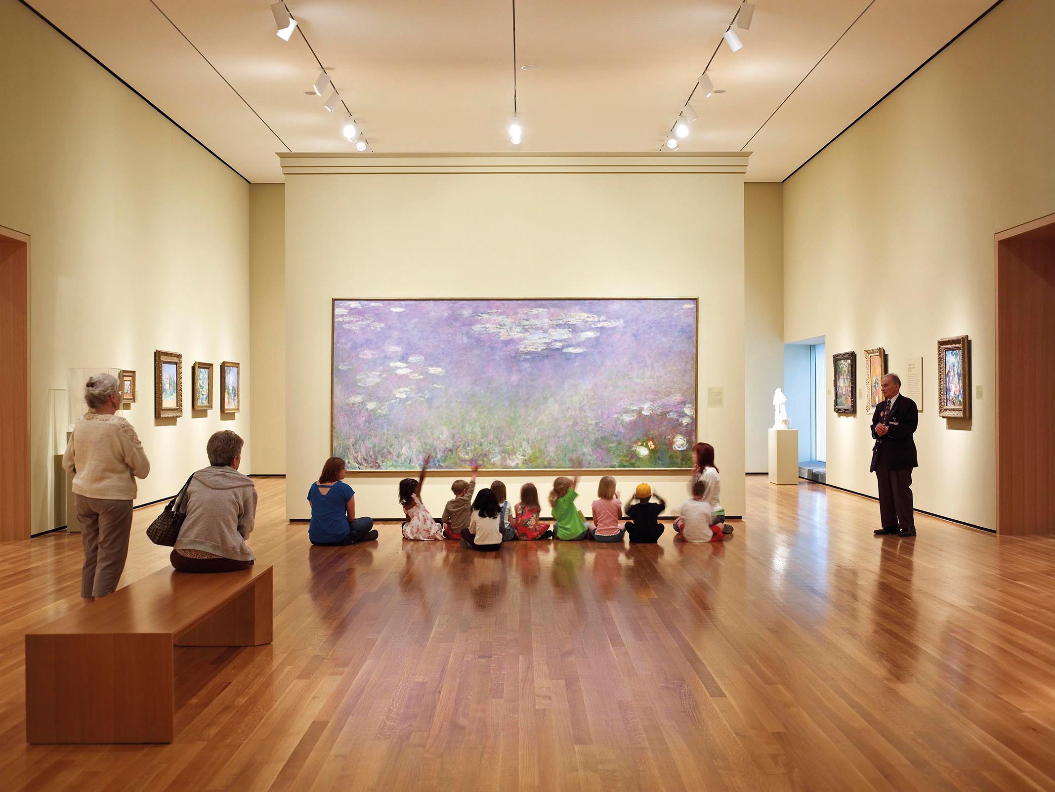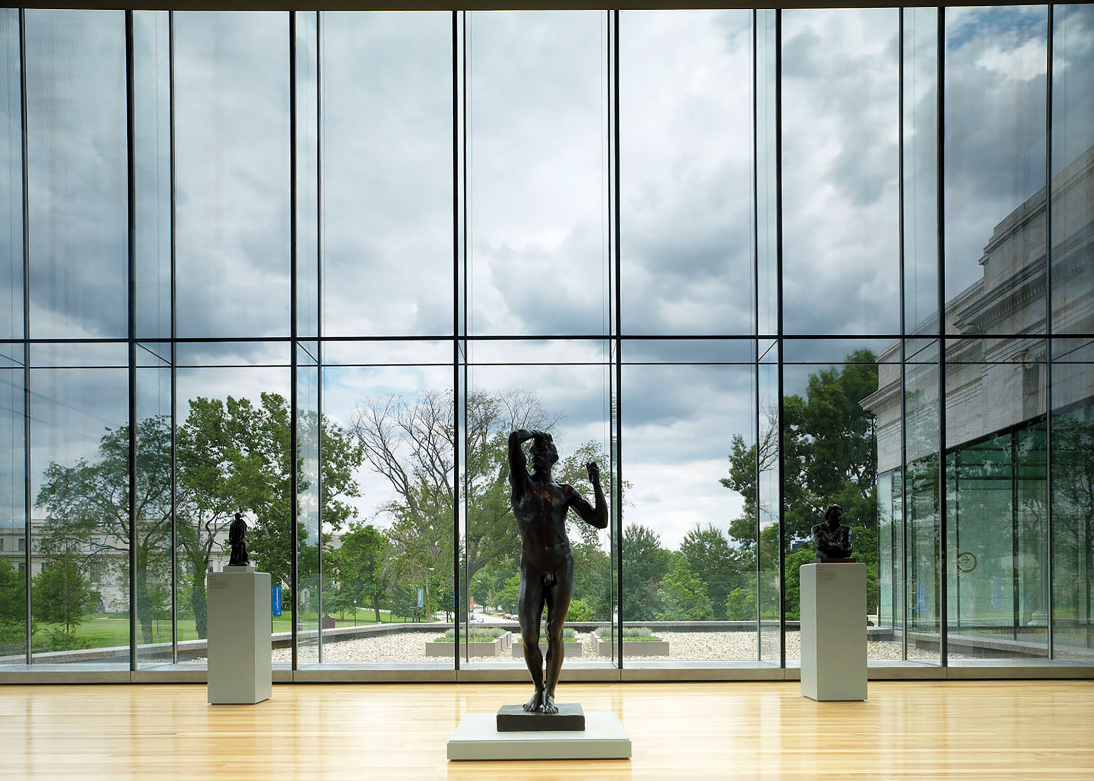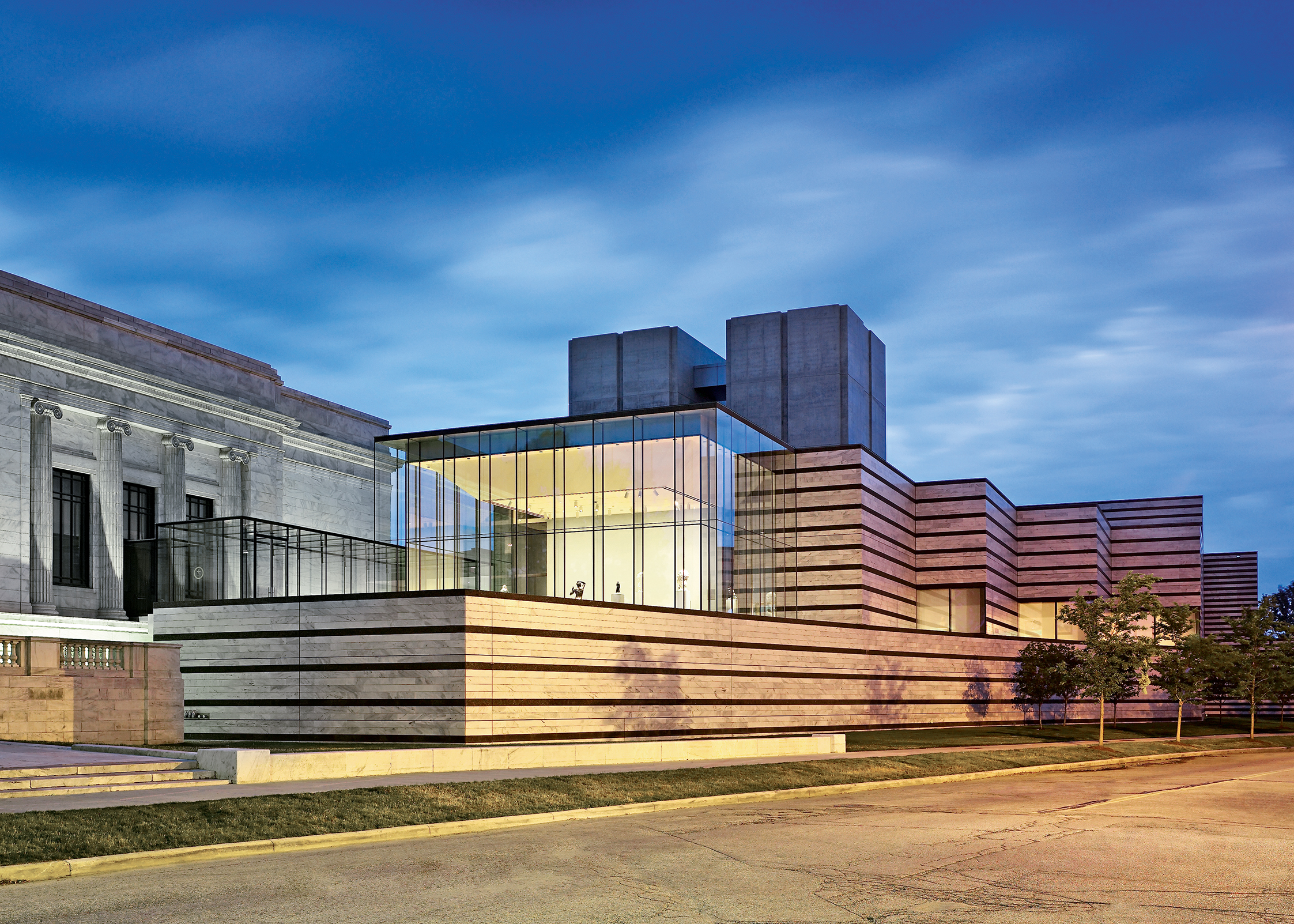 El museo nació en 1916 como un pabellón neoclásico de inspiración griega, diseñado por los arquitectos locales Hubbell y Benes. Situado en la cabecera de un parque pastoral, entre lagunas y senderos concebidos por los Olmsted Brothers, el edificio se presentaba como un gesto de orden y serenidad, un templo laico dedicado al arte en diálogo armónico con el paisaje. Sin embargo, el paso del tiempo fue alterando esa lógica inicial. Las ampliaciones sucesivas —entre ellas, una valiosa pero autónoma ala educativa proyectada por Marcel Breuer en 1973— terminaron por ocultar la claridad del plan original y transformaron el museo en una suerte de laberinto fragmentado, donde las circulaciones se superponían y el relato arquitectónico se volvía confuso.