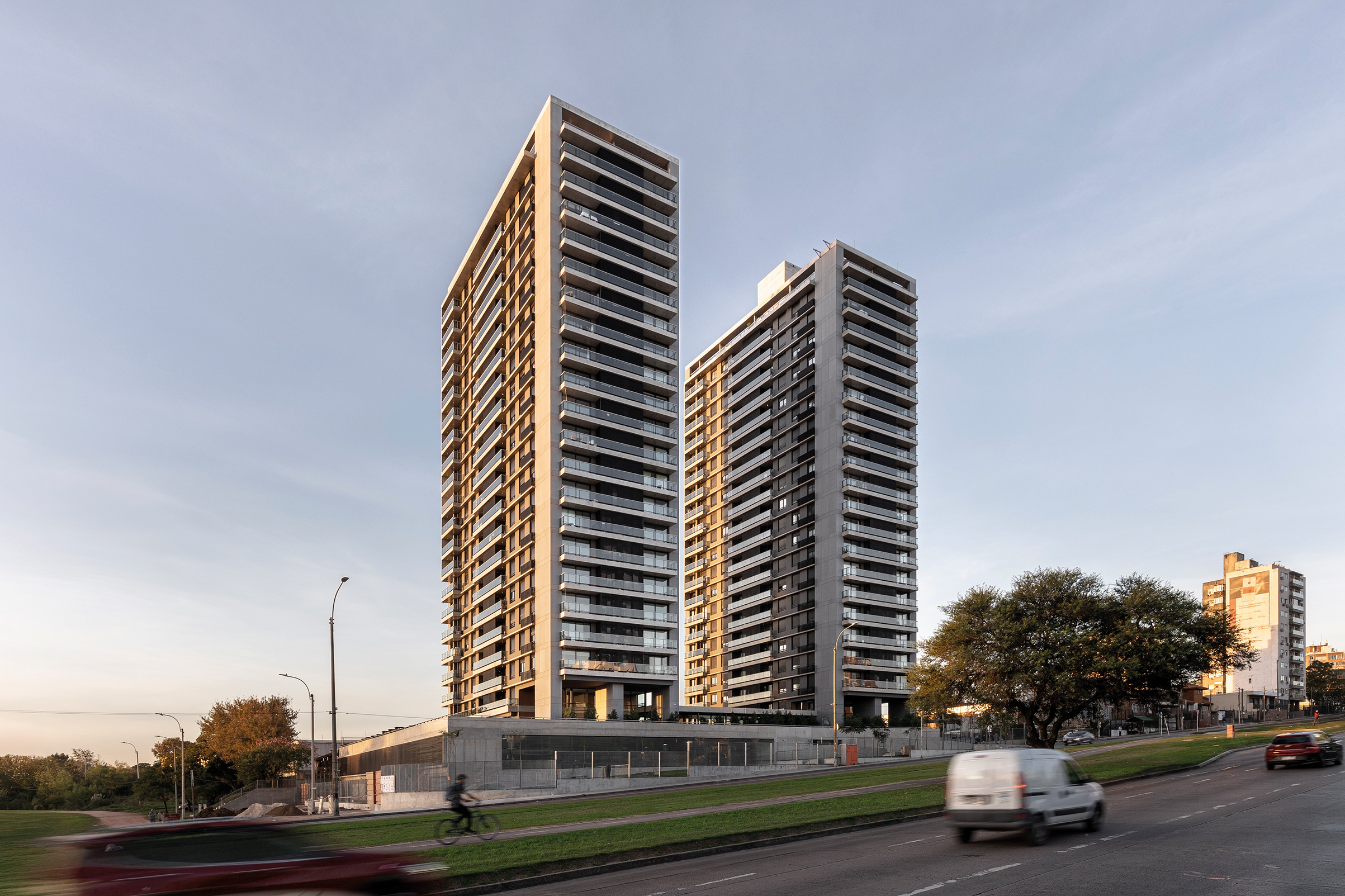 Al llegar desde el centro, la ciudad parece desplegarse como una página recién escrita: Avenida Italia corre recta y decidida hacia el Este, mientras la rambla Concepción del Uruguay, aún en proceso de consolidación, perfila una nueva costura entre el tejido urbano y el paisaje natural. En ese intersticio que Montevideo apenas empieza a narrar, emerge un proyecto con vocación de hito: dos torres que no solo se elevan, sino que articulan.