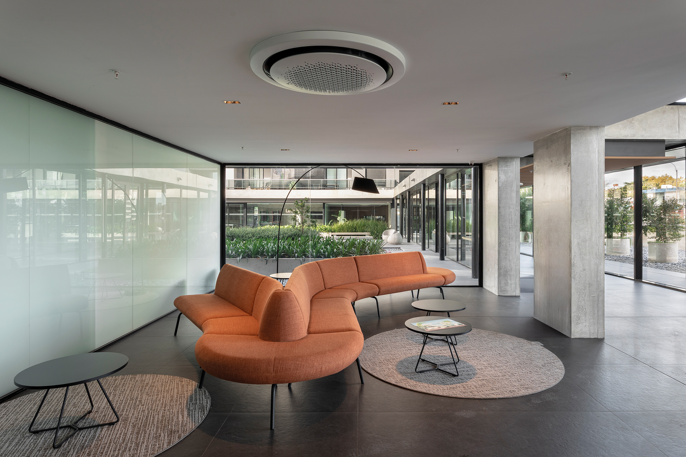 La topografía no es un dato que se ignora. Por el contrario, se transforma en estrategia de proyecto. El terreno, con sus desniveles hacia las tres calles, se resuelve mediante un podio base que absorbe las diferencias de altura y permite que el edificio repose sobre un plano continuo, un “kilim urbano” que alberga accesos, estacionamientos de cortesía, jardines, juegos, estaciones deportivas, huertas, y hasta un parque para mascotas. El edificio propone un modo de vida colectivo: no en clave de densidad, sino en clave de diversidad. La planta baja y las azoteas del piso 21 no son meros espacios residuales: son el soporte de una agenda compartida. Desde barbacoas y parrilleros en altura hasta salas de cowork, gimnasio, y una biblioteca de herramientas, el conjunto ofrece una lectura actualizada del “vivir juntos”, alineada con las demandas del habitar contemporáneo, donde el trabajo remoto, el esparcimiento doméstico y la socialización informal se entrelazan.