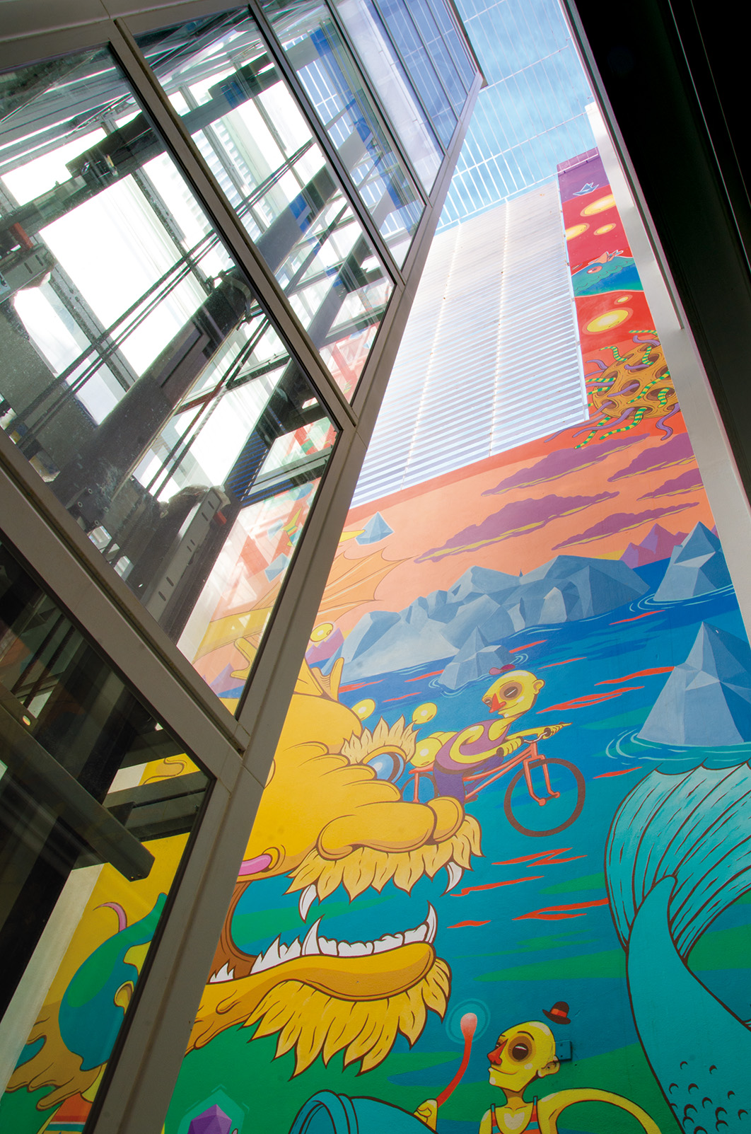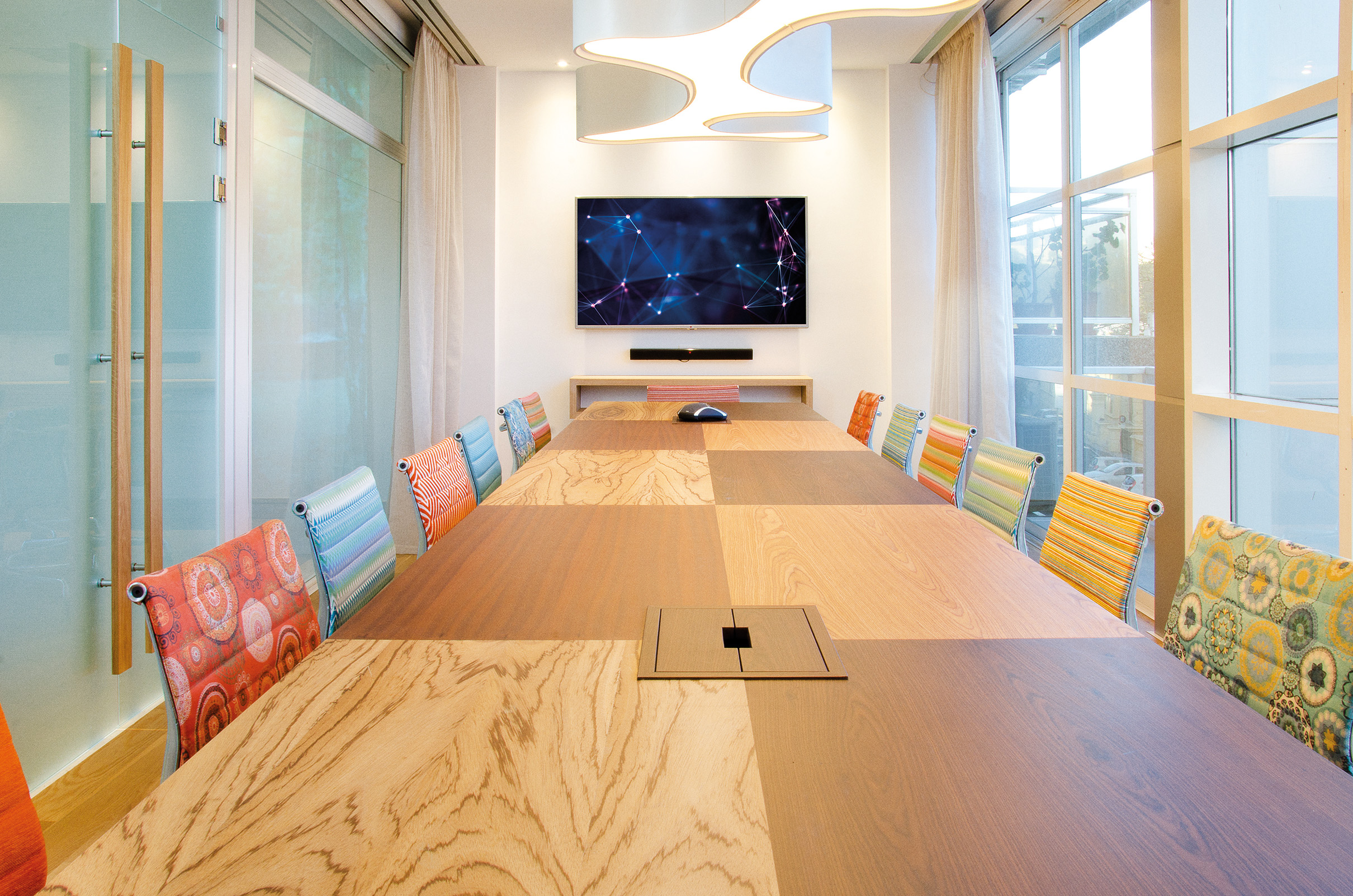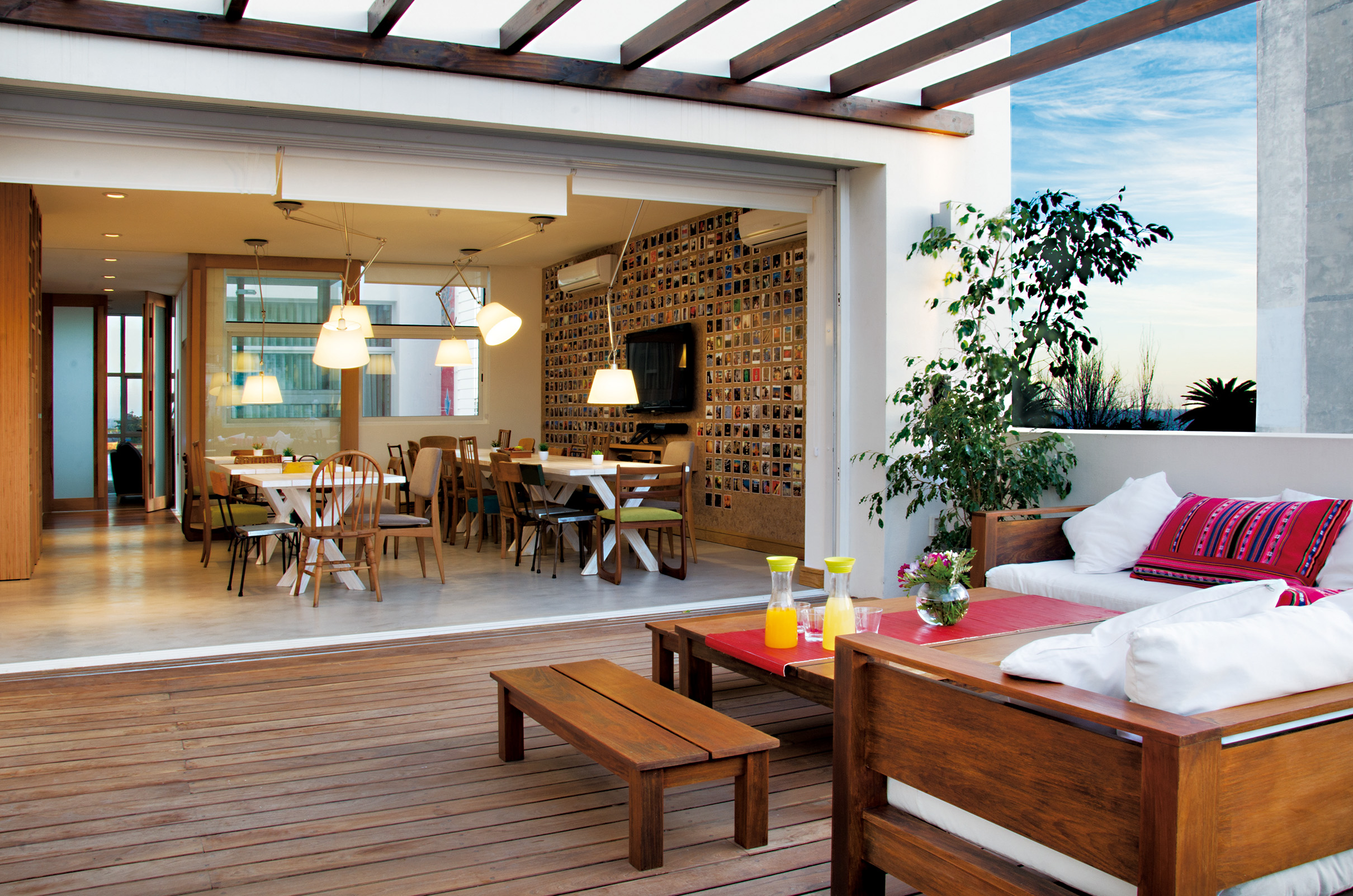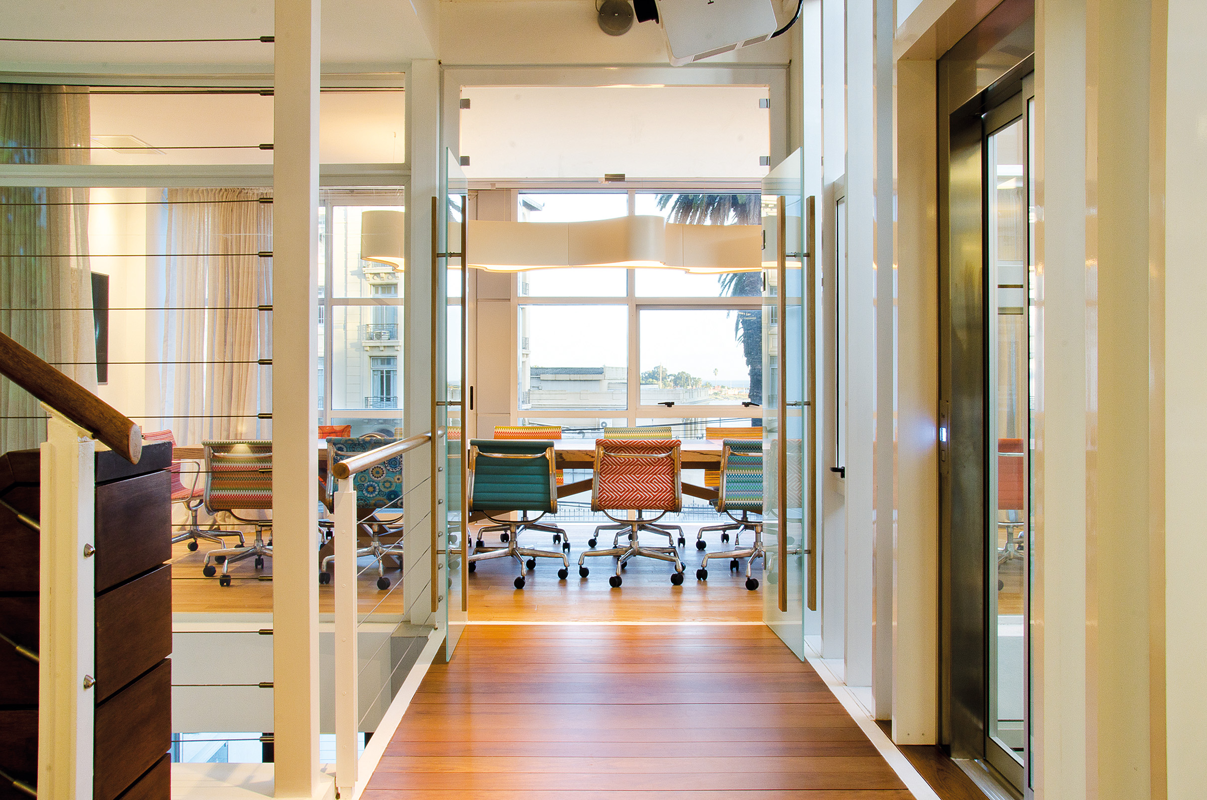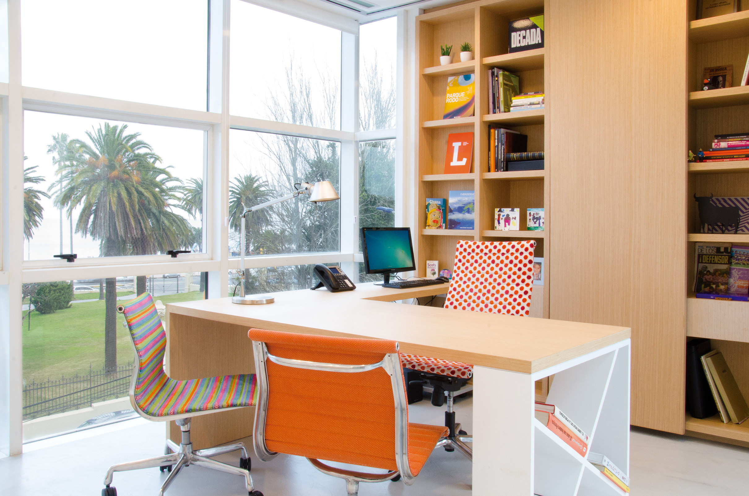 Desde el inicio, el proyecto contemplaba algo que pocos edificios en Montevideo contemplan: la posibilidad de crecer. Así, casi una década más tarde, en 2015, se concretó la ampliación. Dos niveles más, meticulosamente pensados, ejecutados por el mismo trío de arquitectas, ahora con la colaboración de Halinna Egaña. Lo que eran 385 metros se convirtieron en 700. Y la idea matriz –esa integración visual sin interferencias– se mantuvo como una partitura que, a pesar del tiempo, no había perdido ni una sola nota. La nueva etapa tuvo otra consigna: comunicar. Y así, los materiales, los colores, las texturas empezaron a hablar. Las mesas del Departamento de Creativos, apenas un plano sobre caballetes, evocaban el taller del artista más que la oficina del oficinista. Las paredes de corcho absorbían ideas antes que sonidos. Los paneles de whiteboard se deslizaban como ventanas del pensamiento. Y todo ese entorno –con lounge para reuniones informales, comedor ecléctico, terraza abierta con pérgola y parrillero incluido– operaba como un sistema vital, donde el ocio también era parte de la estrategia.