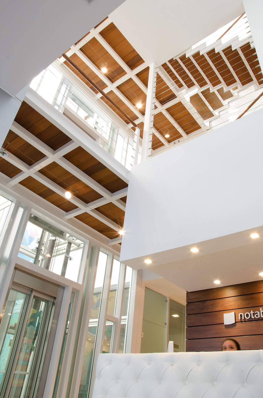 La joya de esta ampliación, sin embargo, fue un detalle técnico de precisión casi quirúrgica: un ascensor acristalado, suspendido en el vacío del patio central, que une los cuatro niveles sin interrumpir la visual, sin entorpecer el aire ni la luz. Pocas veces un gesto funcional logra ser, al mismo tiempo, una declaración estética. En Notable, la arquitectura no es solo envolvente: es también narrativa. Cuenta cómo se trabaja, cómo se piensa, cómo se vive en ese universo de campañas, ideas y urgencias. Y lo hace sin alardes, con la sobriedad de lo bien resuelto. Porque en definitiva –y en esto las arquitectas han sido implacables– lo que se construyó allí no fue solo un edificio, sino una forma de estar en el mundo. Un espacio donde la creatividad no necesita permiso para irrumpir, y donde los pasillos, los patios y los rincones pueden transformarse, de un instante a otro, en un fogonazo de intuición.