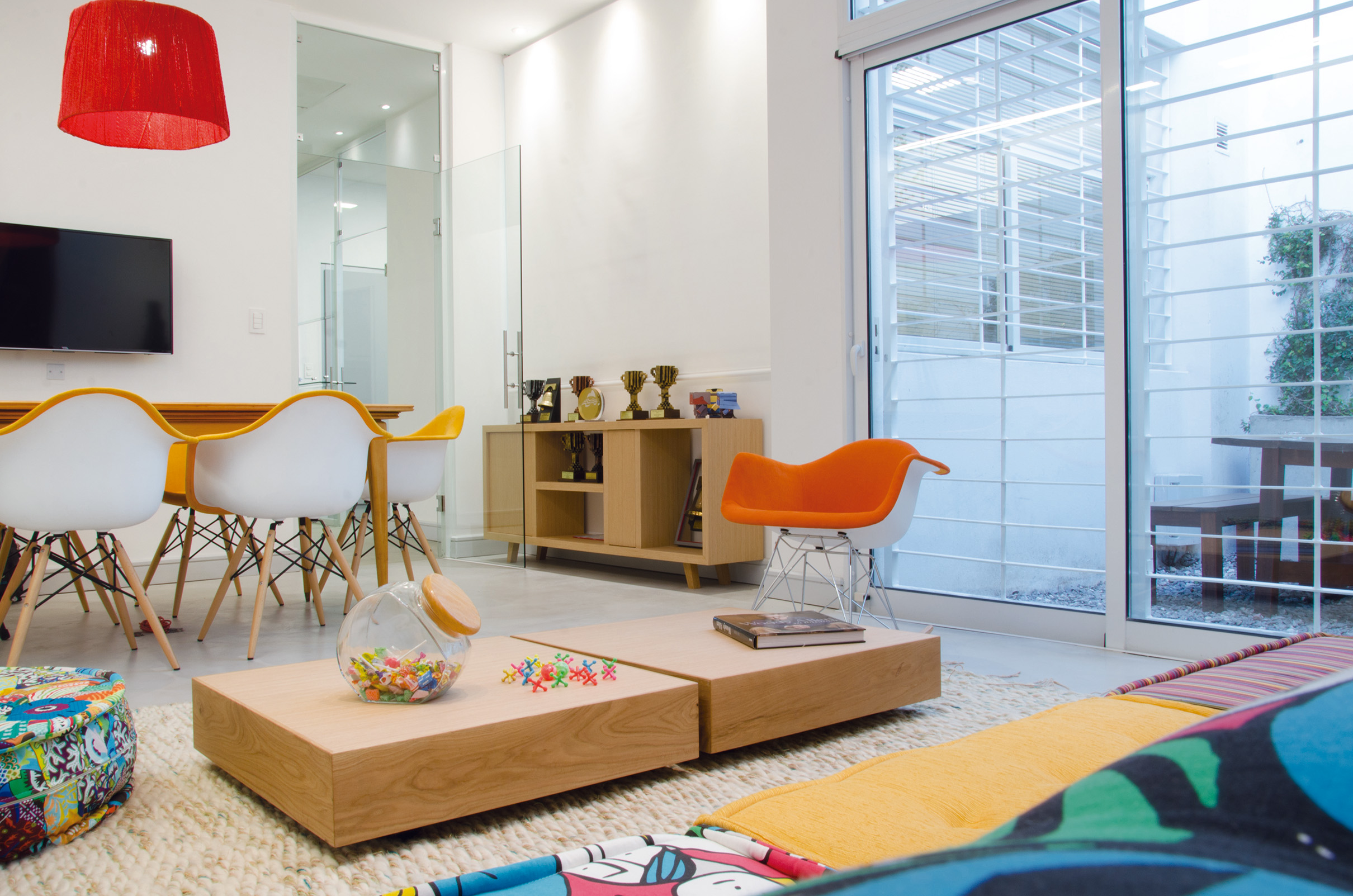 El terreno no facilitaba las cosas. Un padrón de apenas 8,65 metros de frente y 298 metros cuadrados de superficie, atrapado entre medianeras –esa cárcel vertical tan típicamente montevideana–, exigía una doble proeza: conquistar la luz para los espacios interiores y abrir, como si se tratara de una grieta luminosa, las visuales hacia el Río de la Plata y el majestuoso edificio sede del Mercosur. Era, desde todo punto de vista, una arquitectura contra las sombras. Las arquitectas respondieron con una propuesta blanca, limpia, contemporánea. No solo por una cuestión estética –aunque lo era también– sino como una forma de construir transparencia. La integración visual fue el principio rector: grandes planos vidriados, un patio de triple altura que funcionaba como pulmón luminoso, y una organización interior que permitía, desde cualquier rincón, sentirse parte de un todo. No se trataba de un espacio que obligaba a compartir, sino de uno que invitaba a la mirada y al vínculo, aún en la autonomía. Una metáfora, quizá, de esa manera colaborativa y transversal de trabajar que define a las agencias creativas cuando funcionan bien.