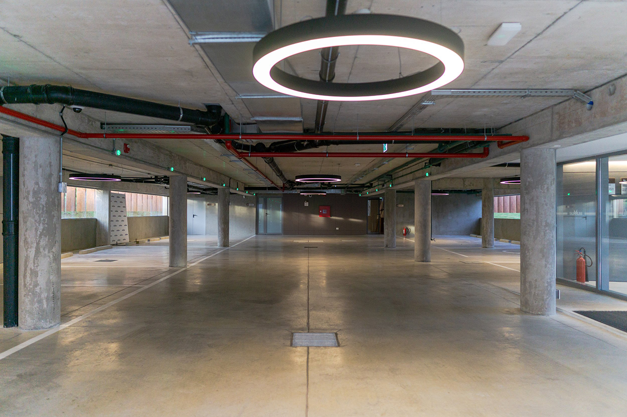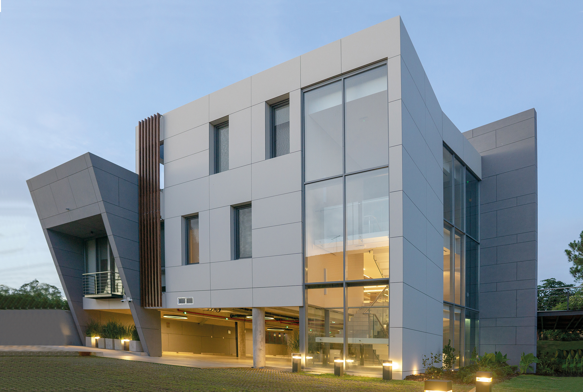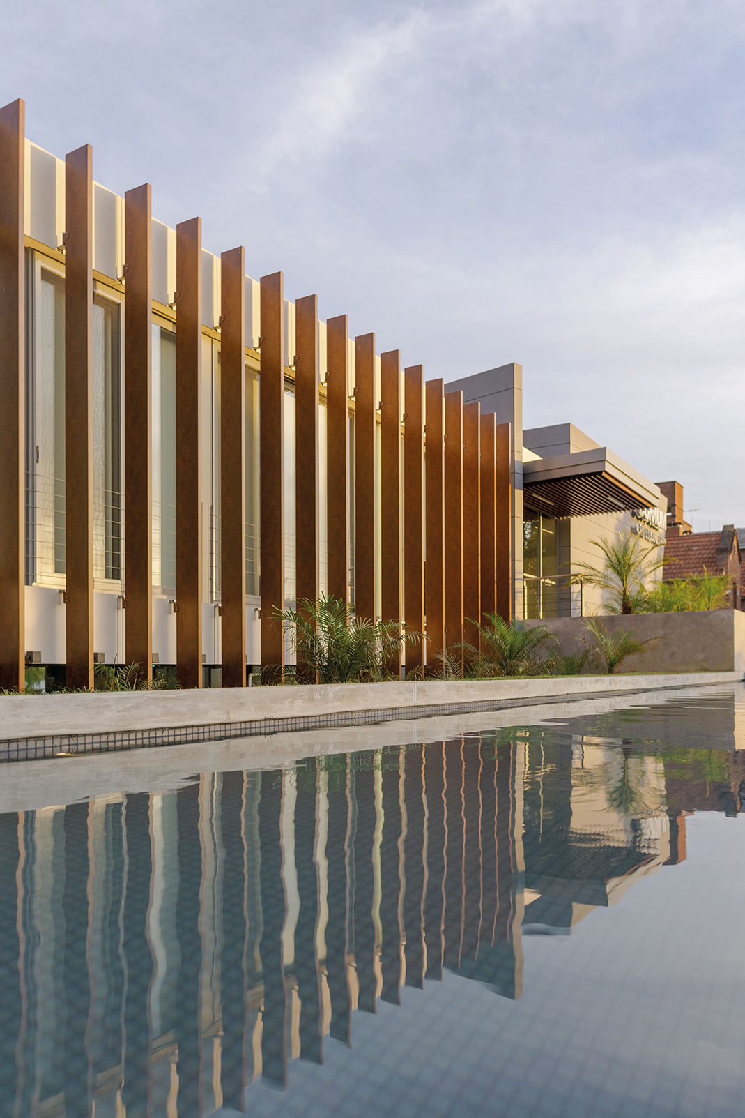 Las decisiones técnicas, rigurosas y previsionales, sostienen esa sensibilidad. La clínica fue concebida para crecer, para adaptarse, para incorporar tecnologías sin sobresaltos. Su esqueleto estructural y sus instalaciones anticipan lo que vendrá, mientras su piel —ventilada, aislada, protectora— modula la relación con el clima y el paso del tiempo. Los materiales elegidos hablan de durabilidad y dignidad: envejecen bien, sin exigir nada a cambio, como si el tiempo no les doliera. La sostenibilidad aquí no es un discurso añadido: es una lógica de base. Se construyó con procedimientos que respetan recursos, se evitó el desperdicio, se priorizó la eficiencia energética y la iluminación natural. Los parasoles verticales, discretos y firmes, tamizan la luz como persianas de un lenguaje que respira con inteligencia. Cada gesto técnico encuentra su correlato estético; cada decisión operativa se funde con la poética del lugar.