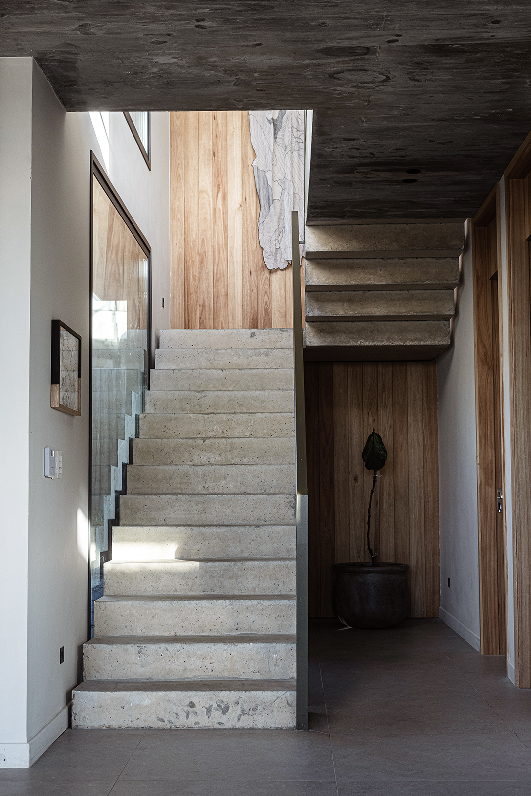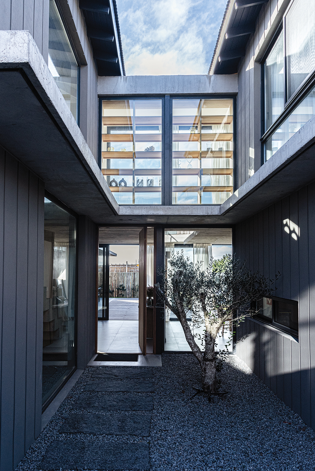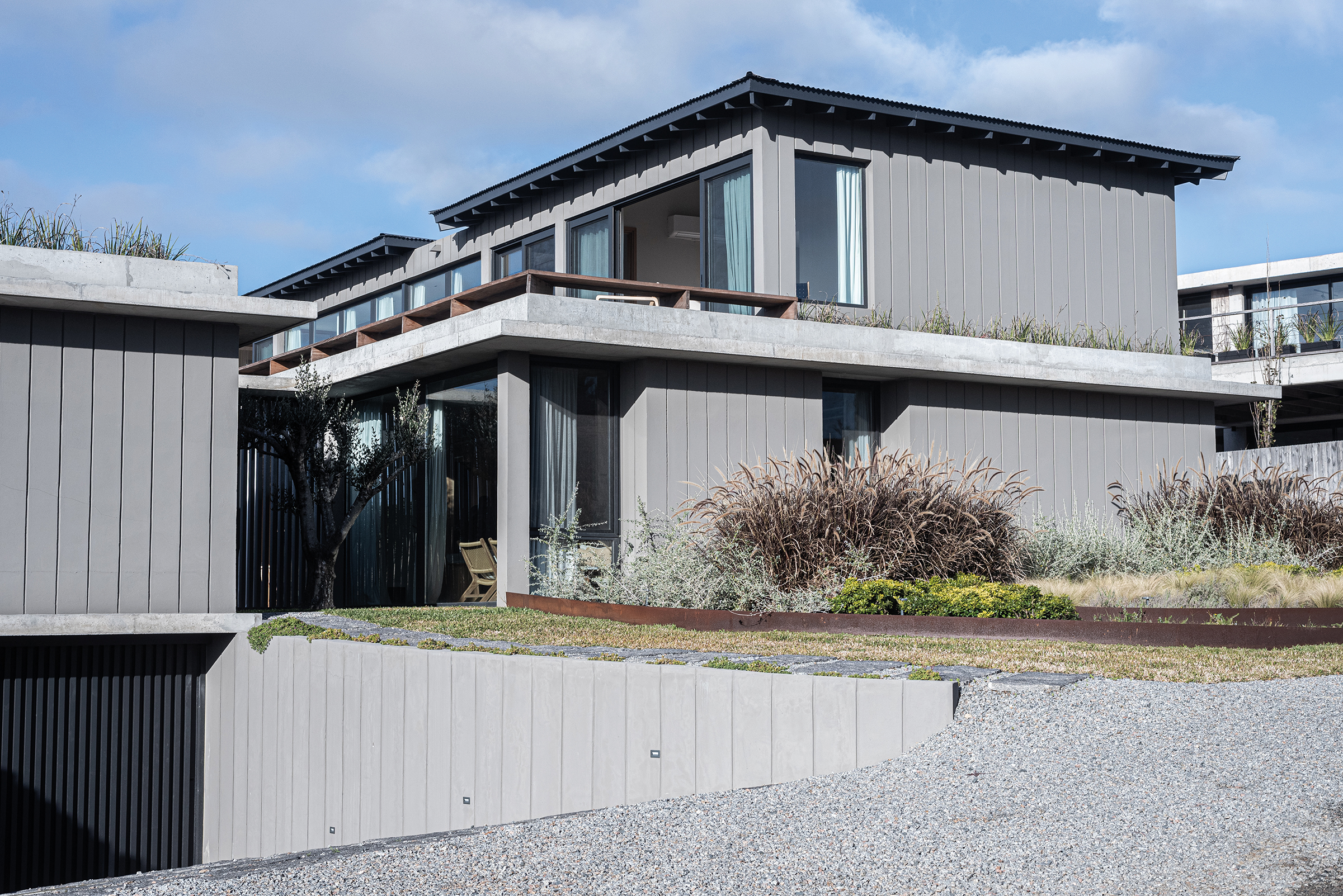 En el corazón de José Ignacio —ese paraje donde el viento salado trae recuerdos que uno nunca vivió—, se alza Casa Beluga, no como una conquista, sino como una confidencia susurrada al paisaje. No hay estridencias en su llegada, no hay fanfarrias de hormigón ni desafíos a la naturaleza. Lo que hay es respeto. Una estrategia de ocupación discreta, casi tímida, que se acomoda al terreno como lo haría un cuerpo cansado en una hamaca al atardecer. Esta obra, construida por GRUPO PLA, desde la primera mirada, descubre su voluntad de pertenencia. El trabajo conjunto con Juan y Gastón ha permitido cimentar una relación personal basada en la feliz tarea de aprender y crecer juntos en ese aprendizaje. Grupo Pla despliega sus intervenciones en rutinas de comunión, esto es de involucramiento pleno en los proyectos. La casa no impone: se insinúa. Los volúmenes se disponen con una precisión que no responde al capricho sino a la meditación. Hay un juego sutil de orientaciones, un modo de darle la espalda al mundo —a su ruido, a su vértigo— para abrirse solo al océano, al Atlántico inmenso que murmura al fondo como una voz materna. Allí, donde la vista se funde con el horizonte, la arquitectura se vuelve tenue, como si quisiera disolverse, como si su mayor ambición fuera volverse paisaje. La distribución del proyecto es una coreografía silenciosa. Un nivel se posa sobre otro, y bajo ambos, un subsuelo se deja tragar por la pendiente natural para esconder discretamente el estacionamiento, sin alardes ni cicatrices. La planta baja es un continuo de encuentros: el espacio social, el ámbito de servicio, las habitaciones para los huéspedes… todo fluye con una gracia que parece heredada del entorno. Afuera, decks, piscina, fogón y parrillero no son anexos, son extensiones del alma doméstica, formas de vivir el aire, el sol y el mar como parte de una misma 68 oración. Los patios, con sus olivos centenarios —testigos de otras eras, otras casas, quizás otros amores—, filtran la luz como se filtran los recuerdos: con ternura. Esa luz entra y modela los interiores, les da un ritmo propio, una respiración. En la planta alta, más recogida, más íntima, tres suites se asoman al paisaje como quien espía el mundo con asombro. Las aberturas, pensadas con inteligencia y poesía, establecen un diálogo continuo con el mar. Las terrazas, prolongaciones naturales del espacio interior, son lugares para pensar, para demorarse, para escuchar el silencio. La materialidad de la casa no es una elección técnica, sino un gesto de sensibilidad. Hormigón con textura pulida, madera sin afeites, cristales que no reflejan sino que enmarcan. Todo habla de una voluntad de autenticidad, de despojo elegante. Aleros profundos, galerías y espacios intermedios no son meros recursos: son respiraderos entre la arquitectura y el paisaje, umbrales entre la vida interior y el afuera perpetuo. Casa Beluga no busca protagonismo. No se exhibe. Quiere ser lo que el buen huésped es para el anfitrión: respetuosa, silenciosa, presente sin imponerse. Su forma no interrumpe el canto del viento ni la coreografía de las dunas. La vivienda se entrega al sitio como un ritual íntimo, como una carta de amor escrita en voz baja al lugar. Y así se vive: como un refugio sereno, donde el océano no solo se mira, sino que se escucha y se siente, definiendo —más allá del diseño— la verdadera experiencia de habitar.