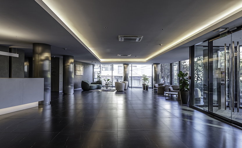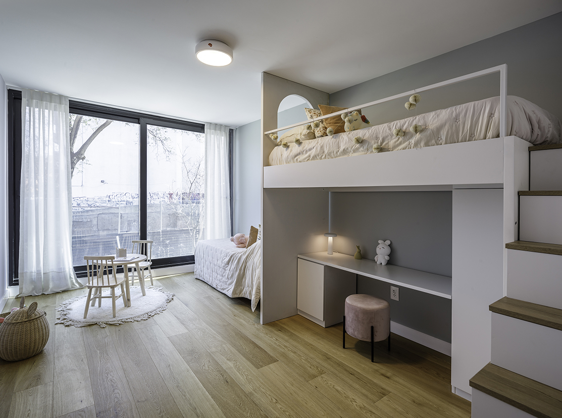 Todas las unidades presentan distribuciones amplias y abiertas, donde la luz natural se filtra a través de grandes ventanales, proyectando sombras que dan vida a los ambientes y resaltan los detalles arquitectónicos. La paleta cromática se inclina, en este caso, por tonos neutros y terrosos, generando una atmósfera de serenidad que acoge y envuelve al habitante.