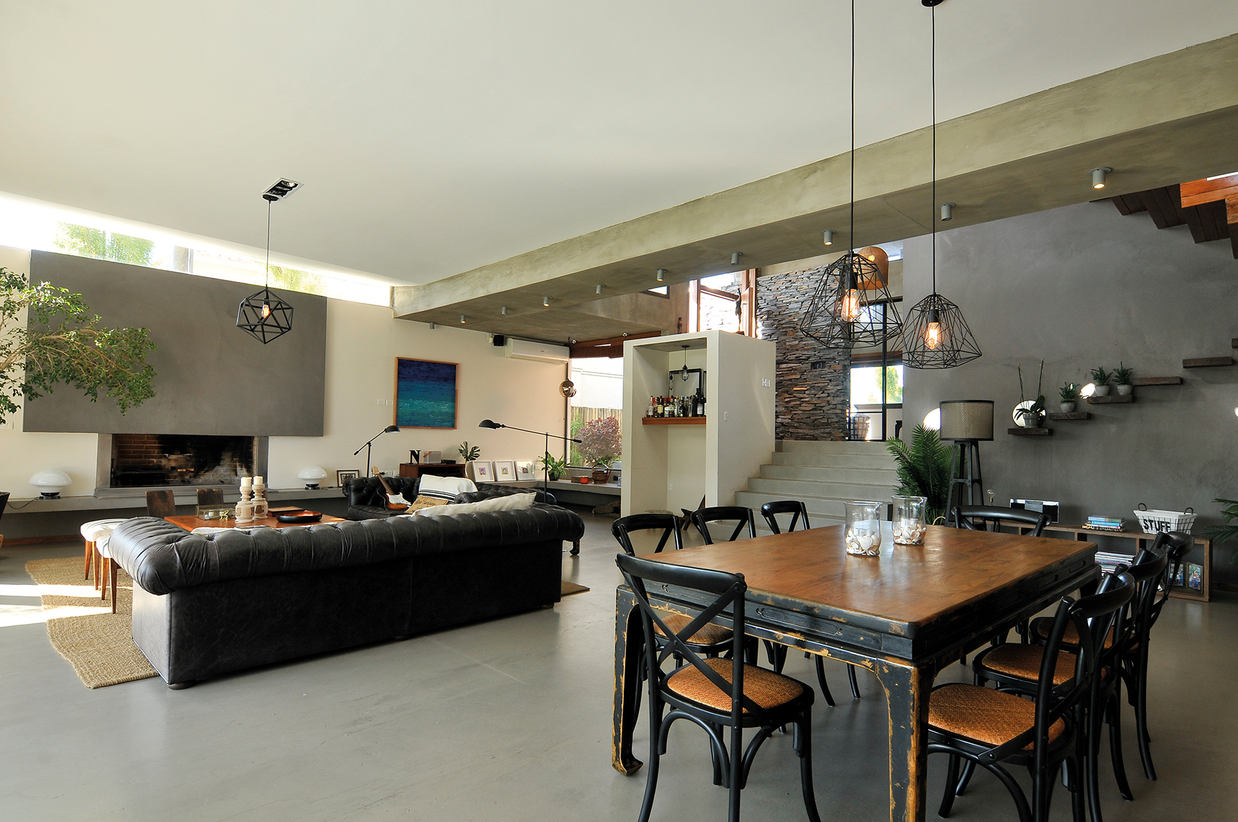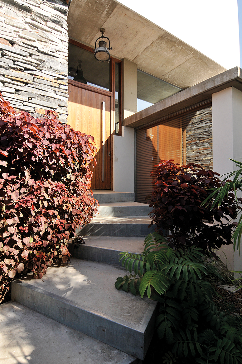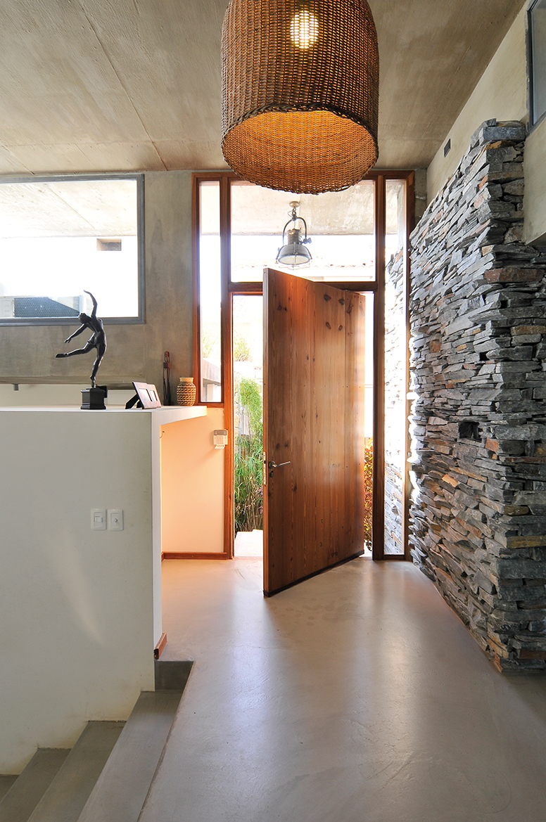 La casa utiliza alturas específicas para los diferentes espacios, lo que da origen a un dinámico intercambio de plantas que organiza los ambientes de acuerdo a su función. A lo externo, este sistema de niveles acentúa la propuesta volumétrica. Cada cuerpo utiliza materiales y texturas diferentes, apareciendo entonces piedras, revoques, maderas y hormigón, y tramando un diseño que yace en las proximidades de lo artístico. Hay en el uso de los materiales un original empleo de elementos geométricos que se plasma en el trazado de formas y planos, una característica que resulta ser muy propia en la obra de Scheweizer.