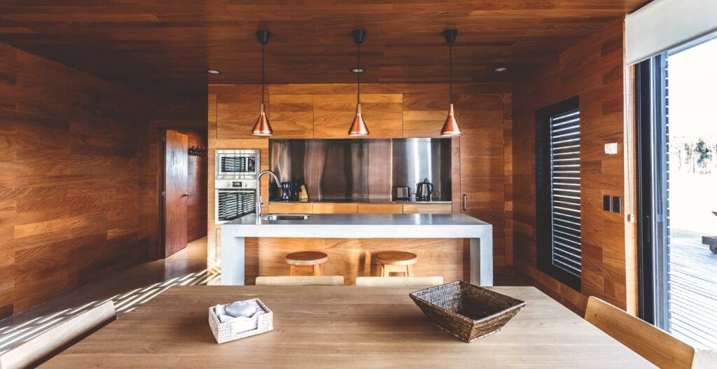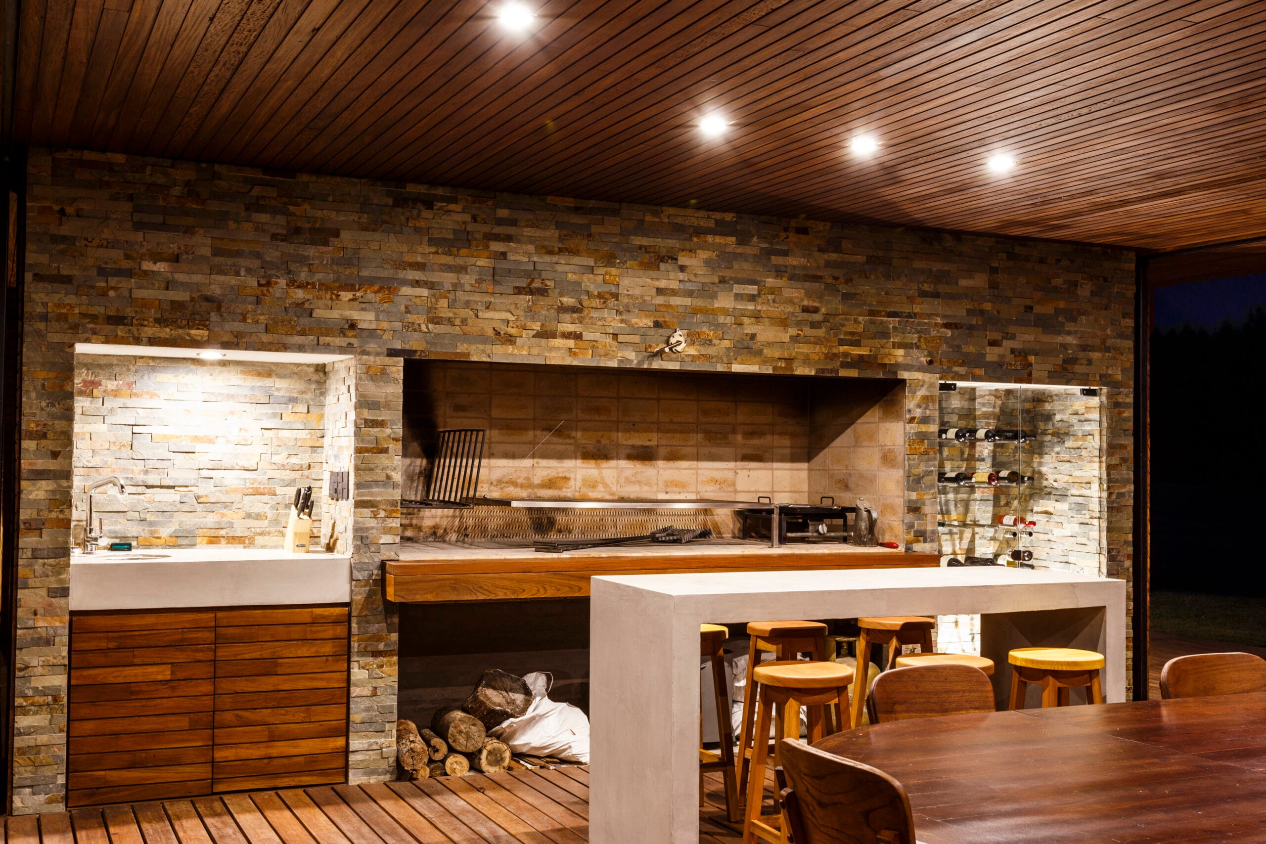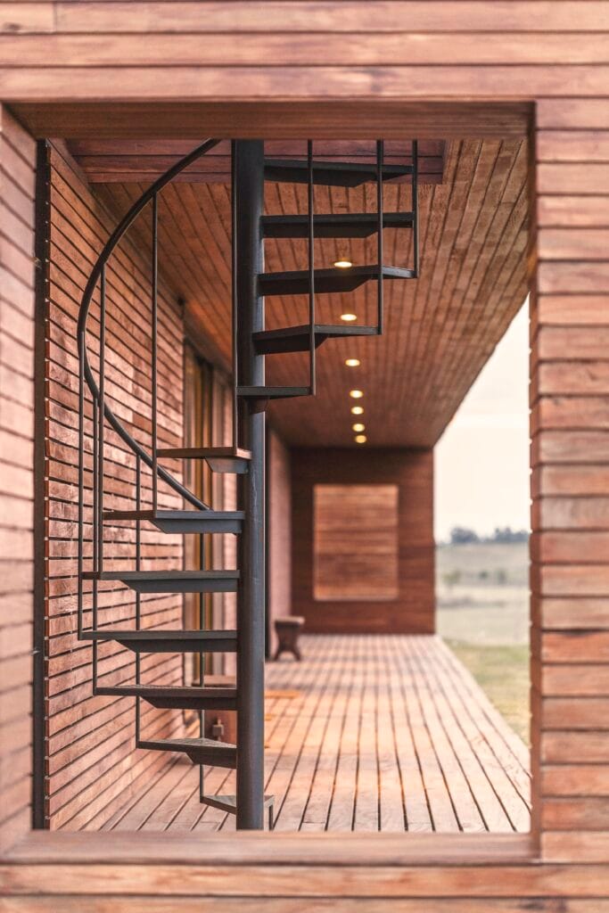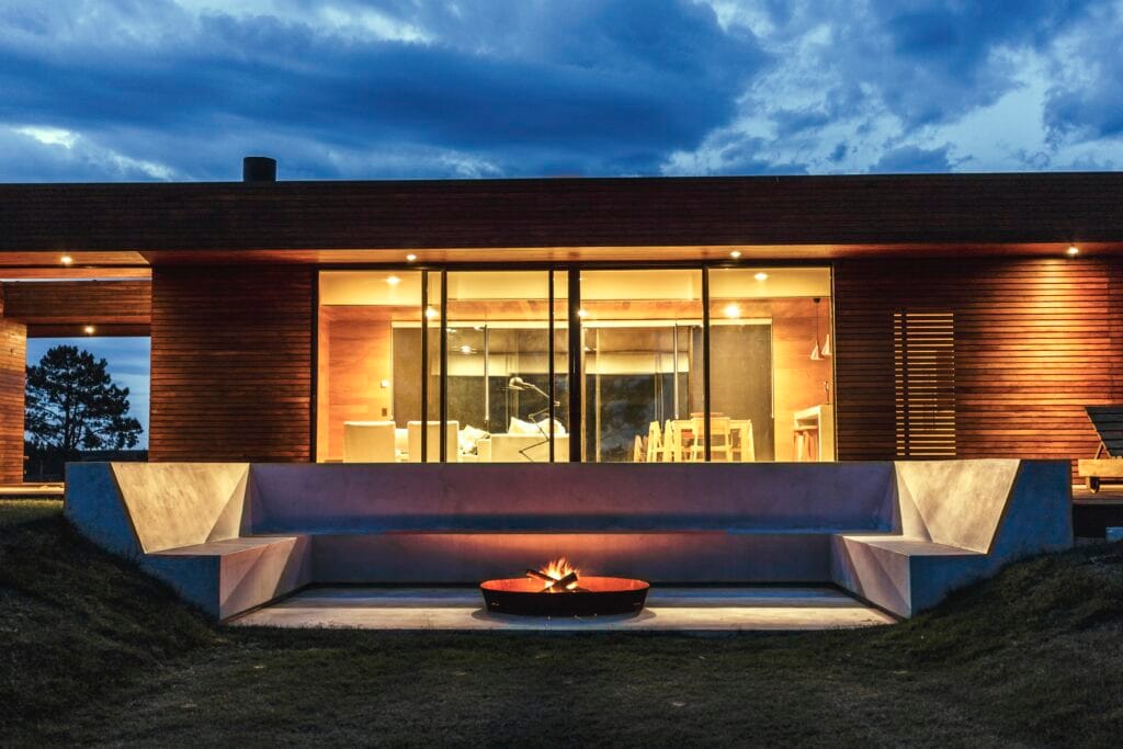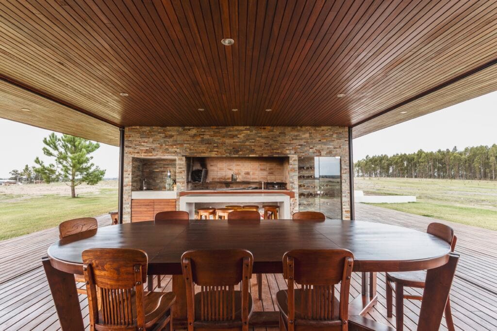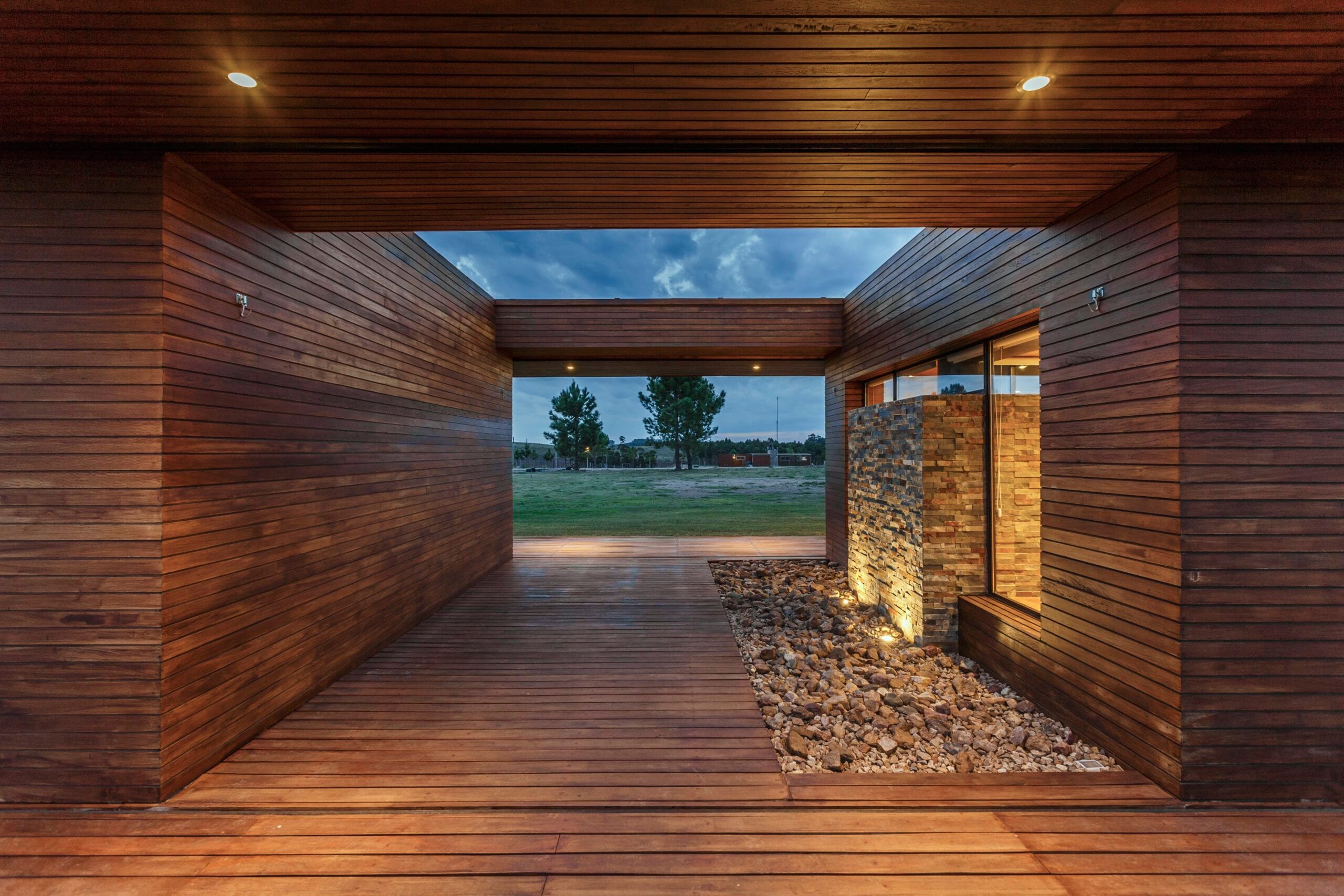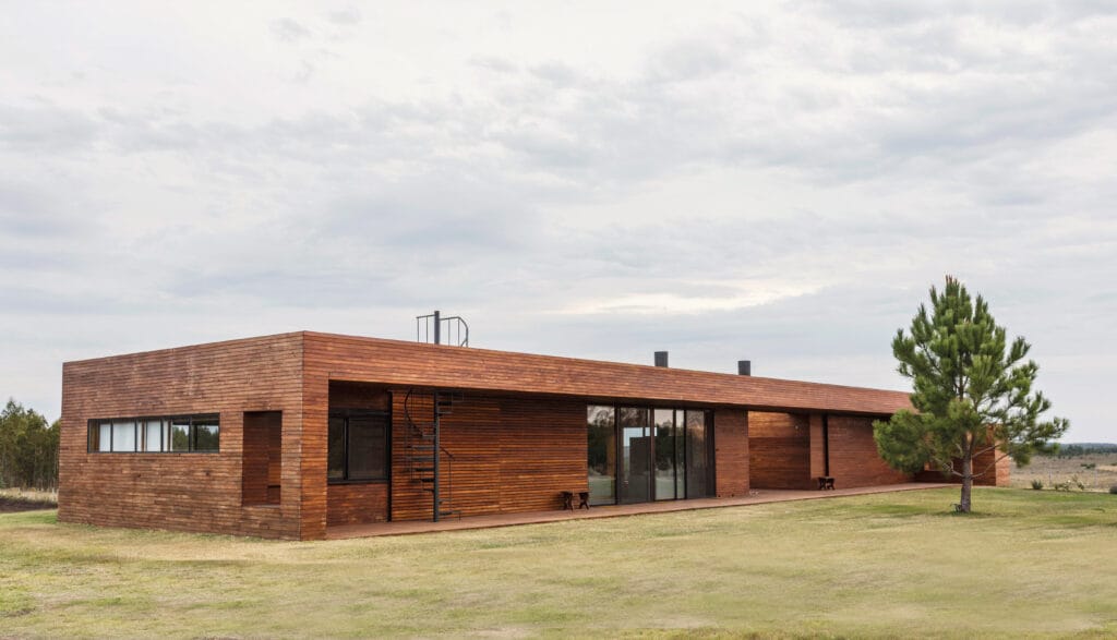 La casa diseñada y construida por el estudio del arquitecto Tripodi se desprende de la geografía del campo uruguayo de manera casi imperceptible. El diseño comenzó a gestarse a partir de las variables climatológicas, como la orientación, la temperatura y los vientos. La geografía y el estudio del terreno marcaron también sus límites, gestando las bases para que posteriormente el estudio en esa ecuación agregara su propia percepción de lo que la disciplina de la arquitectura debería hacer allí. Y la solución de la cual termina de desarrollarse el proyecto surge del vínculo y cuidado del entorno natural. Como decía al comienzo, la casa crece del entorno, imita la geografía y se camufla entre verdes y rocas.