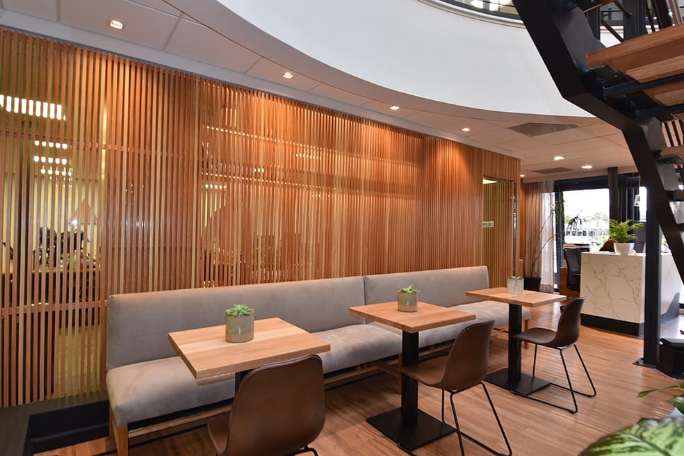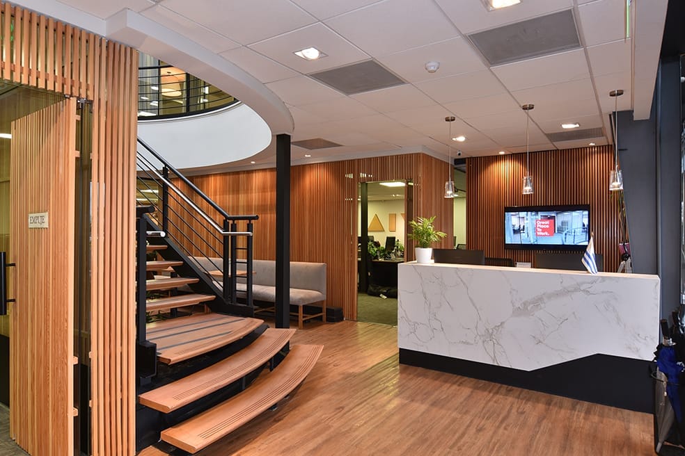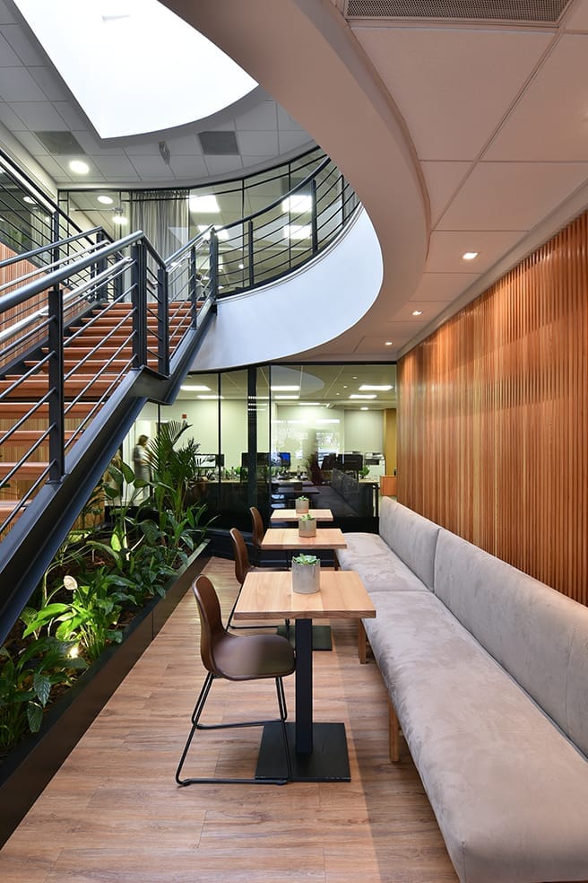 El estudio llevó a cabo el proyecto y la dirección del interior de las oficinas de AIVA en Zonamérica. Para el mismo se estudió el ritmo y la forma de trabajo de las oficinas para ambientar cada uno de los locales, se abarco toda la planta, desde el comedor hasta la sala de reuniones, oficinas, servicios y corredores. Los dos principales ejes de trabajo para las oficinas de Aiva, fueron la iluminación y el verde. Por un lado, incorporar un buen diseño lumínico se consideró muy importante para fomentar un cómodo ambiente de trabajo. Al mismo tiempo que integrar espacios verdes ya que estos ayudan a generar ambientes más distendidos y equilibrados.