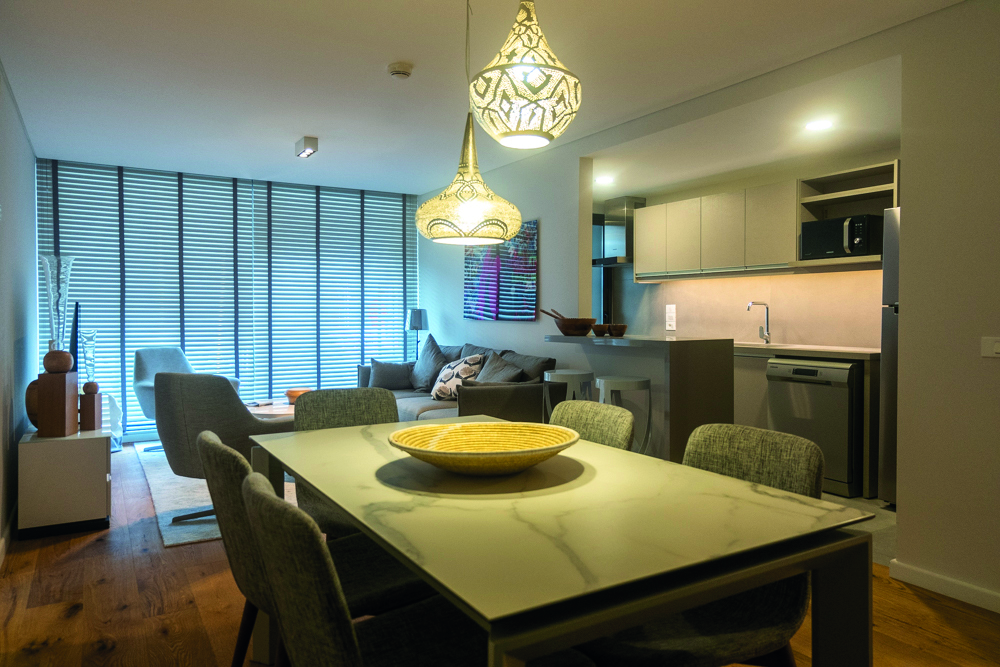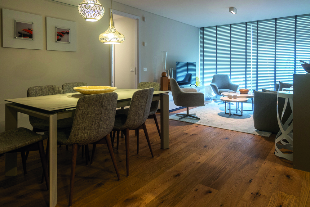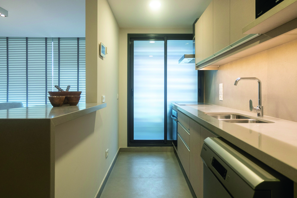 Los departamentos todos sus ambientes con ventanales al piso, ampliando el espacio interior de los mismos más allá de sus límites e integrando las terrazas a la vida cotidiana. Las terminaciones fueron pensadas y ejecutadas acorde a la jerarquía del proyecto, pisos de madera, aberturas con vidrios DVH, grifería Hansgrohe, porcelanatos Portobello y cocinas Johnson equipadas con electrodomésticos Samsung, son algunos de los rubros más destacados.