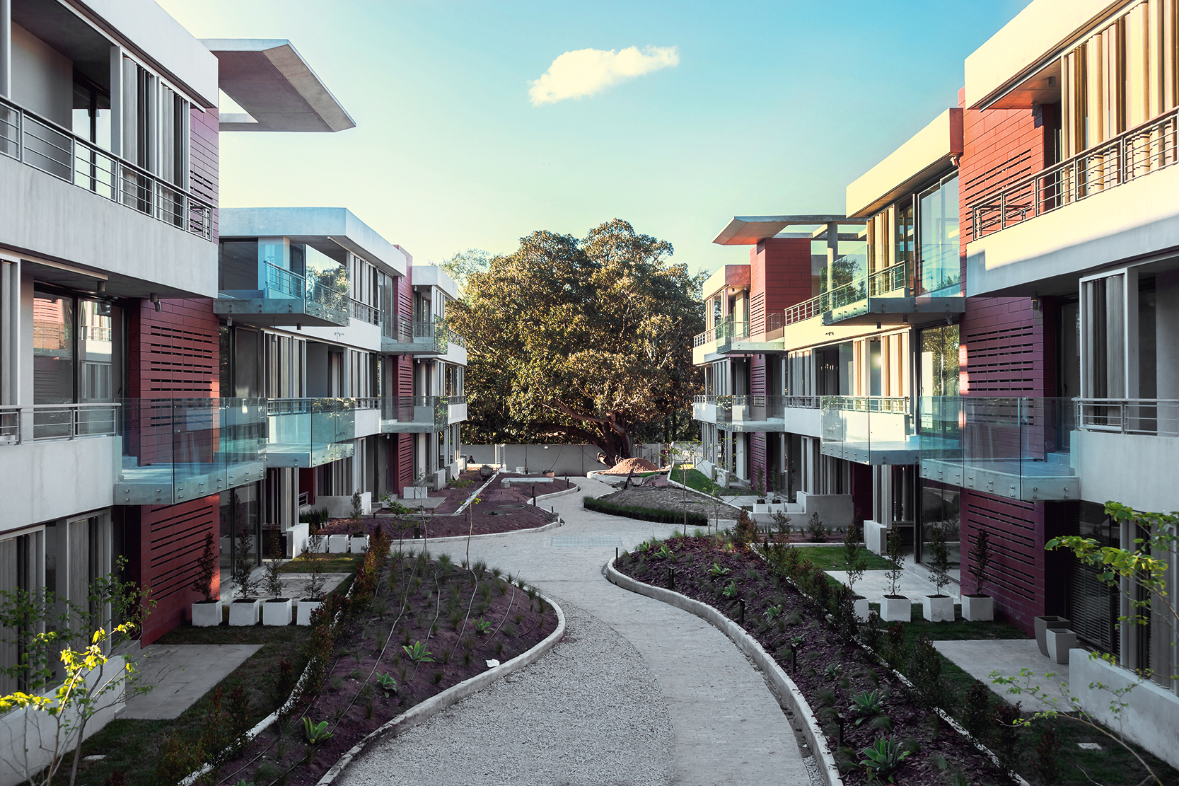 Es que Araucaria redefine el concepto de apartamentos en Carrasco, integrando el verde y la luz en todos los espacios. La composición de los edificios y la espacialidad dinámica de los volúmenes se integra con el verde del conjunto y del entorno. Los juegos de luces de los espacios de circulación centrales, con una arquitectura desarrollada a una escala humana propia, generan un ambiente moderno, dinámico y armónico que integra todos los niveles del proyecto.