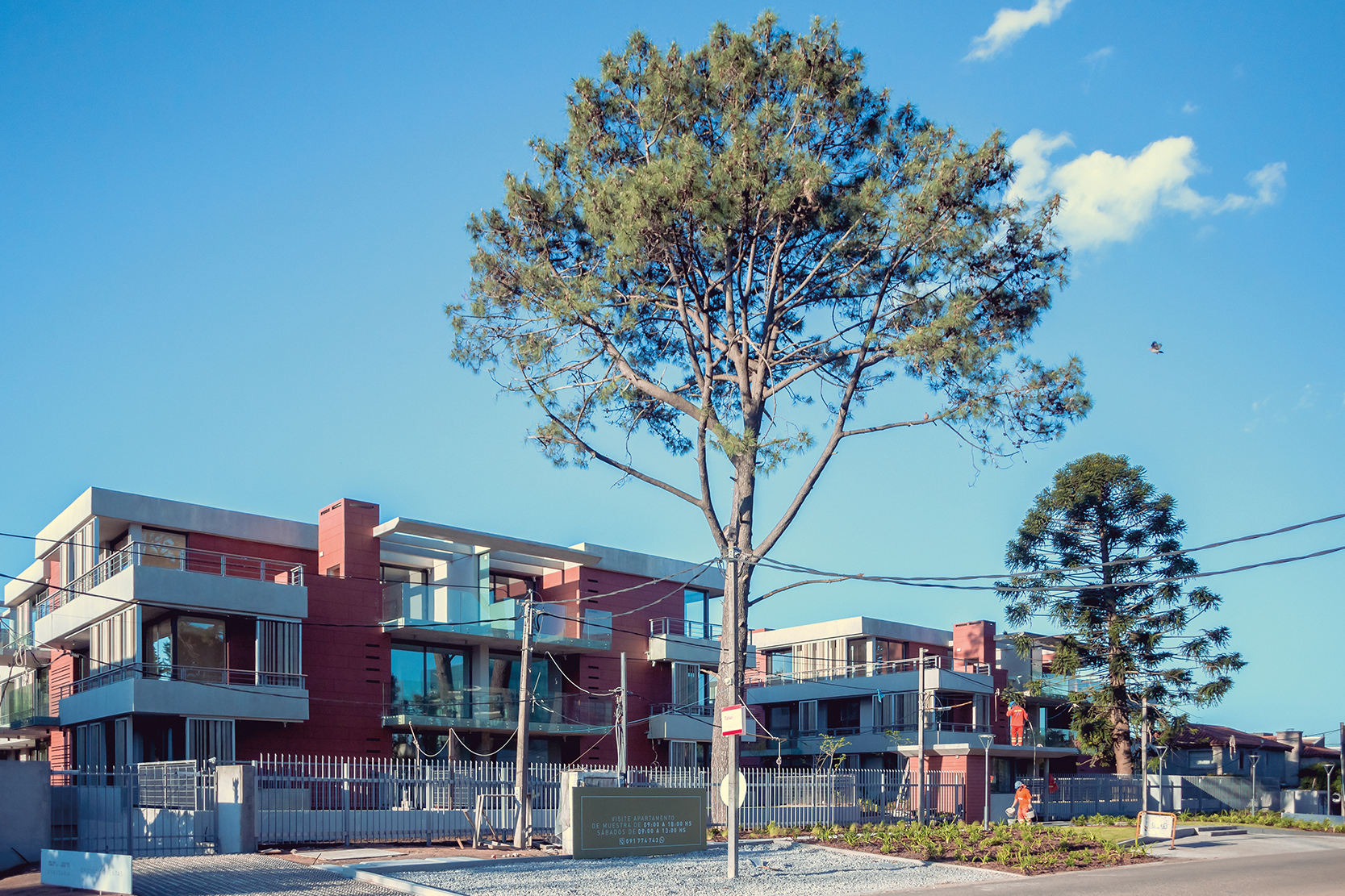 El proyecto se desarrolla en un excepcional predio de más de 5000 m2 sobre la calle Máximo Tajes a continuación de Jardines de Carrasco. Toma su nombre de la gran conífera de esta especie que se encuentra en el frente del predio. Esta esplendida Araucaria no es el único árbol existente que se conservó, en la parte posterior, al final del espacio verde central se encuentra un enorme y antiguo Ficus Elástica o Gomero. Ambos arboles con su exuberancia complementan los amplios espacios verdes y jardines del conjunto especialmente diseñados para complementar la arquitectura.