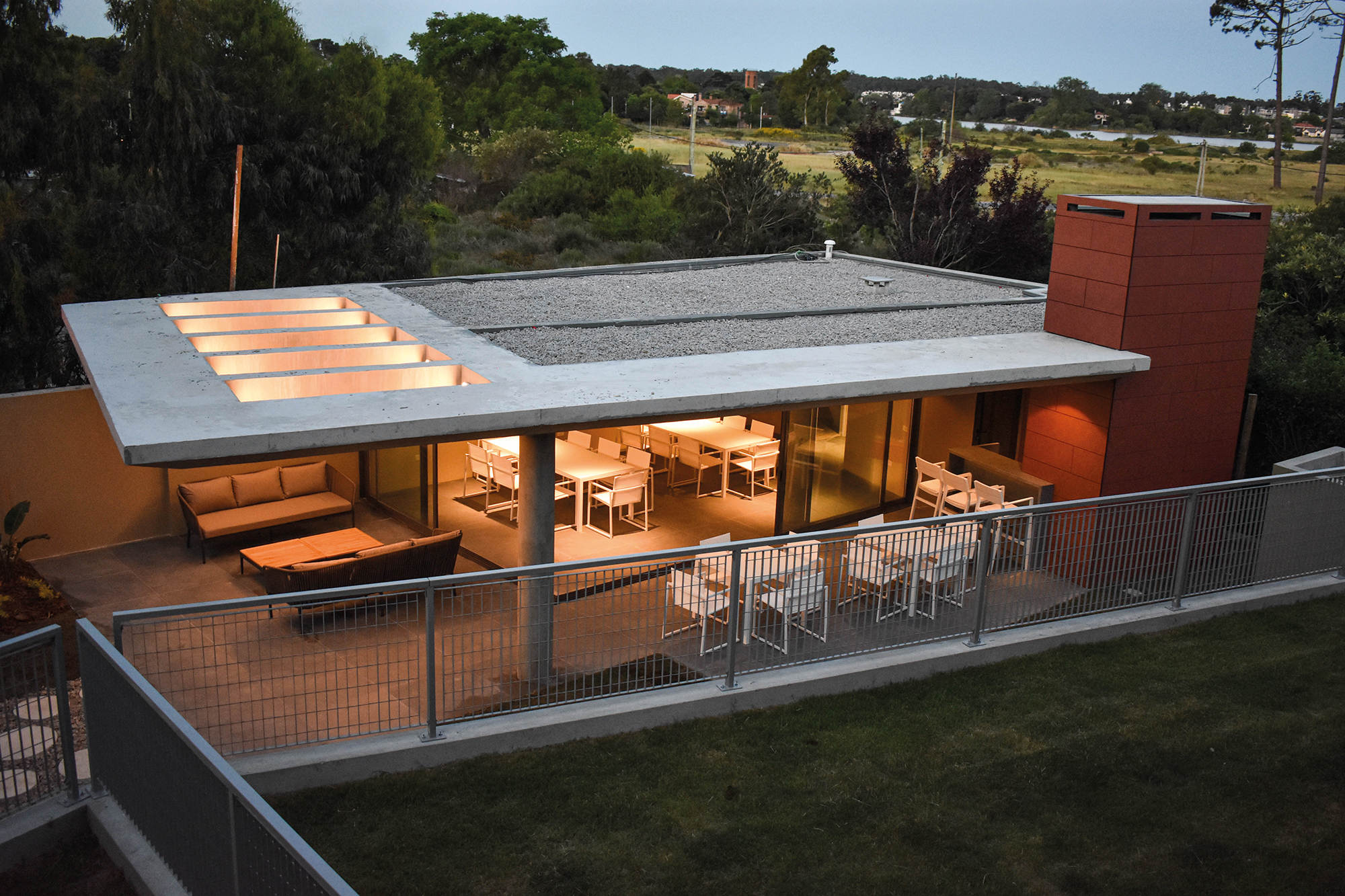 Los Lounge abiertos en el roof área de cada edificio, tienen una amplia vista sobre el verde de Jardines de Carrasco y los lagos de Parque de Miramar. Cada uno está equipado con un parrillero con barra, baño social y equipamiento de muebles para un uso completo del lugar.