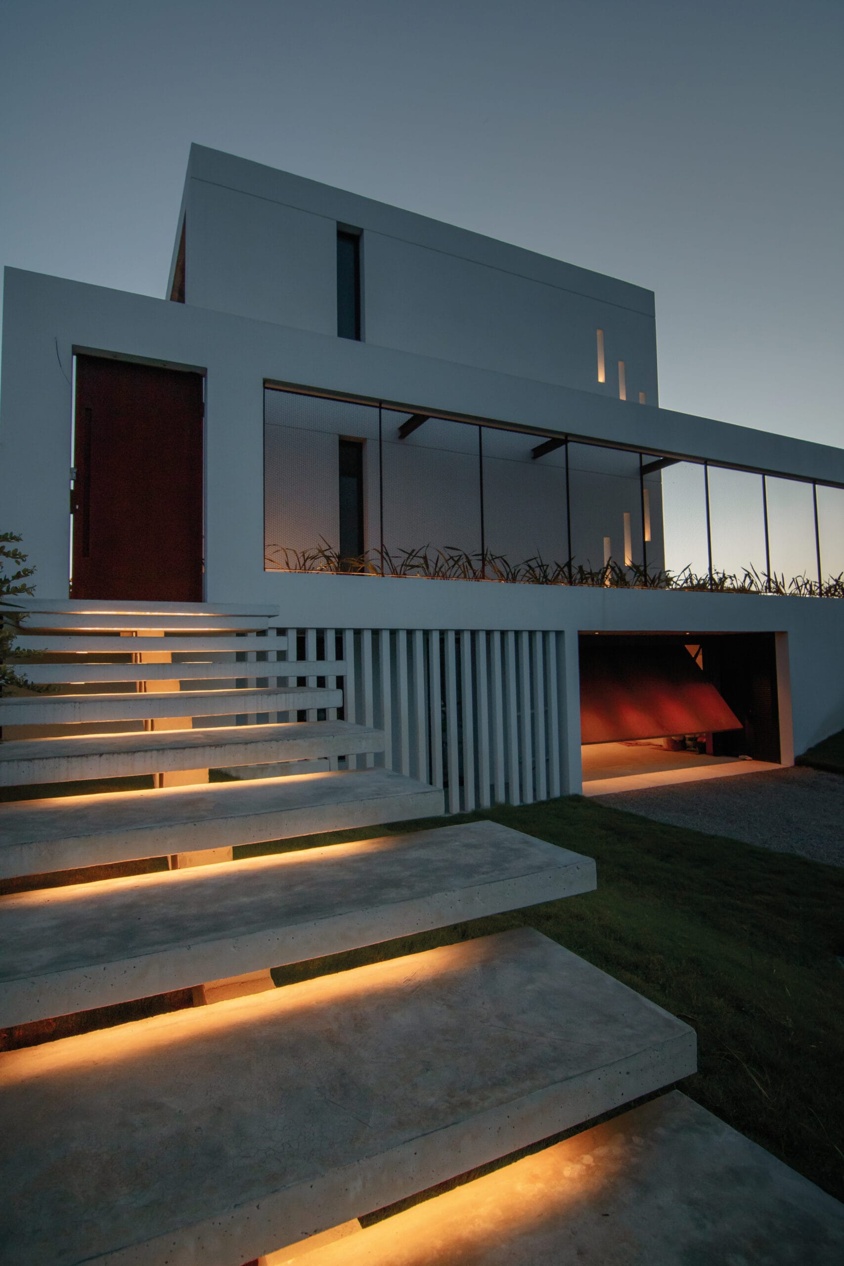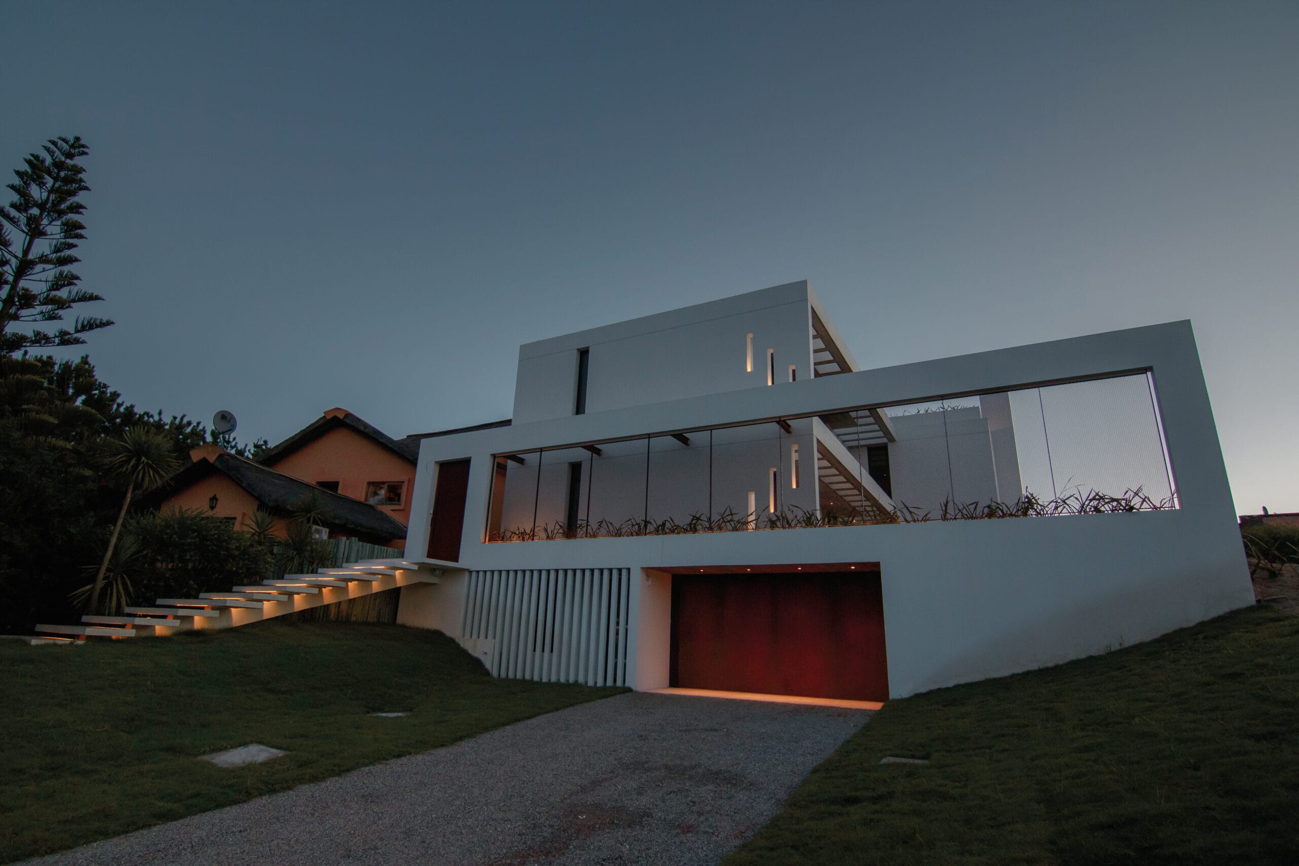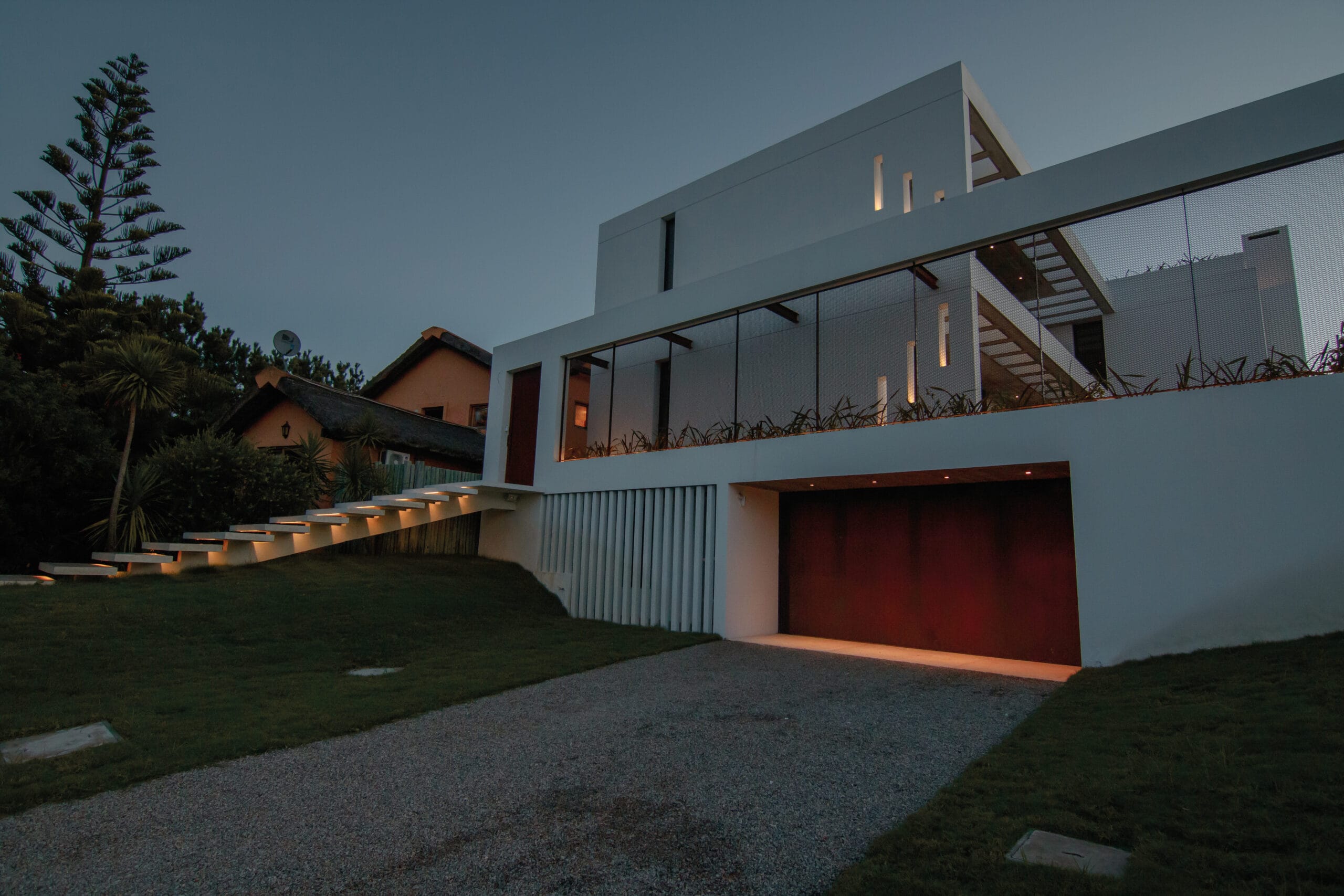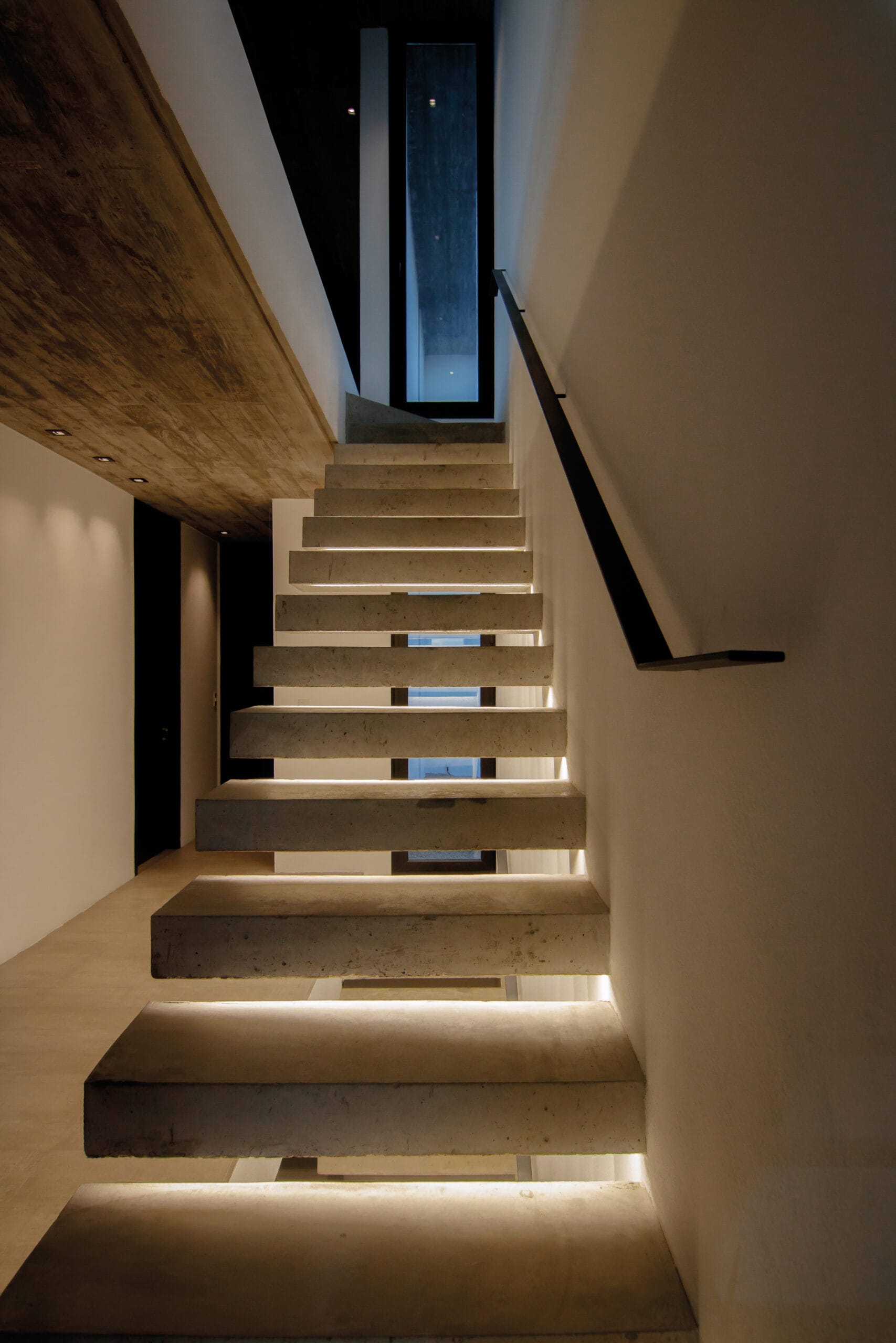 La iluminación, pensada en todos los ambientes suma mucho a este planteo de arquitectura, destacando detalles, como las escaleras voladas y los accesos.