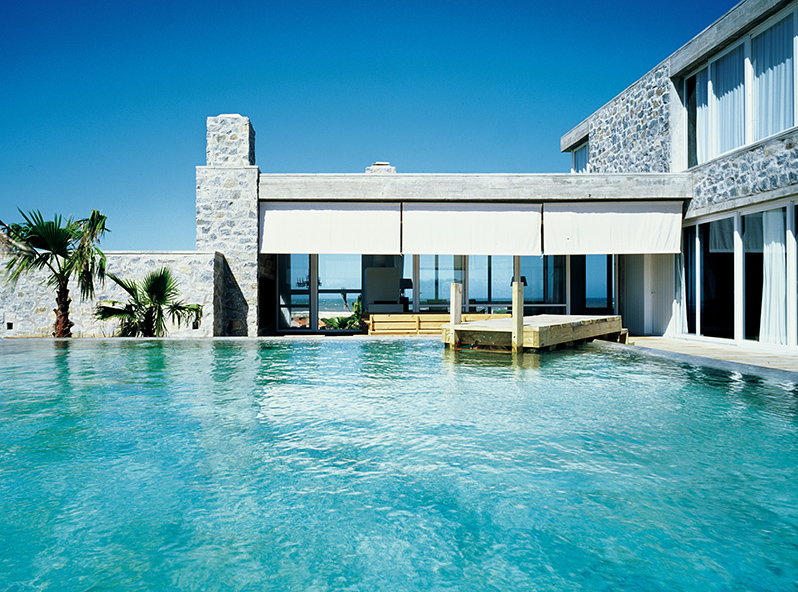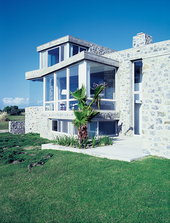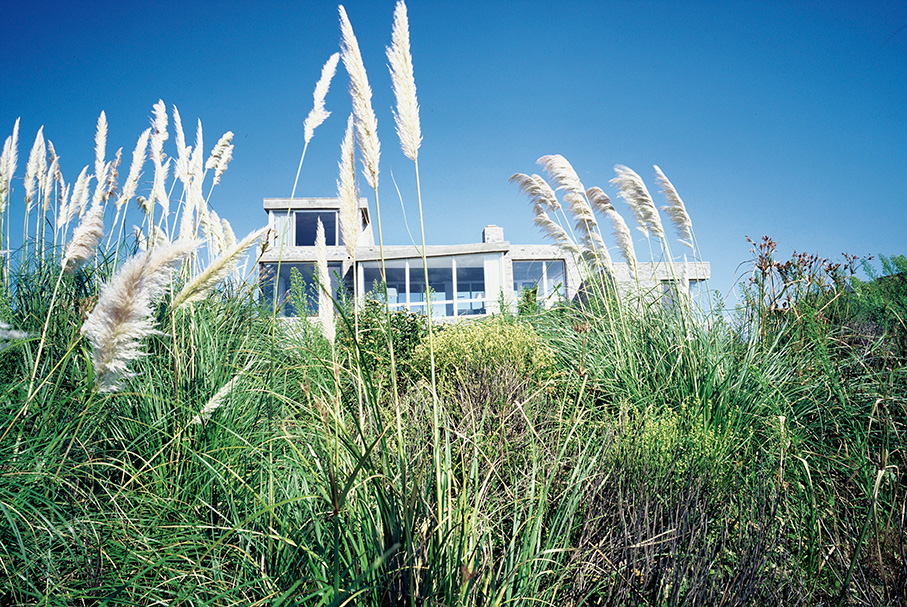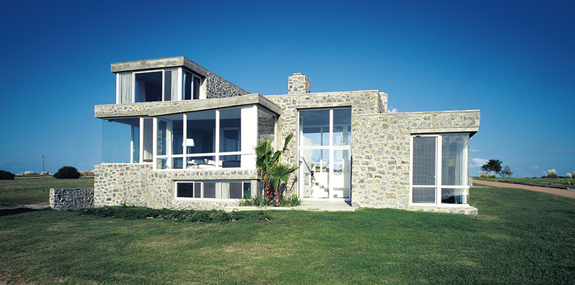 En José Ignacio, Maldonado, sobre un predio elevado en las cercanías de la playa, se asienta la siguiente vivienda que sobresale por su delicada presencia. Y es que el paisaje así lo exigía. Sin agredir al entorno, en un predio verde, despejado, la construcción cobra fuerza, delinea su contorno con notoria claridad. La imagen del conjunto queda definida por la combinación del hormigón y la piedra. Sin embargo, el resultado carece de esa cualidad pesada que estos materiales suelen arrastrar. No presenta rigidez, tampoco frialdad. La transparencia de los planos vidriados, la volumetría sugerente, recortada, ofician de contrapunto a una estructura sólida.