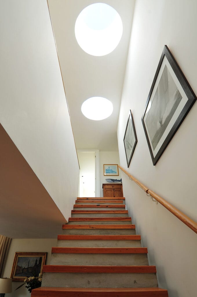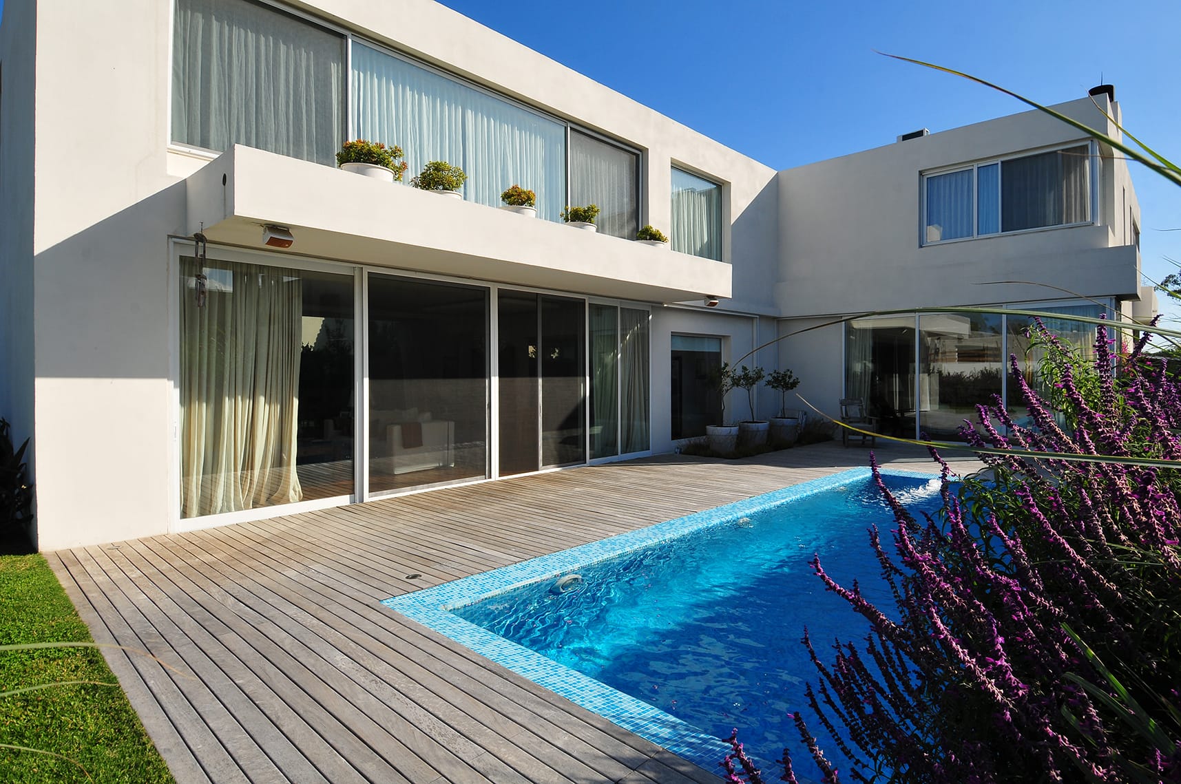 En planta baja el espacio fluye entre el interior y el exterior, prolongándose a través de amplias ventanas que desdibujan los límites de lo construido. La continuidad material de los pisos de madera del estar-comedor en un deck exterior, ayuda a leer el espacio como único, generando una relación con el patio sin esfuerzo aparente.