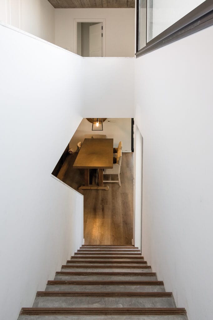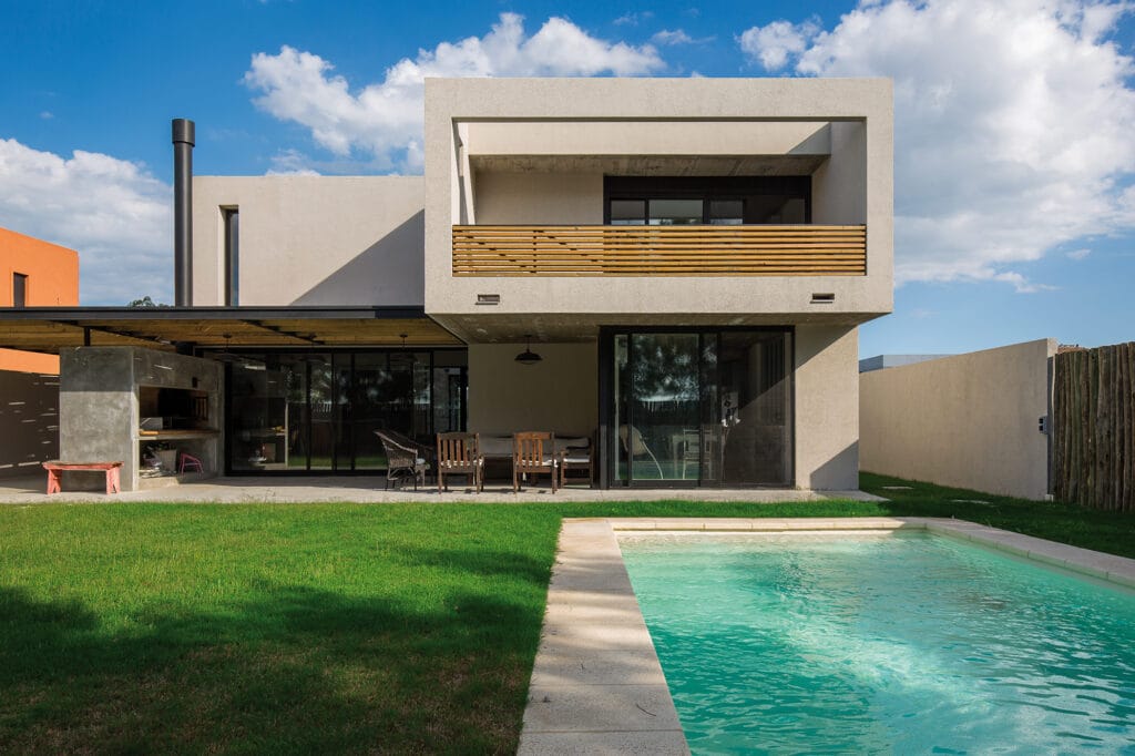 En la casa se distinguen terminaciones en materiales nobles como hormigón visto, maderas en estado natural, mármoles y muros en colores neutros. El mobiliario seleccionado por los proyectistas, se compone por piezas de líneas depuradas, unicolores, que hacen juego con las texturas de las terminaciones. Creando así una atmósfera de contemplación interior plena para sus habitantes.