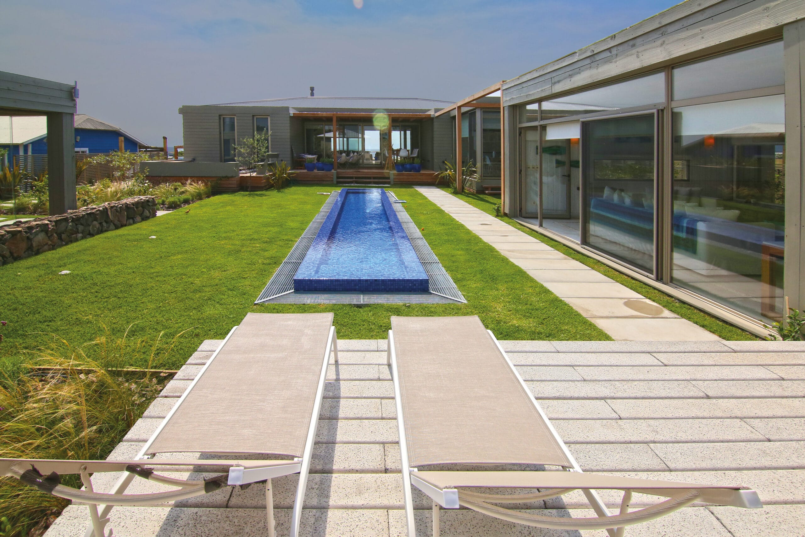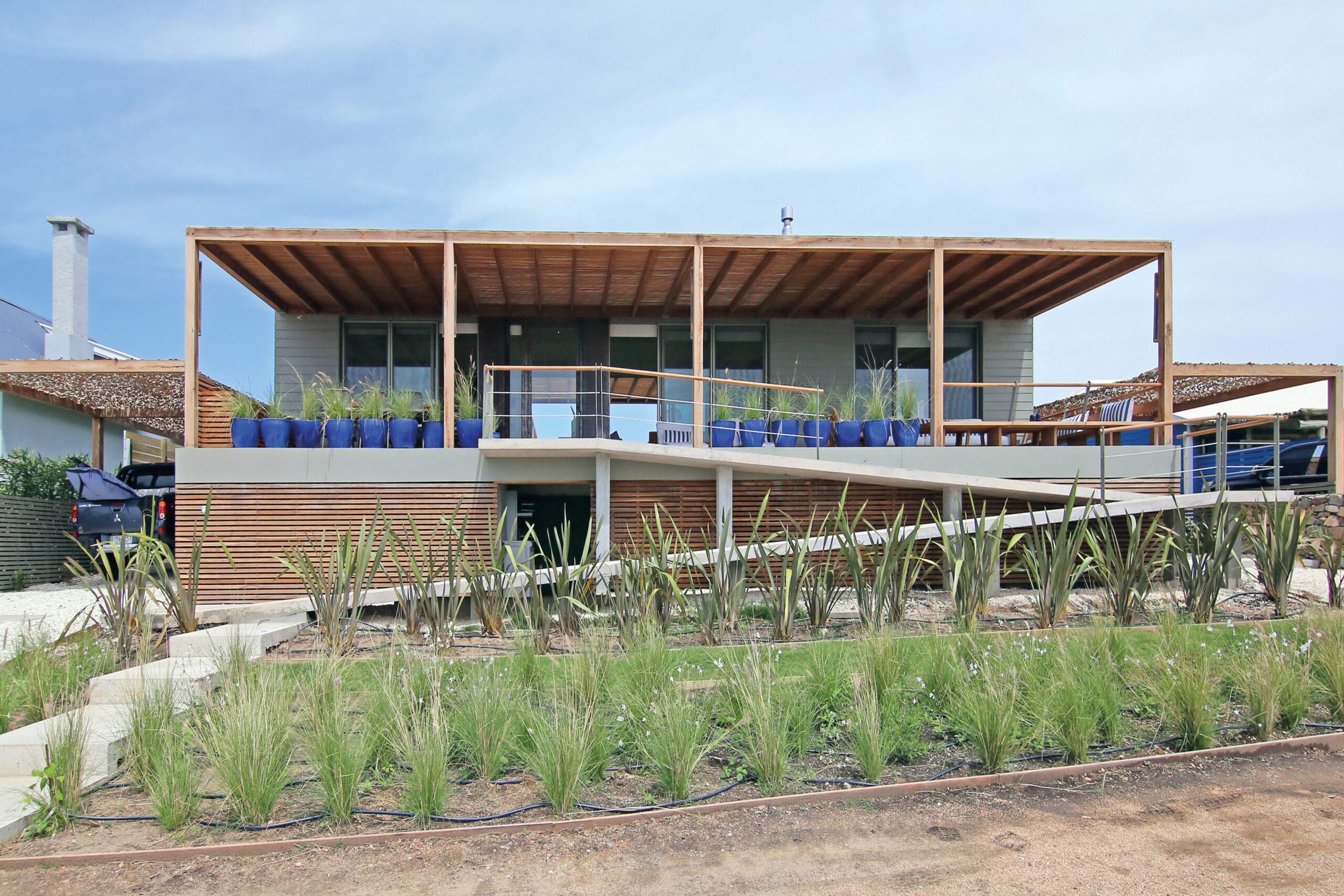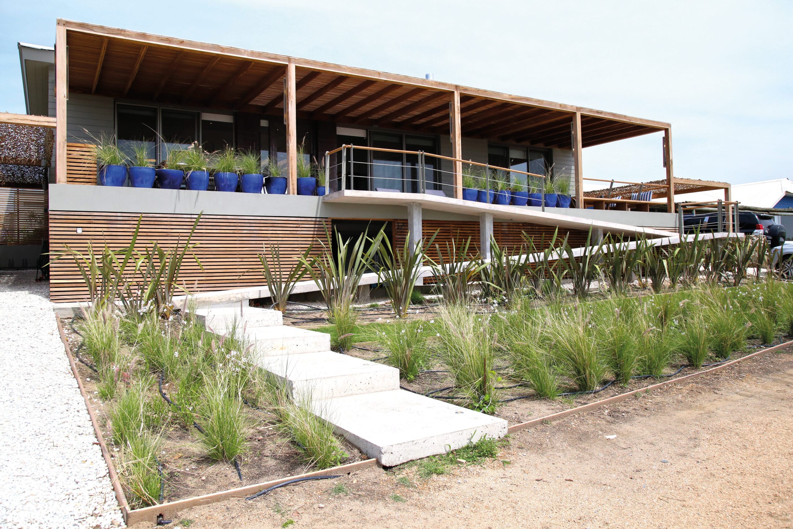 El diseño del jardín aporta un toque fundamental al edificio, rodeada de gramíneas y vegetación costera, el movimiento del mar y de las plantas es una constante que se disfruta de todos los espacios.