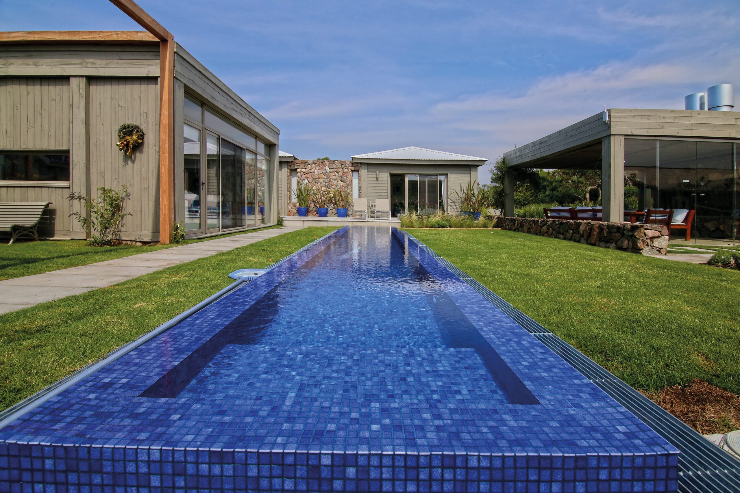 Conformada como una casa de playa, de materiales simples, techos altos y a varias aguas,  esta casa se destaca por su amplia fachada.