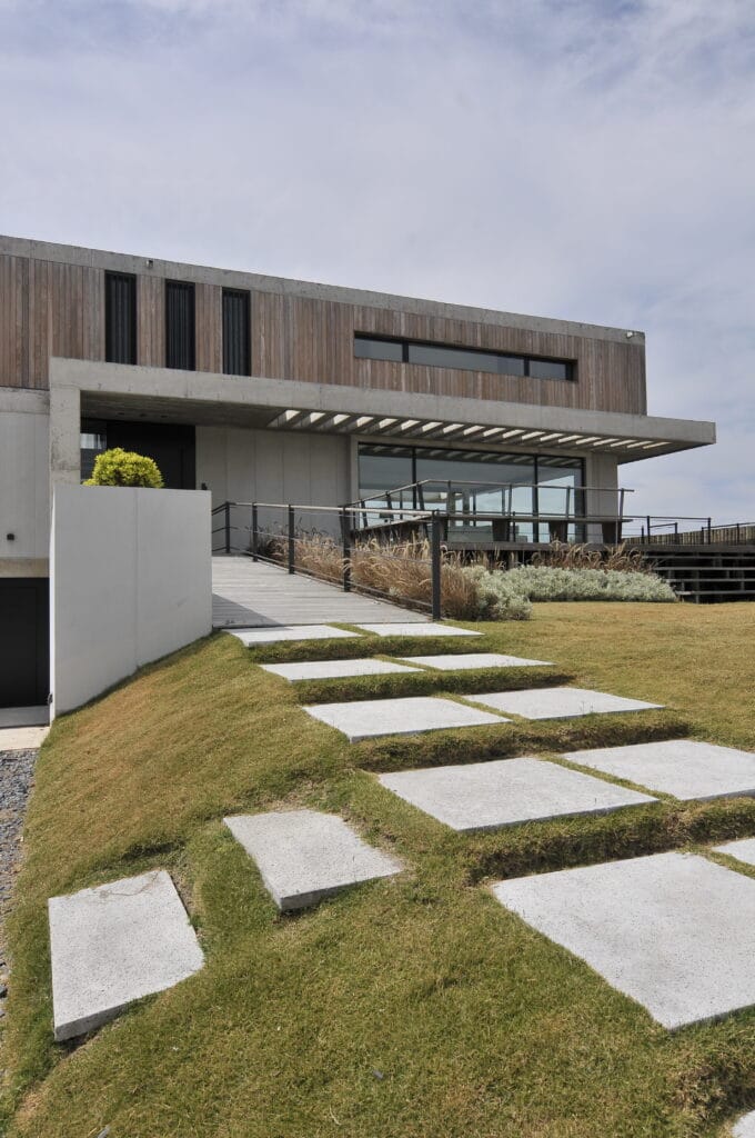Para potenciar ambas ventajas se generaron dos espacios de extensión como la galería con pérgola hacia el mar y un deck con jardín abierto al noroeste, vinculando ambos espacios lateralmente por la piscina que queda en una posición más privada vista desde el exterior.